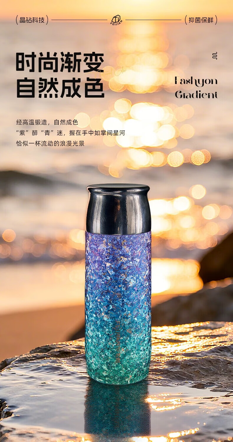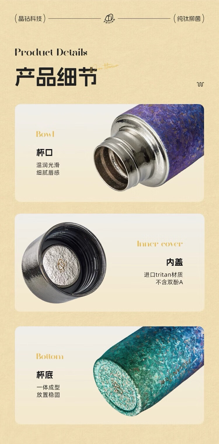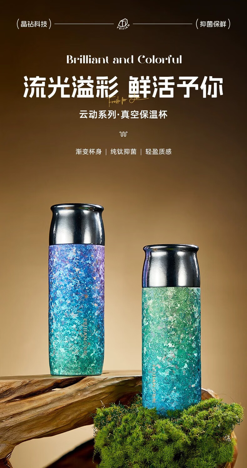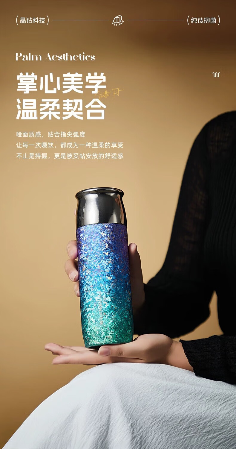 Feijian Pure Titanium Insulated Cup Gradient Series High-end Stewed Tea Cup Tea Water Separation Tea Cup Birthday Gift Gift Symphony Purple 390ml Free Leather Cup Cover