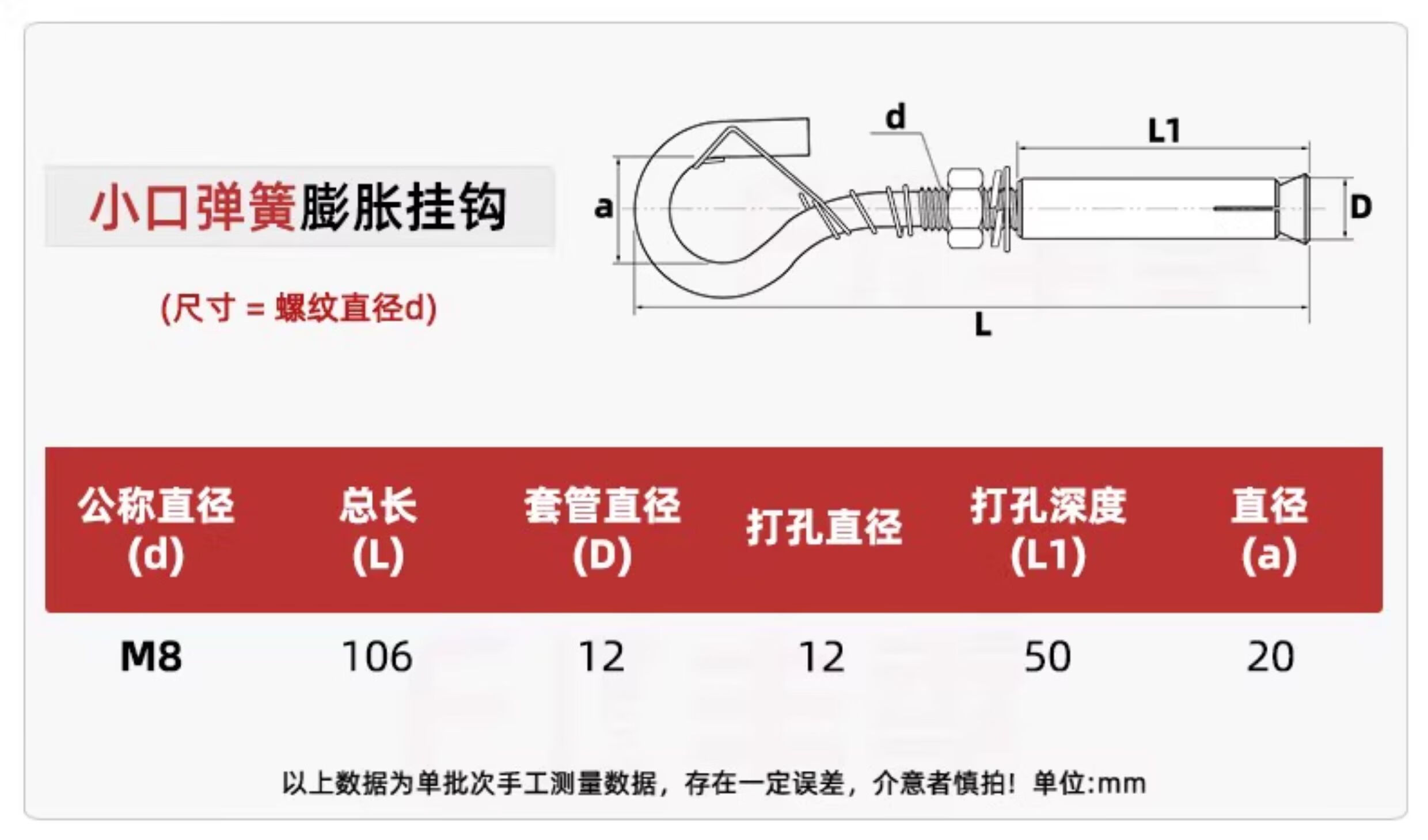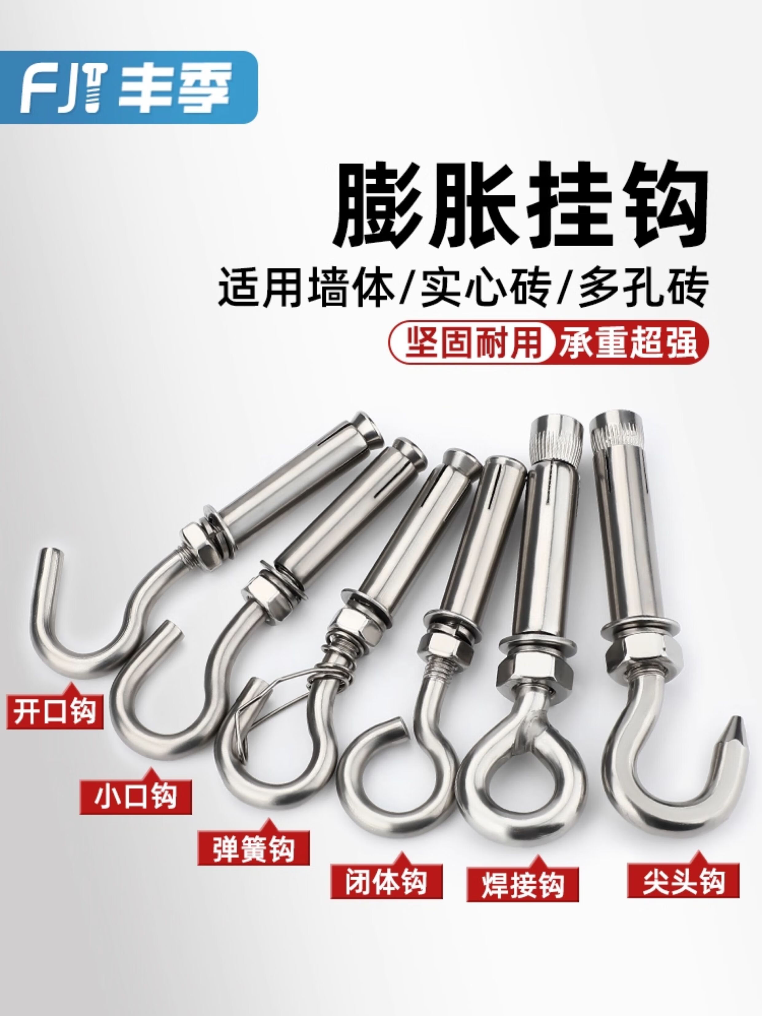 Fengji 304/201 stainless steel expansion screw hook universal hook lifting ring pull expansion bolt M6M8M10M12 M8 small mouth spring hook 304 1