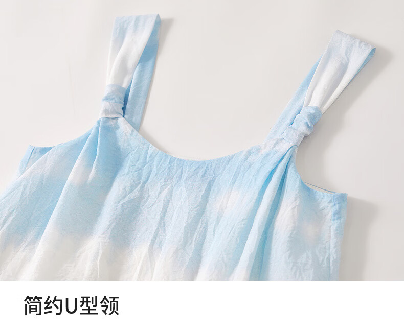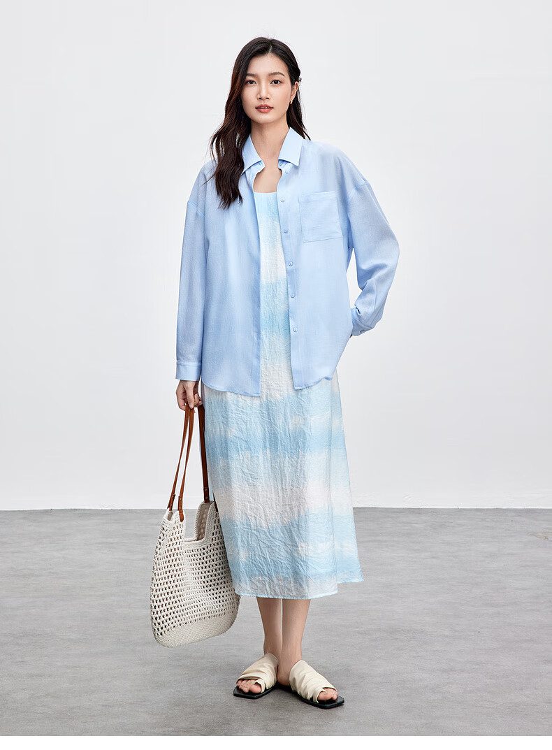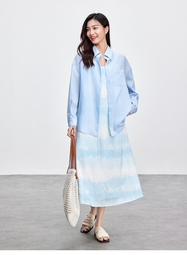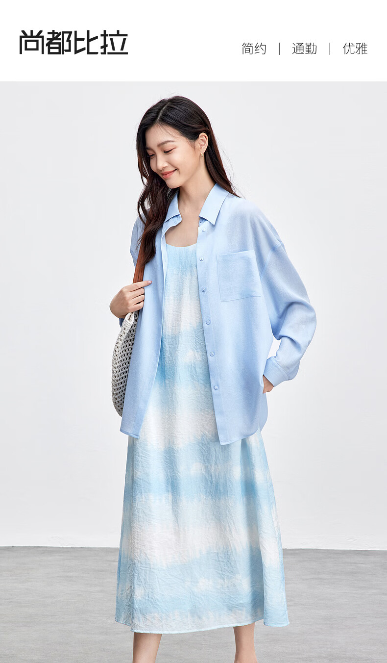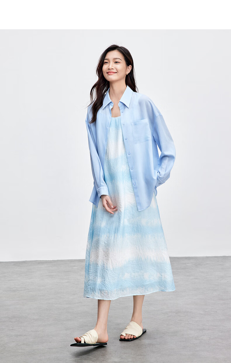 Chandubila holiday two-piece set, elegant and romantic lapel loose shirt & gradient tie-dye printed suspender dress, glacier blue M 100-110Jin Jin equals 0.5kg recommended choice