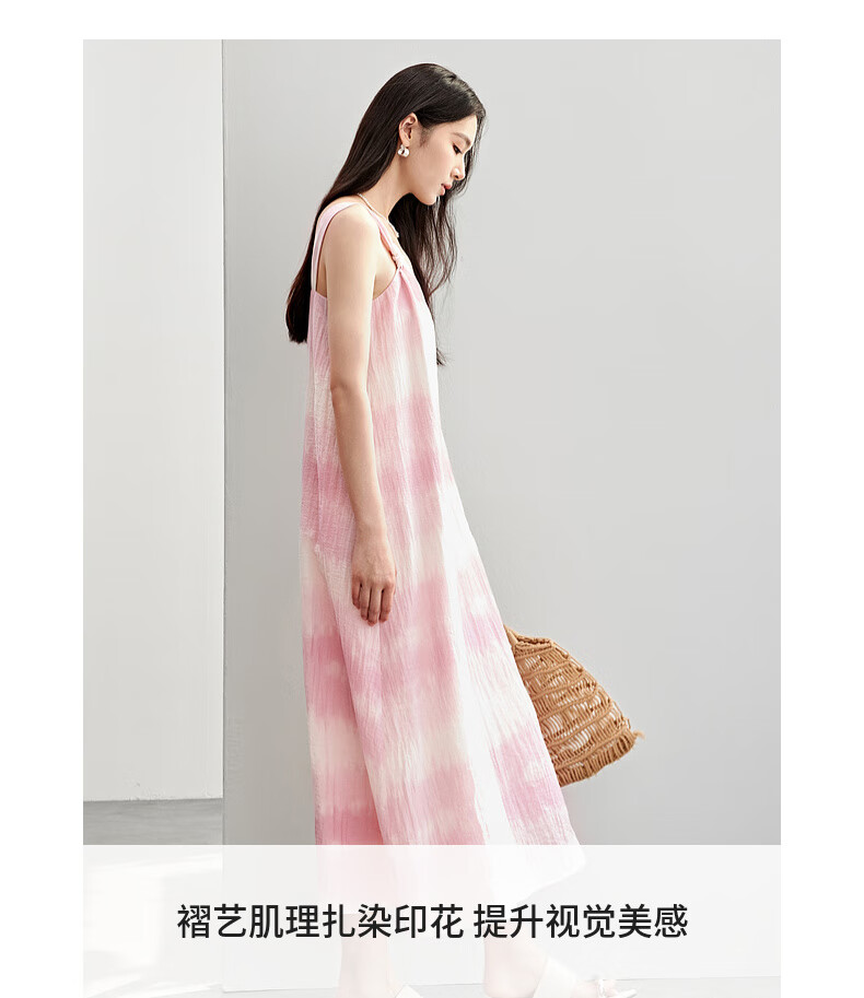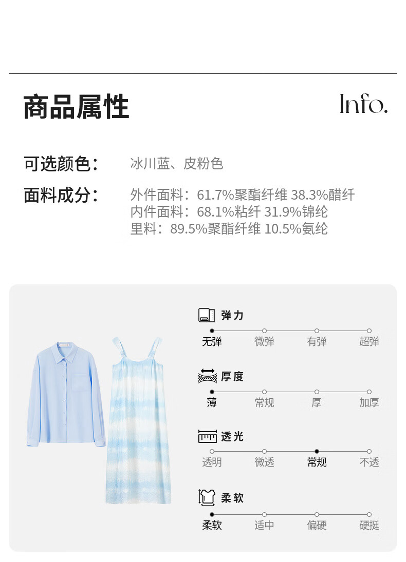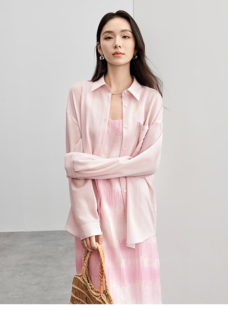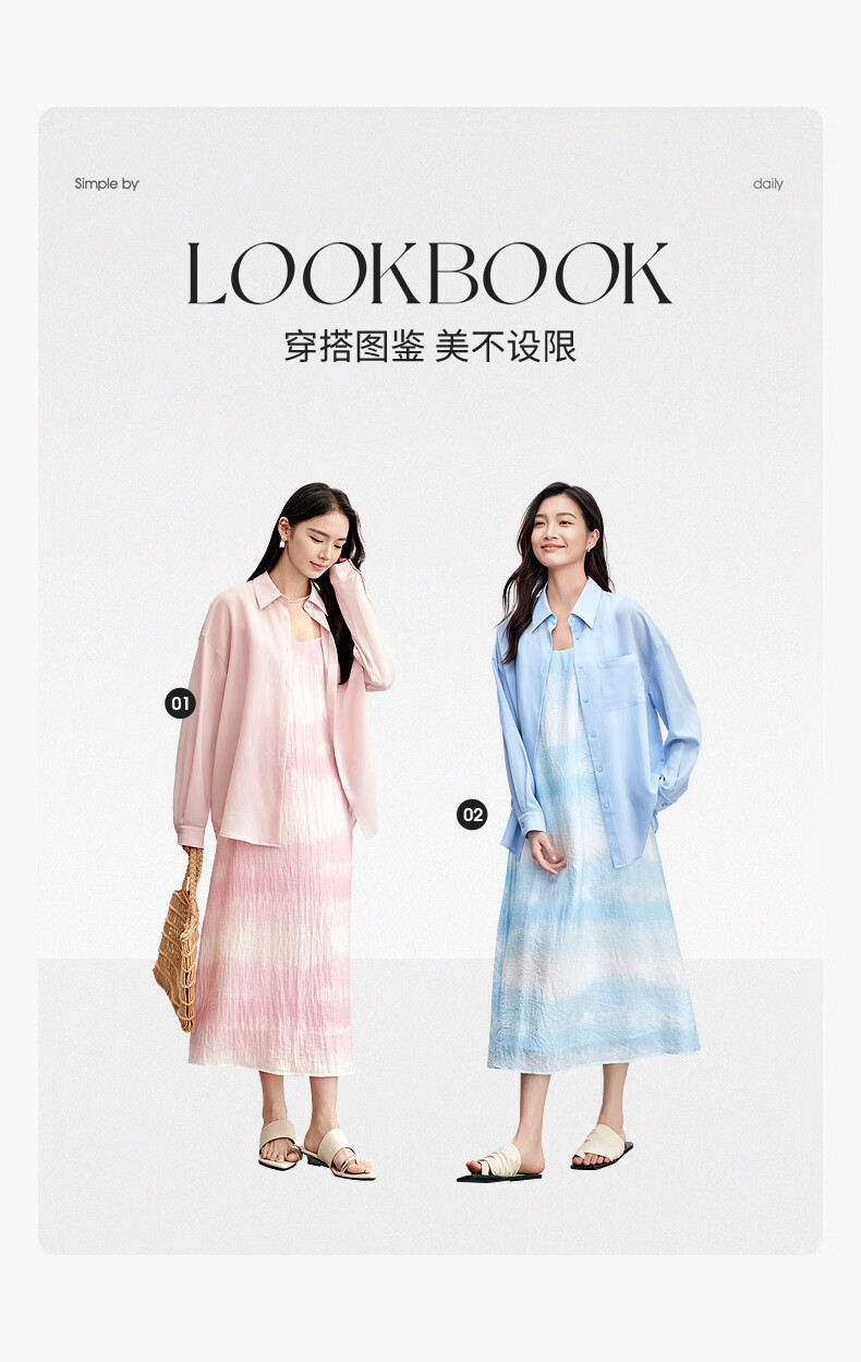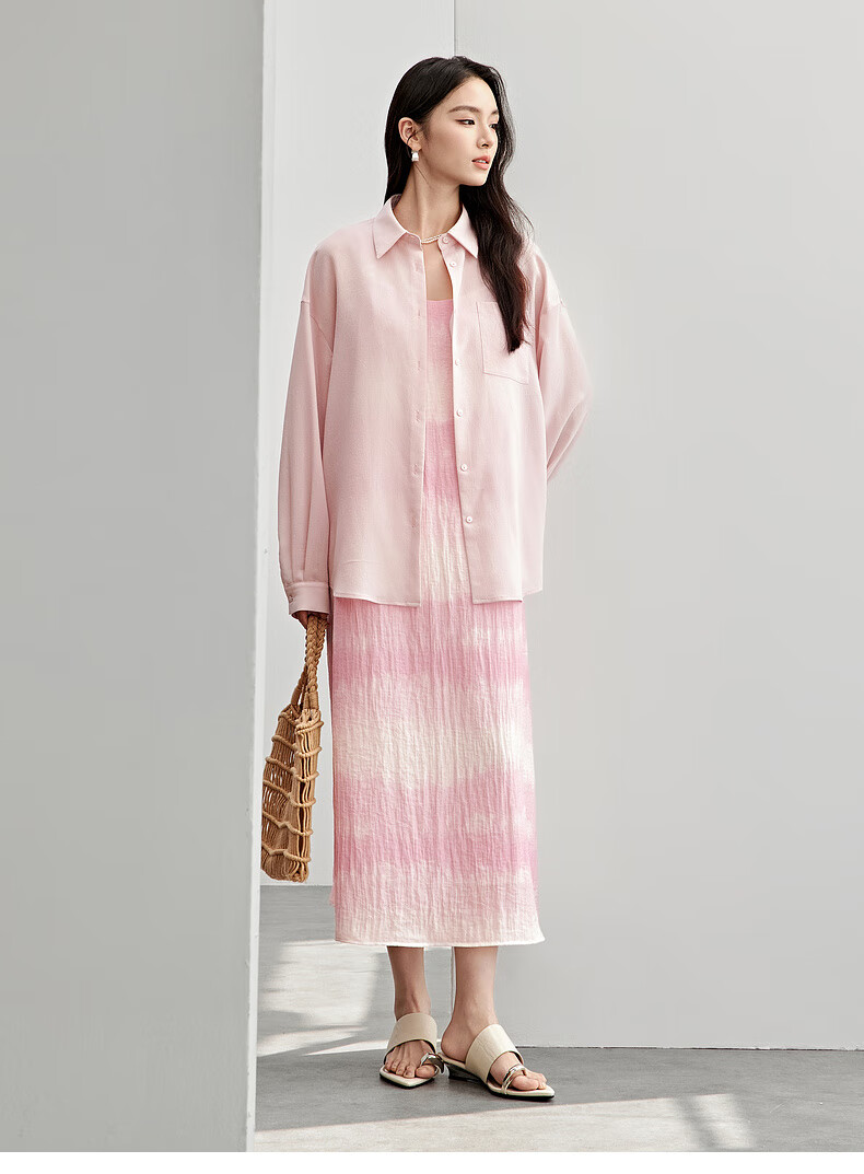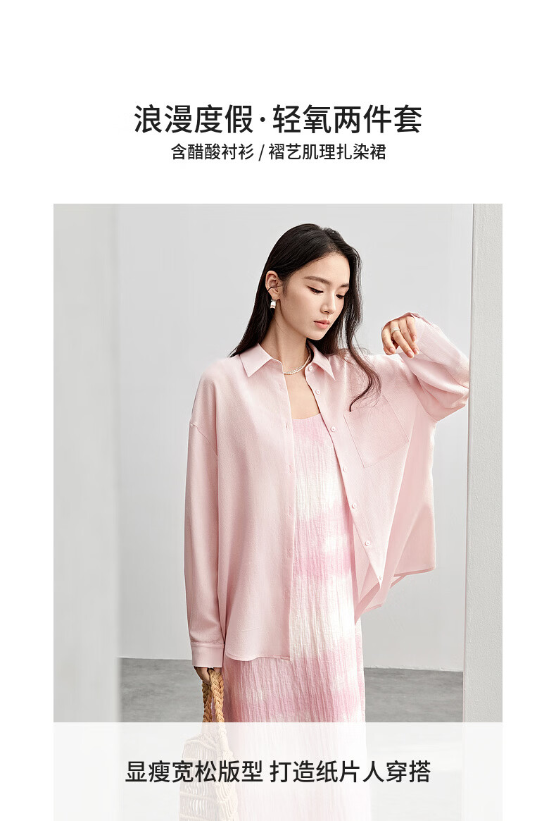 Chandubila holiday two-piece set, elegant and romantic lapel loose shirt & gradient tie-dye printed suspender dress, glacier blue M 100-110Jin Jin equals 0.5kg recommended choice