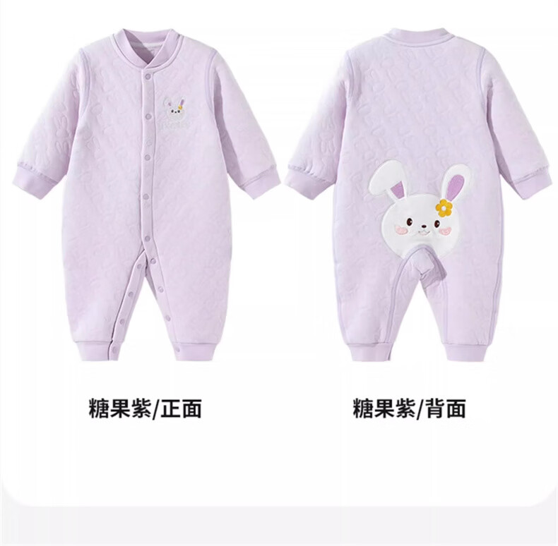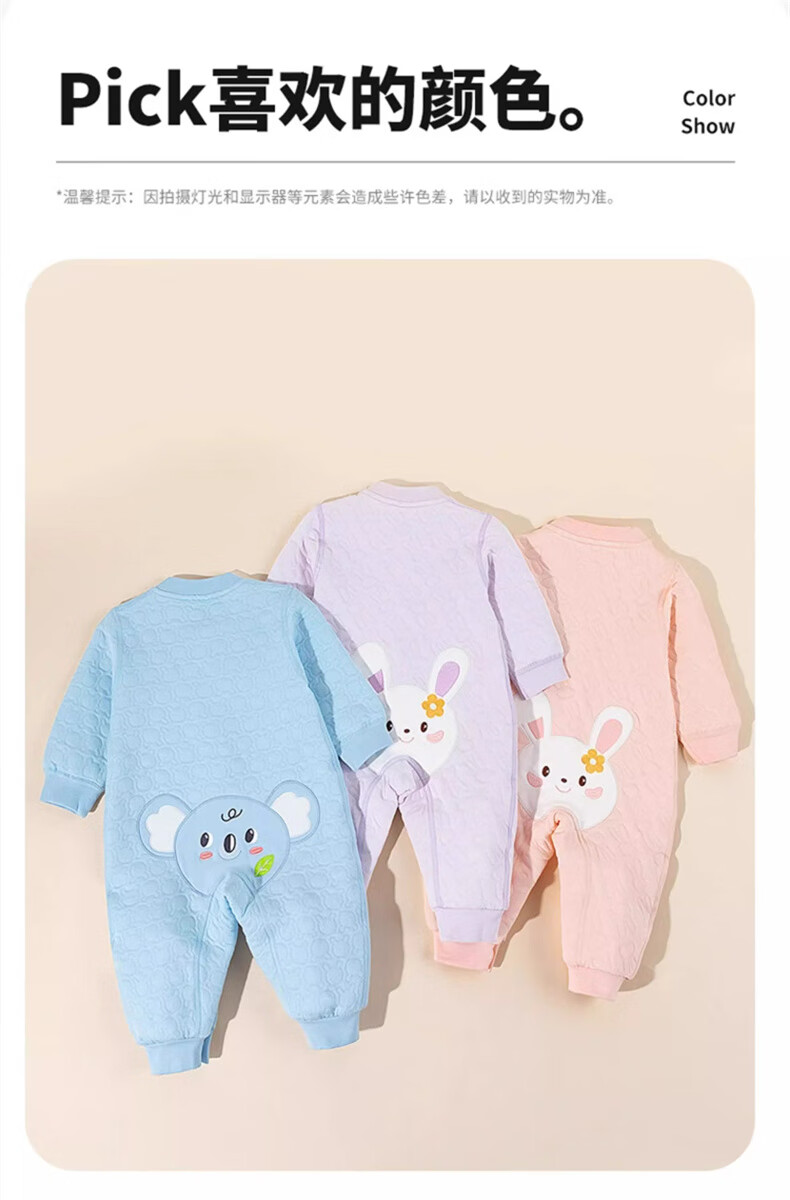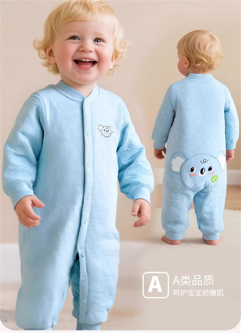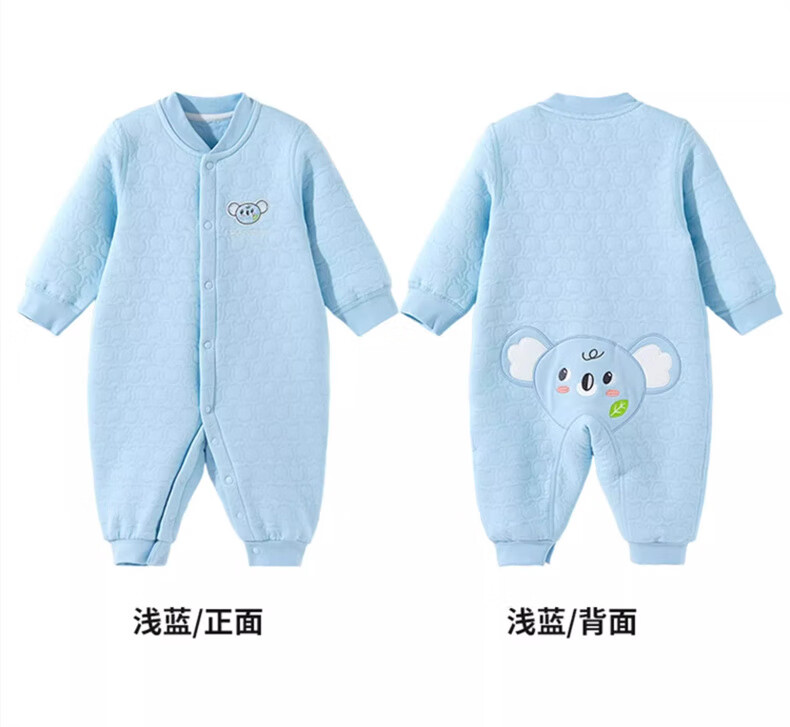 Beibeiyi children's clothing children's quilted front-opening jumpsuit new baby warm pajamas romper 2025 new winter clothing light blue 59cm (1-3 months)