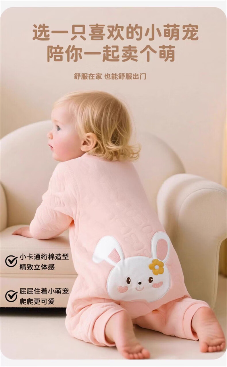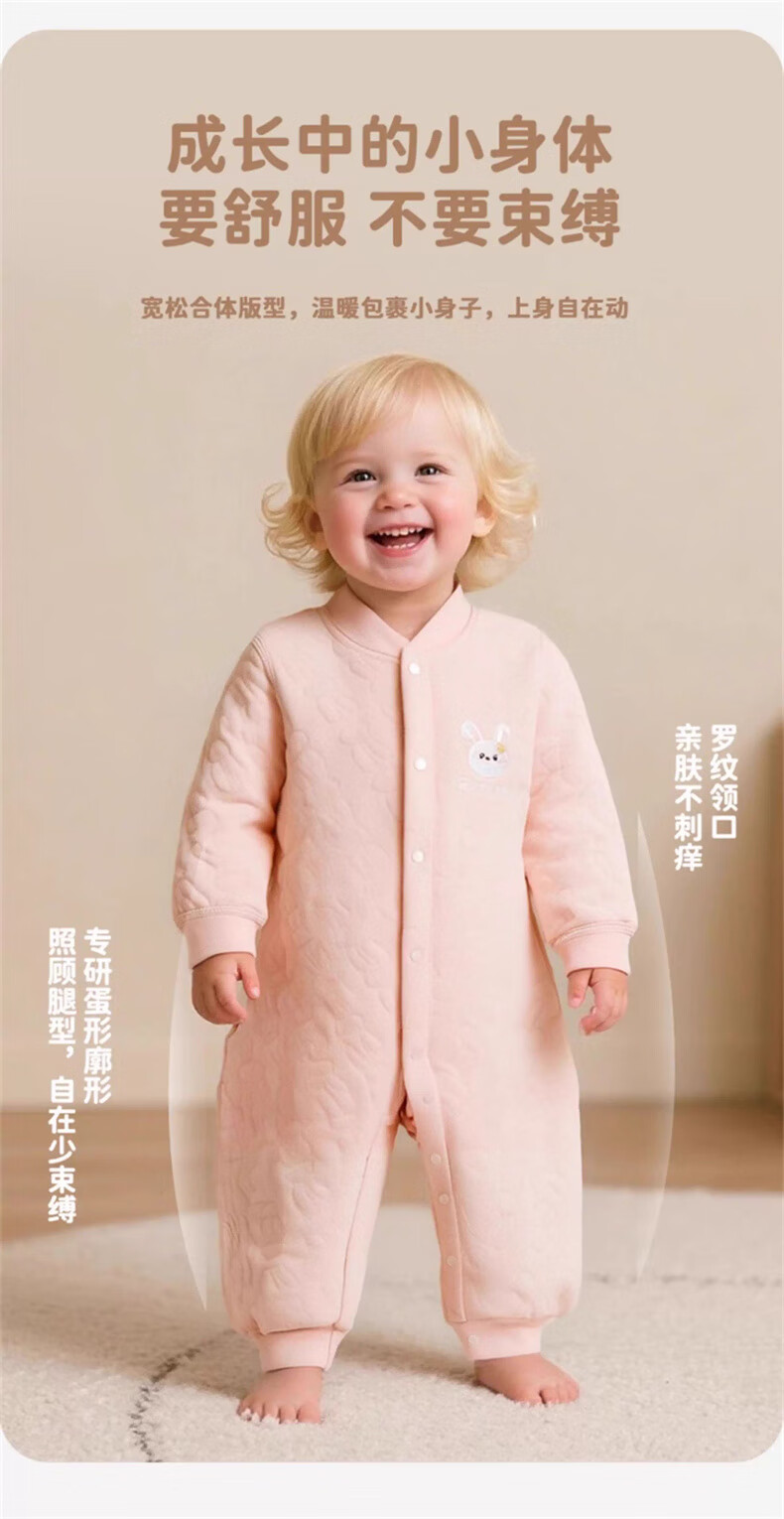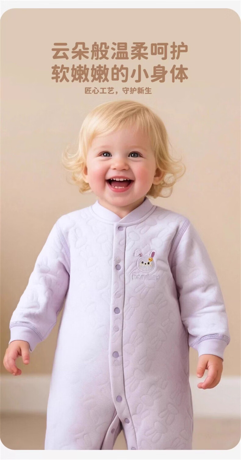 Beibeiyi children's clothing children's quilted front-opening jumpsuit new baby warm pajamas romper 2025 new winter clothing light blue 59cm (1-3 months)