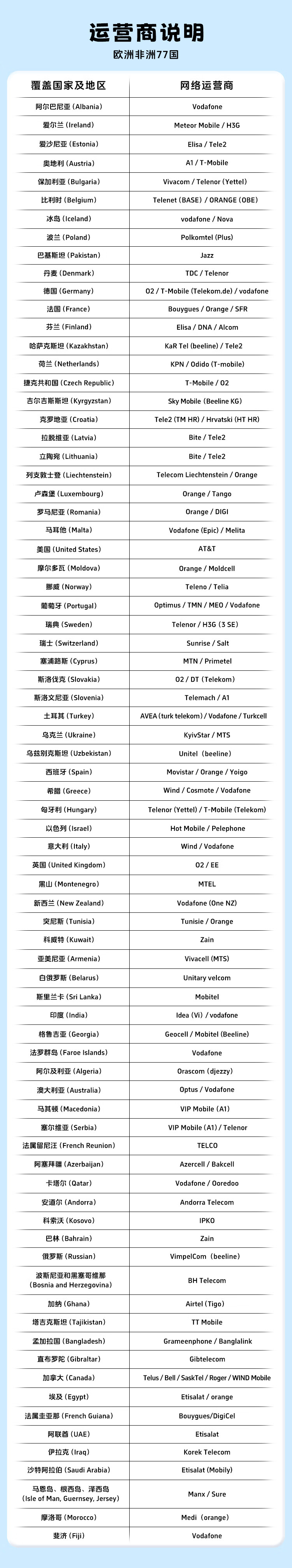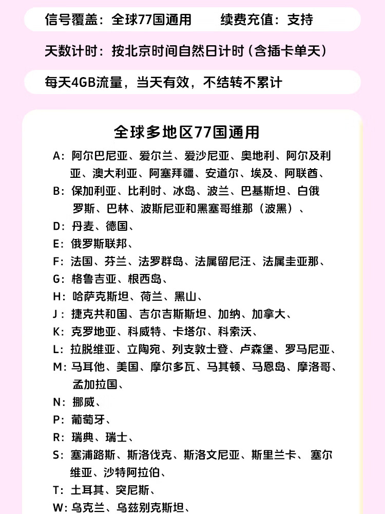 Next day delivery, communication traffic card, phone card, Internet card, travel recharge mobile card for 77 countries in Europe and Africa. Unlimited high speed per day. Available for 29 days - you can contact customer service for recharge.