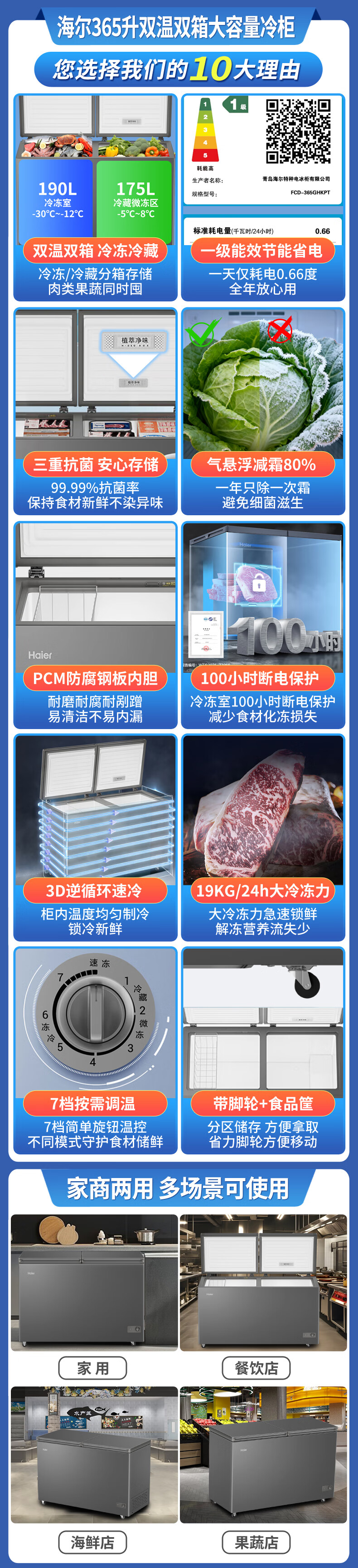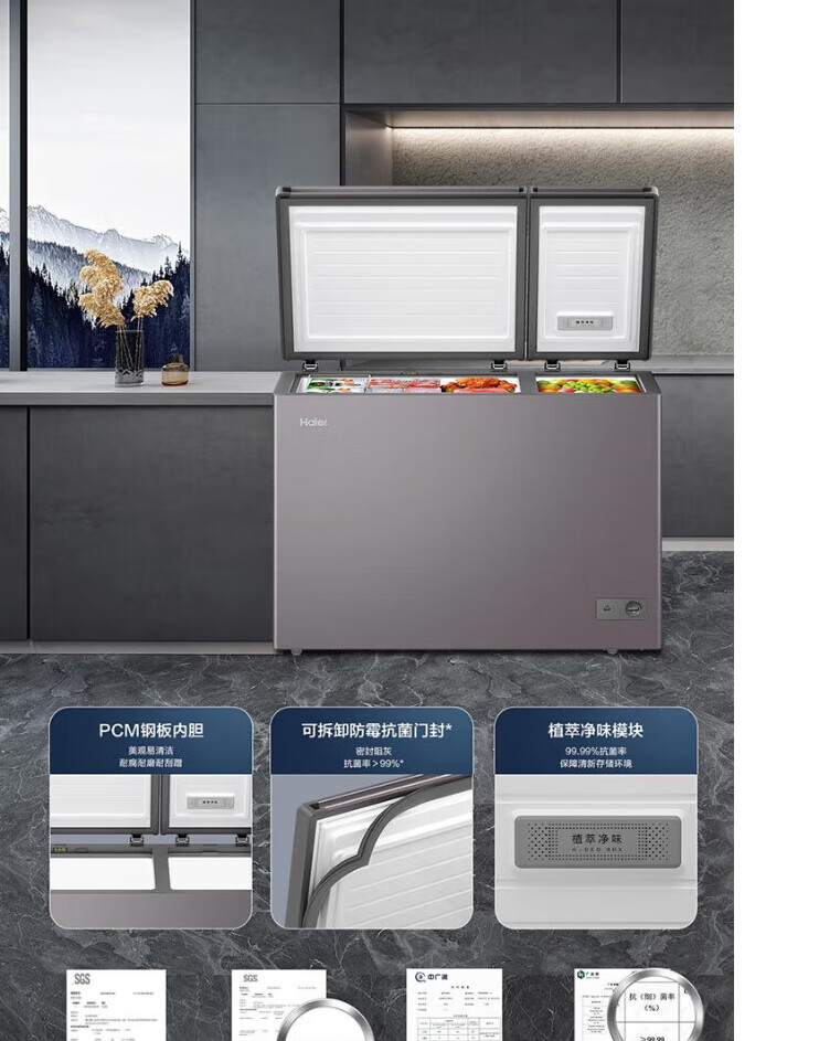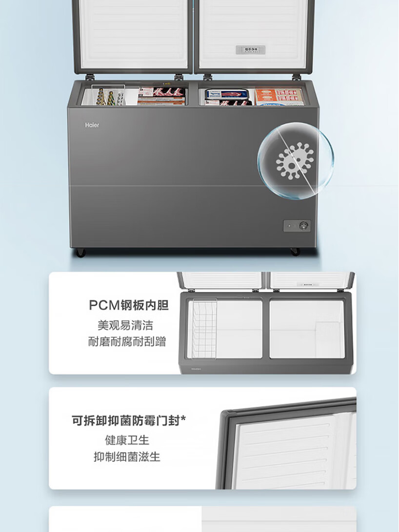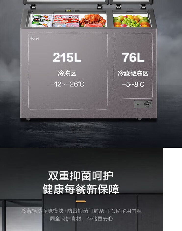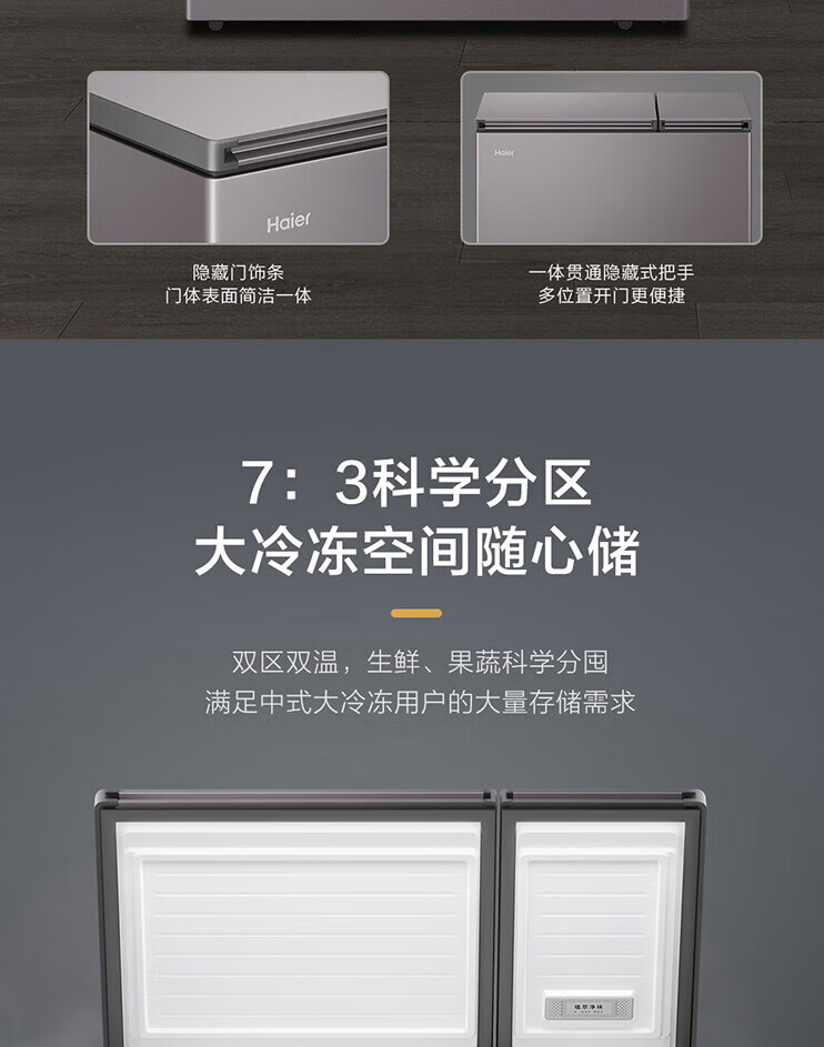 Haier freezer household dual-temperature refrigeration and freezing dual-purpose 200/300 liters and above commercial large-capacity double-door fresh-keeping freezer trade-in double-door dual-temperature plant extract purification 216L