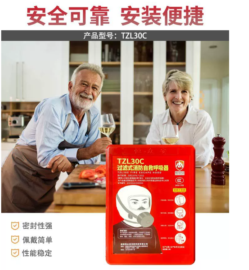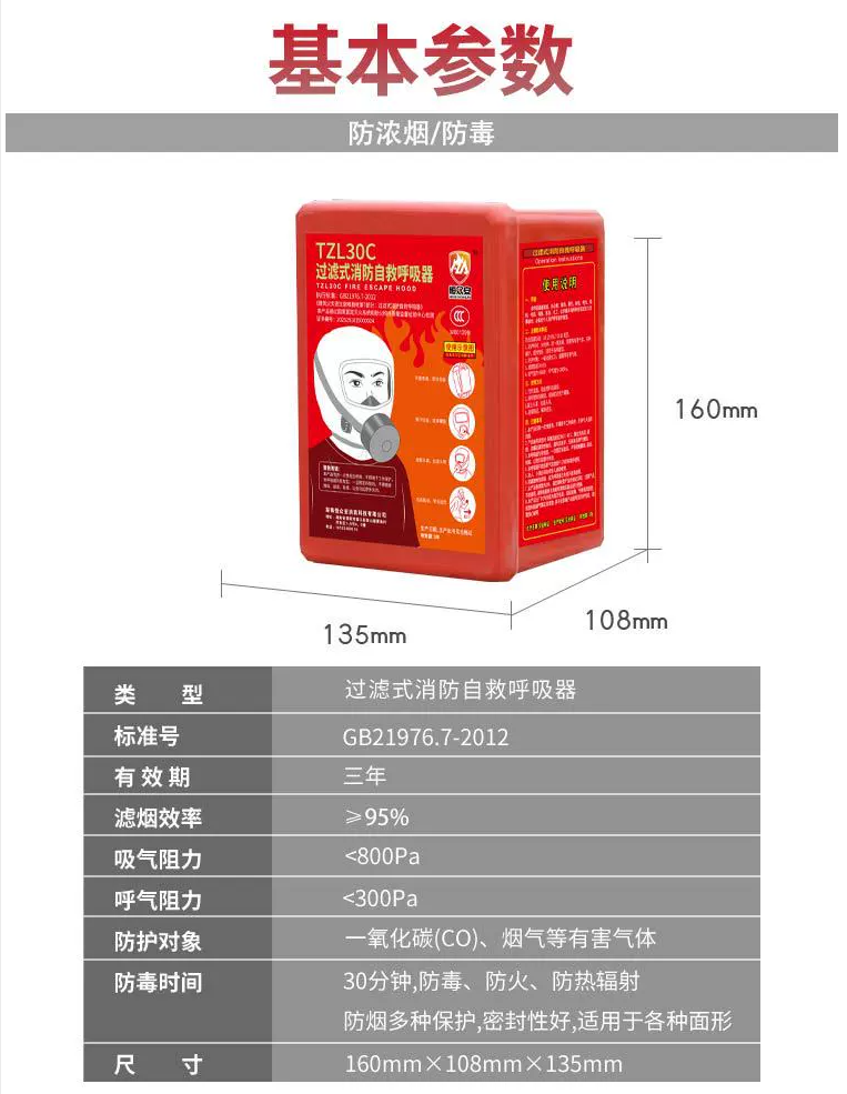 Tzl30C filter self-rescue respirator hotel essential fire escape fire sealing fire and smoke gas mask red