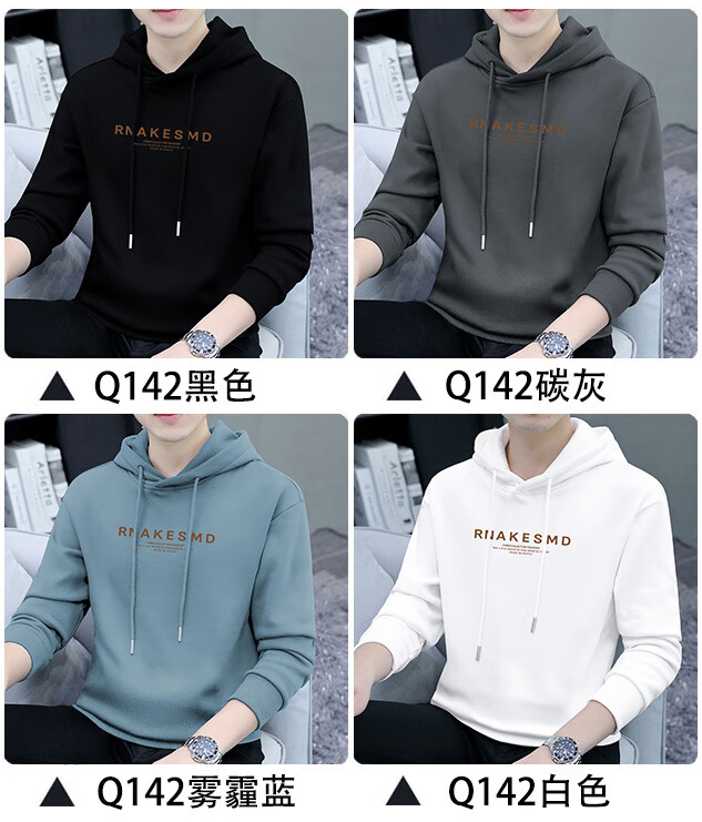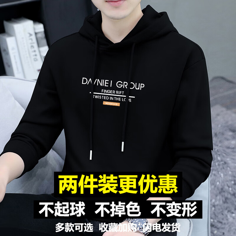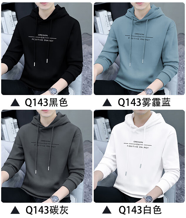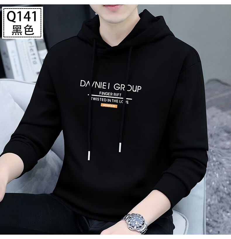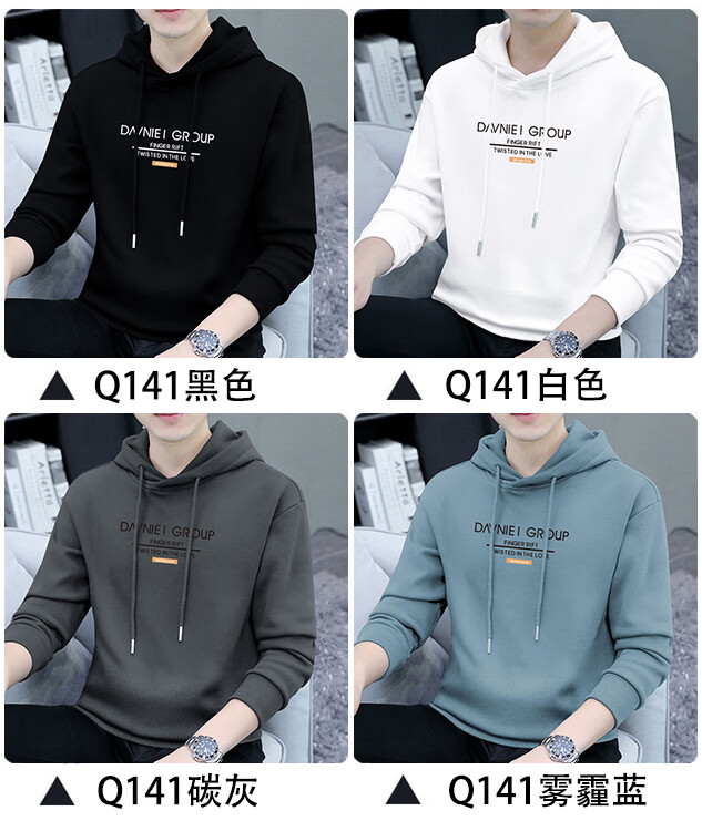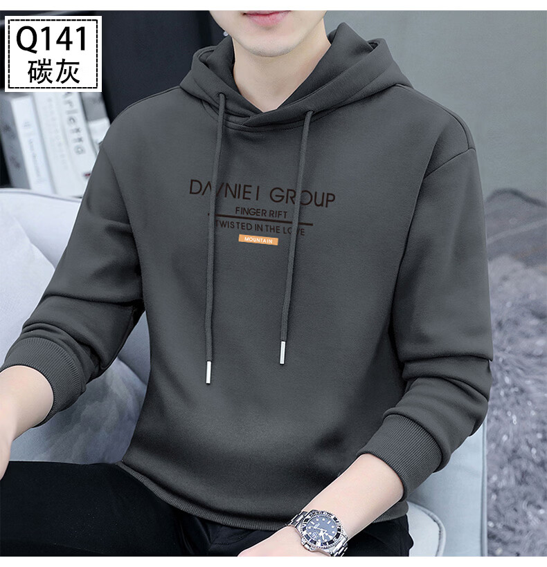 Hengyuanxiang sweatshirt men's autumn and winter new trendy casual long-sleeved tops men's velvet thickened warm loose men's tops Q141 Carbon Gray - Velvet M Recommendation 90-115Jin Jin equals 0.5 kg