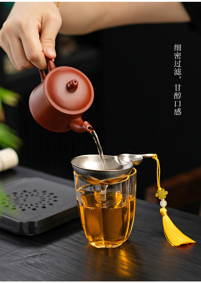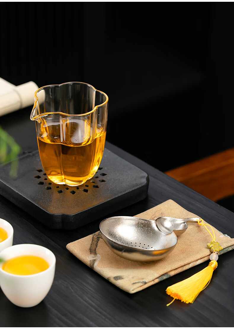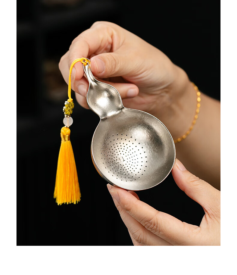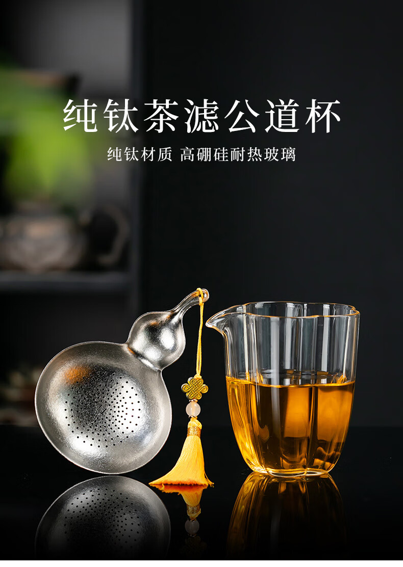 Jieyi titanium tea filter tea leak filter household tea filter outdoor portable tea partition creative gourd tea filter filter titanium gourd pendant + fair cup glass plum blossom tall style