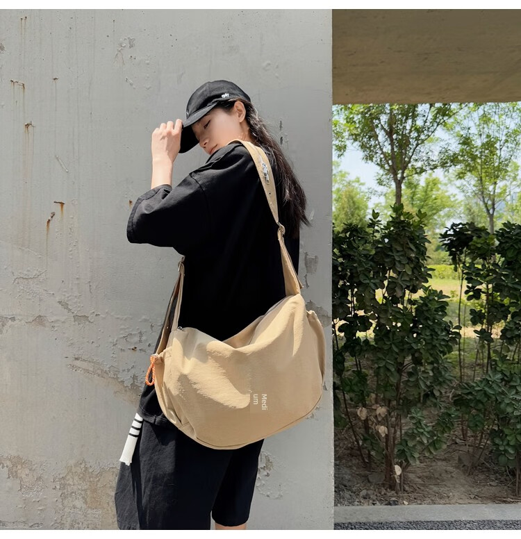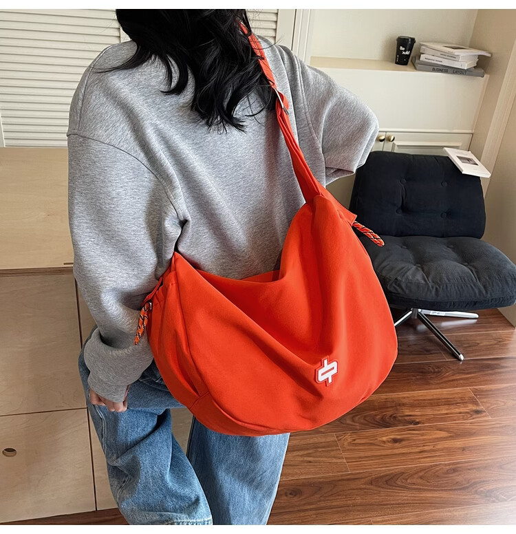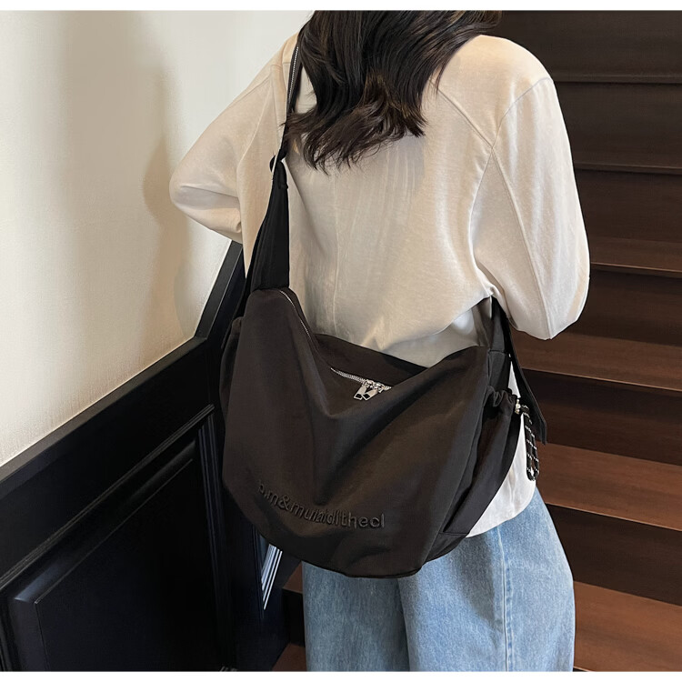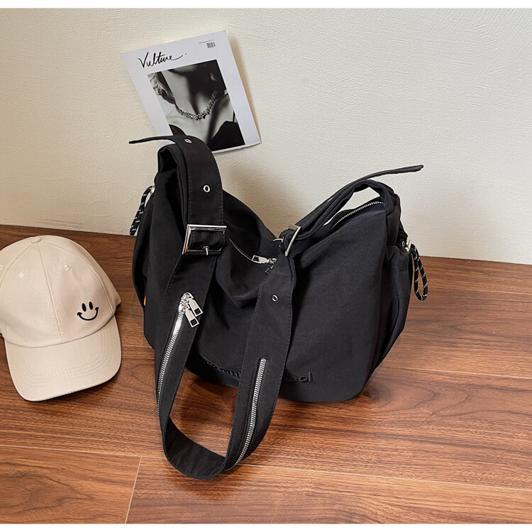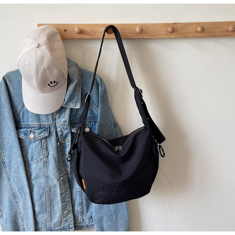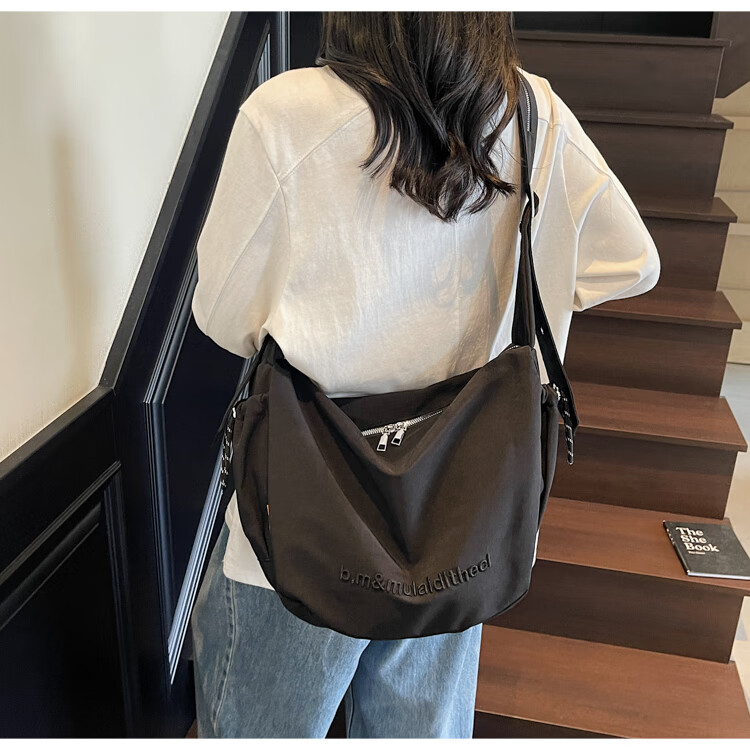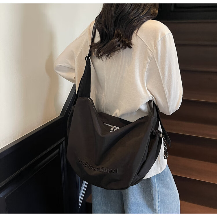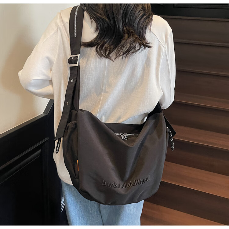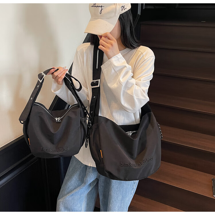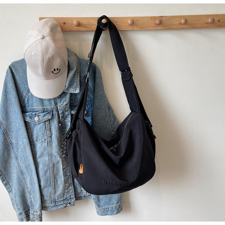 OTHER/Other Korean large-capacity women's canvas bag 2025 new work clothes messenger bag sports travel bicycle dumpling bag black small size