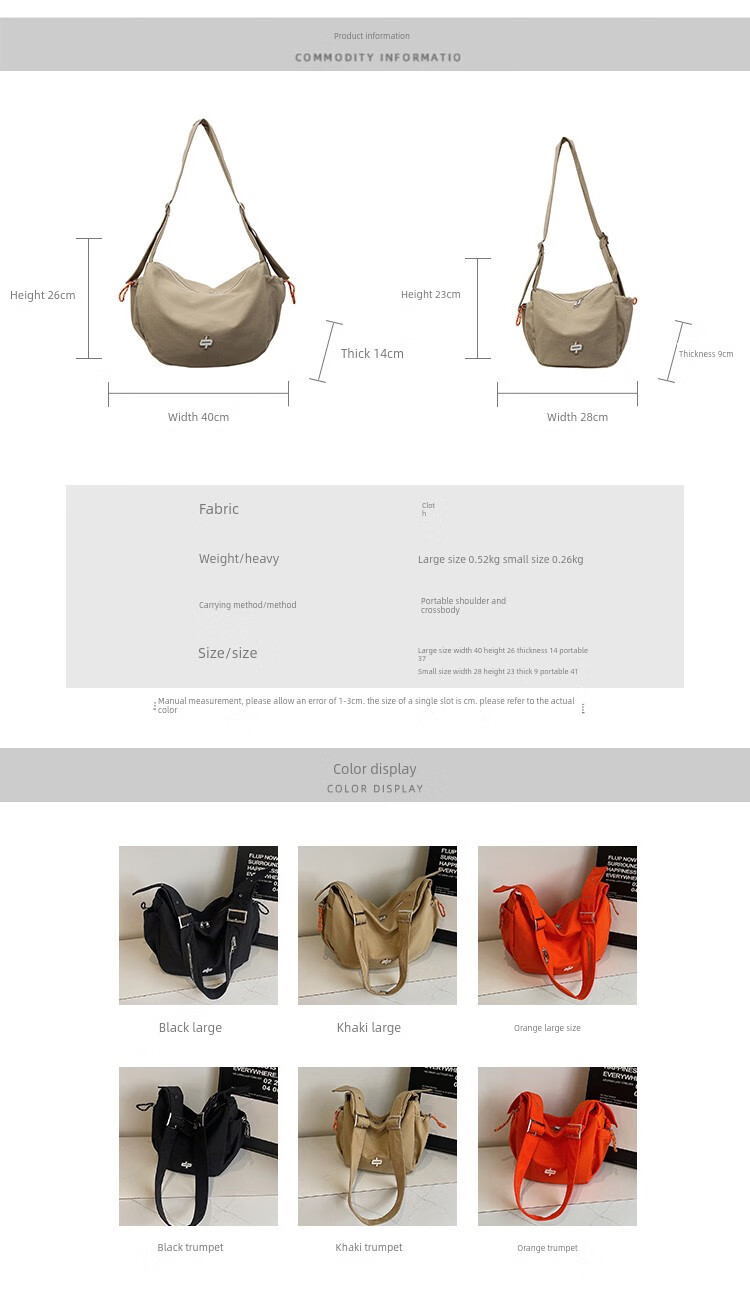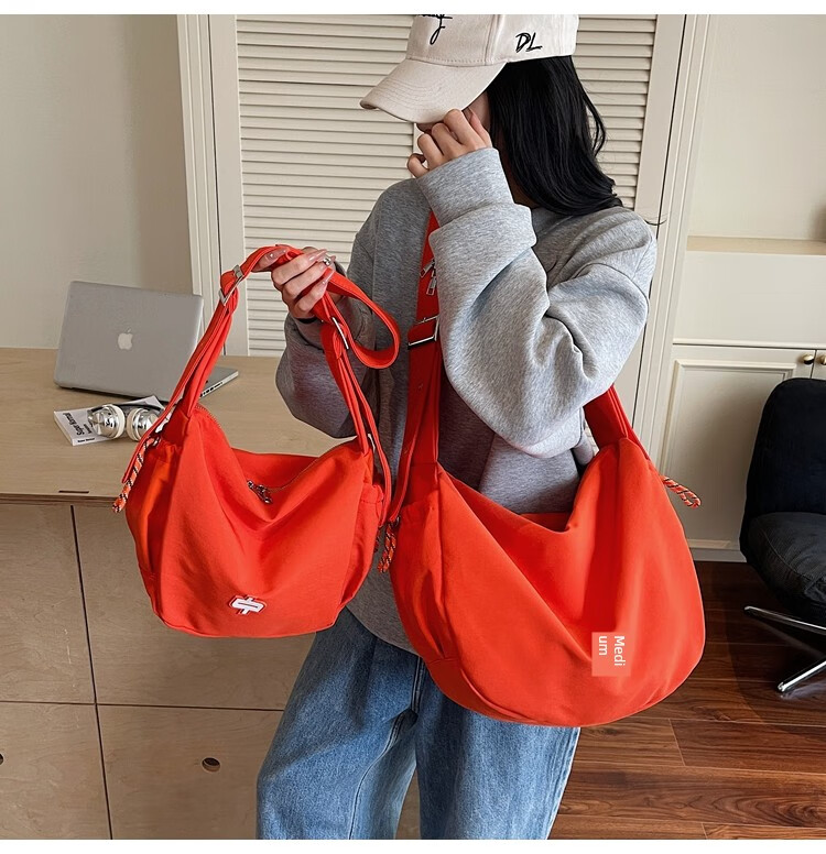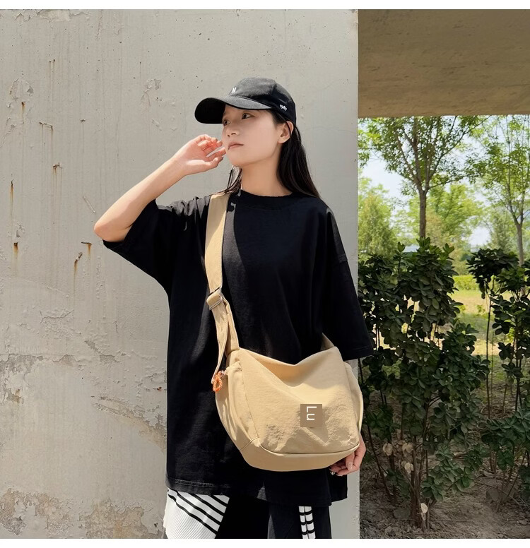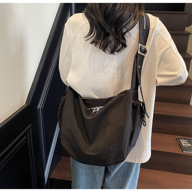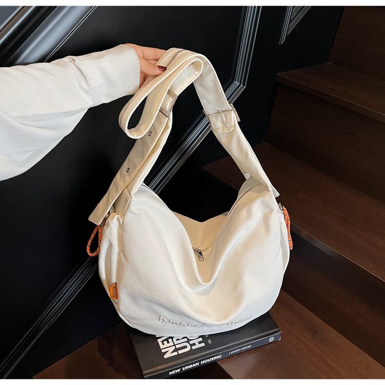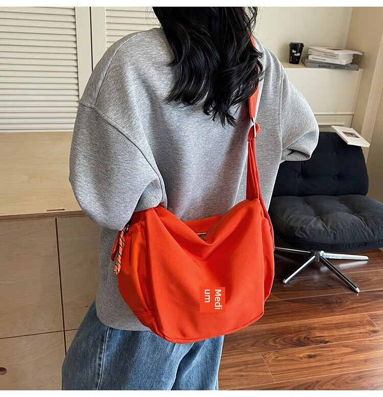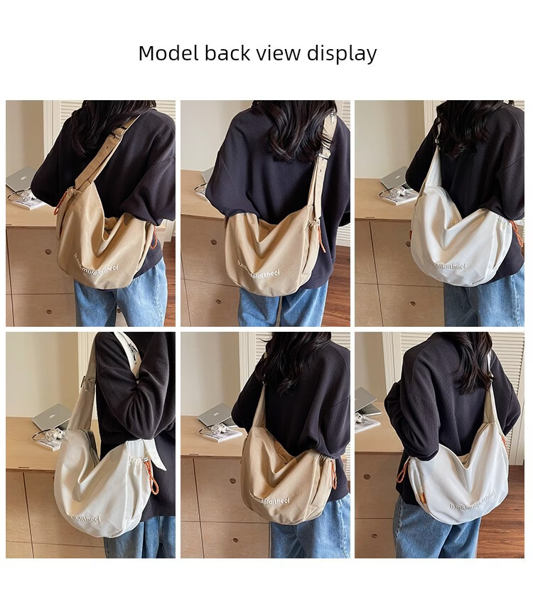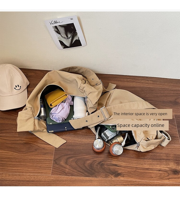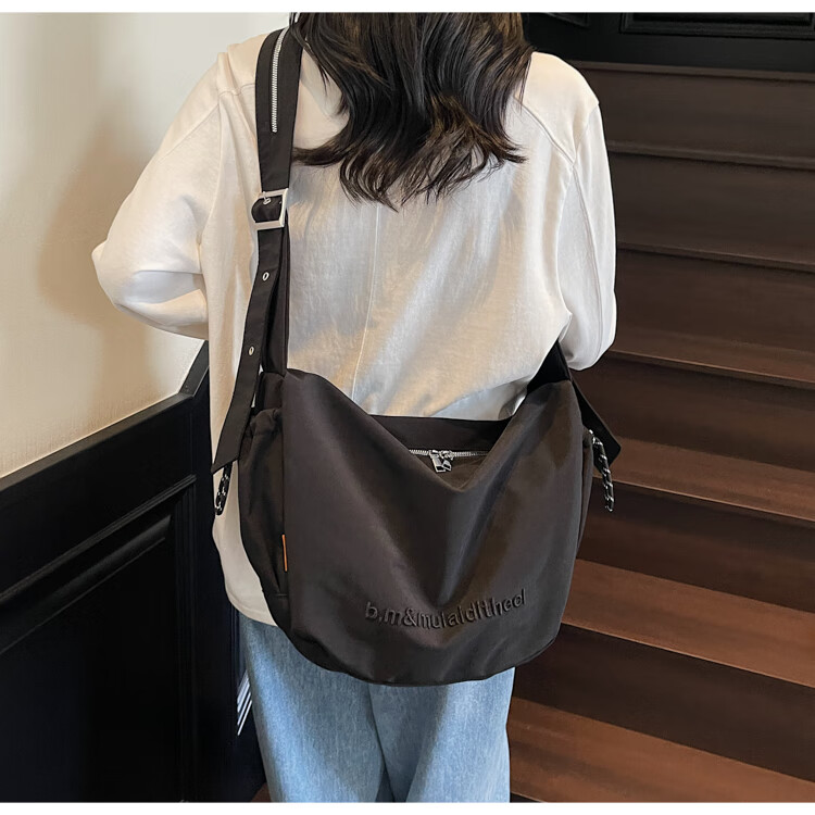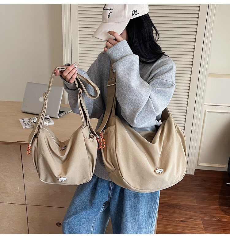 OTHER/Other Korean large-capacity women's canvas bag 2025 new work clothes messenger bag sports travel bicycle dumpling bag black small size