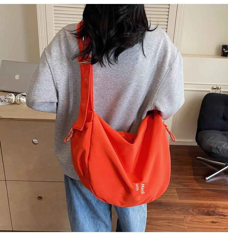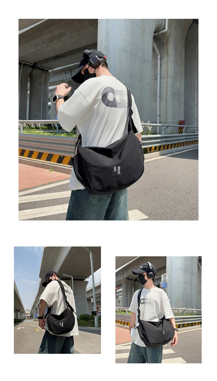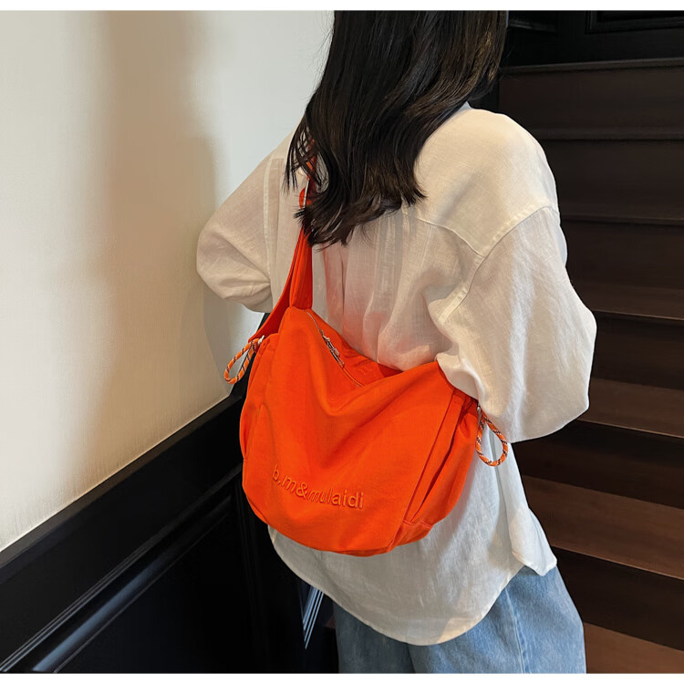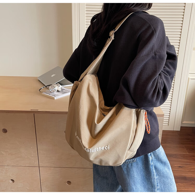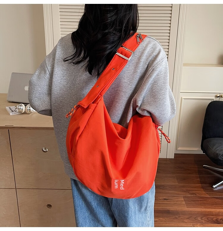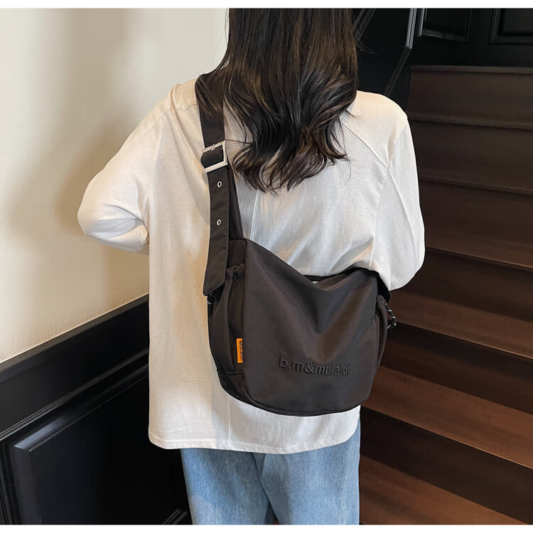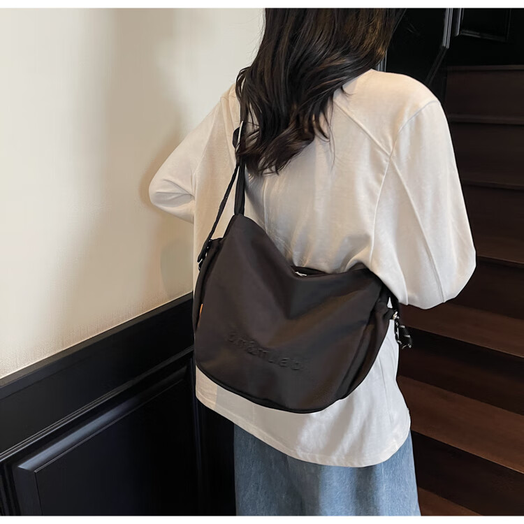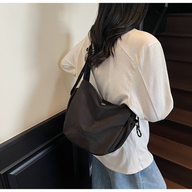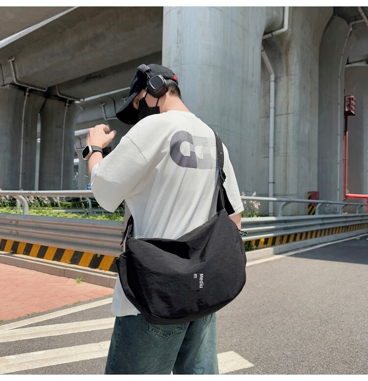 OTHER/Other Korean large-capacity women's canvas bag 2025 new work clothes messenger bag sports travel bicycle dumpling bag black small size