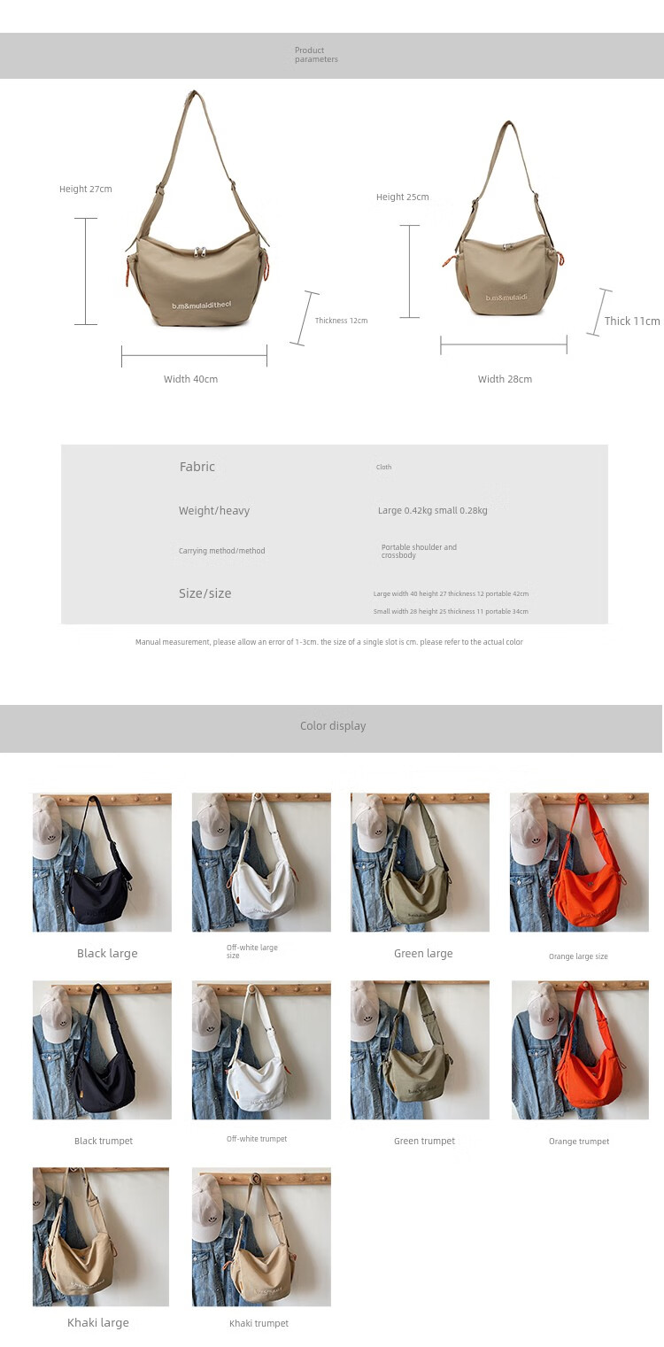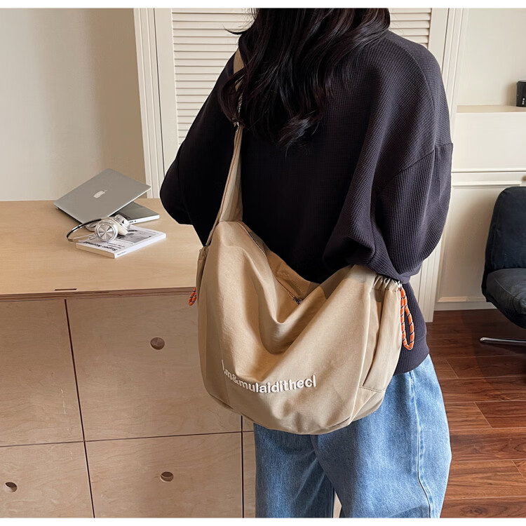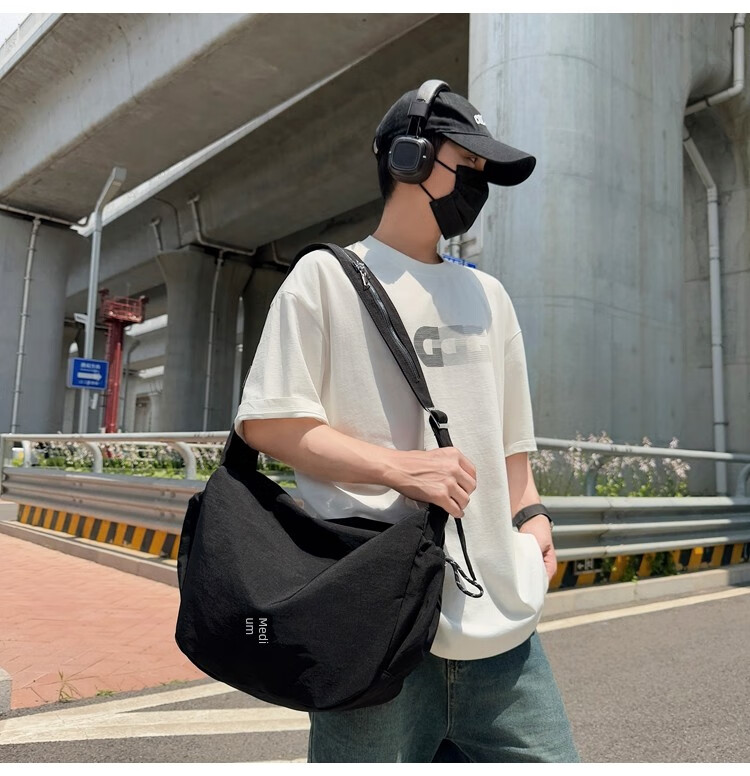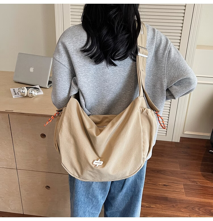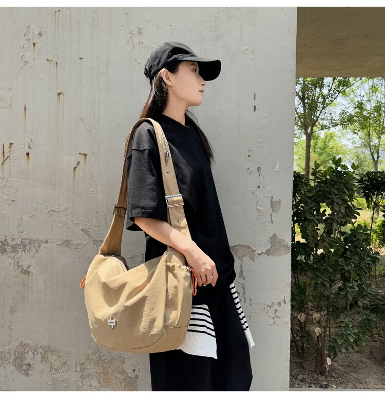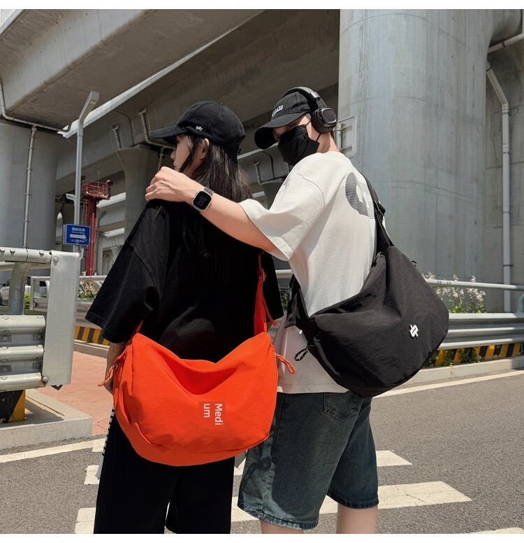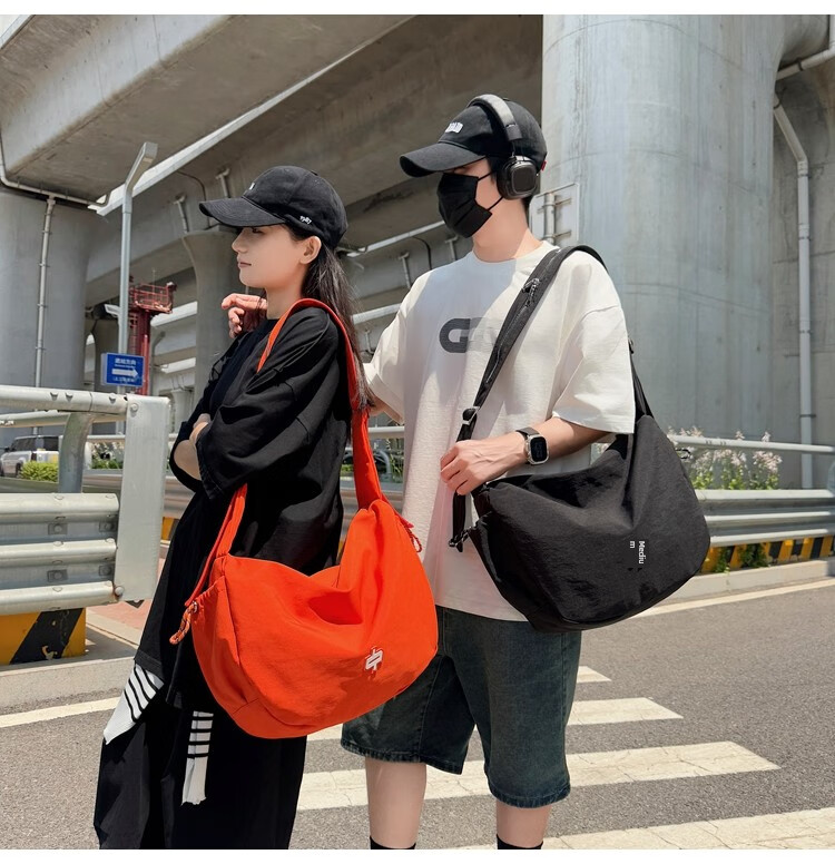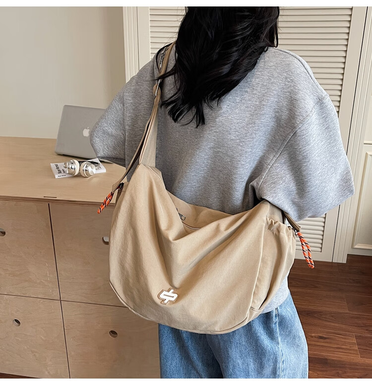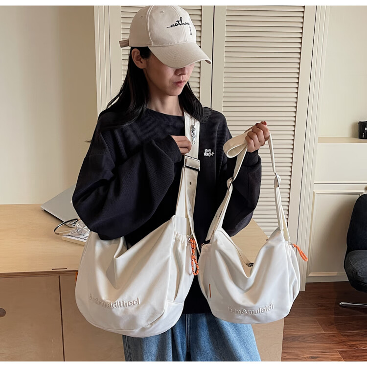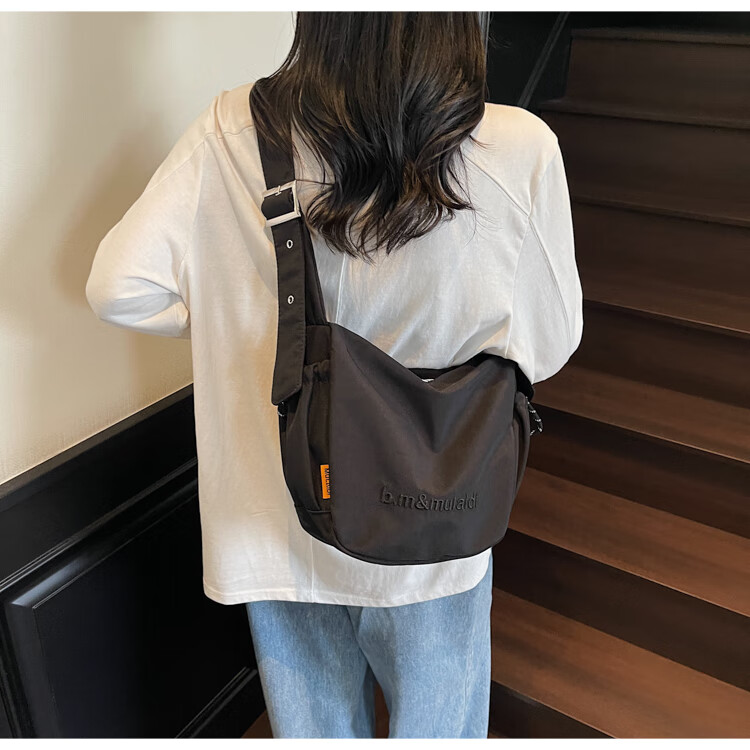 OTHER/Other Korean large-capacity women's canvas bag 2025 new work clothes messenger bag sports travel bicycle dumpling bag black small size