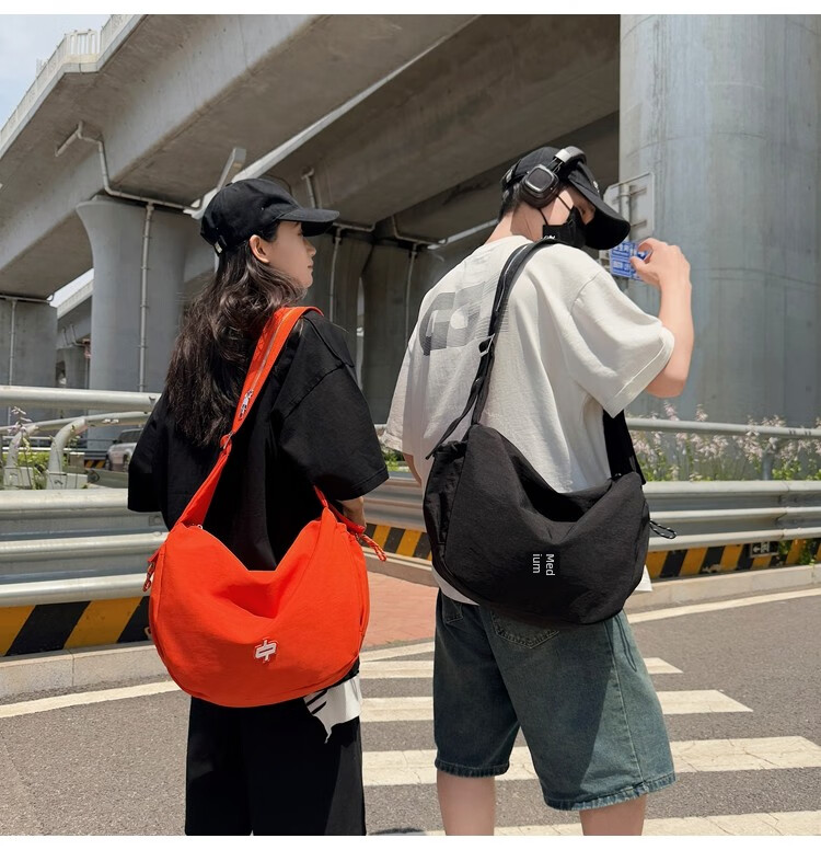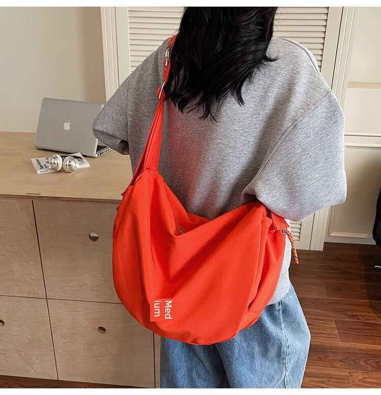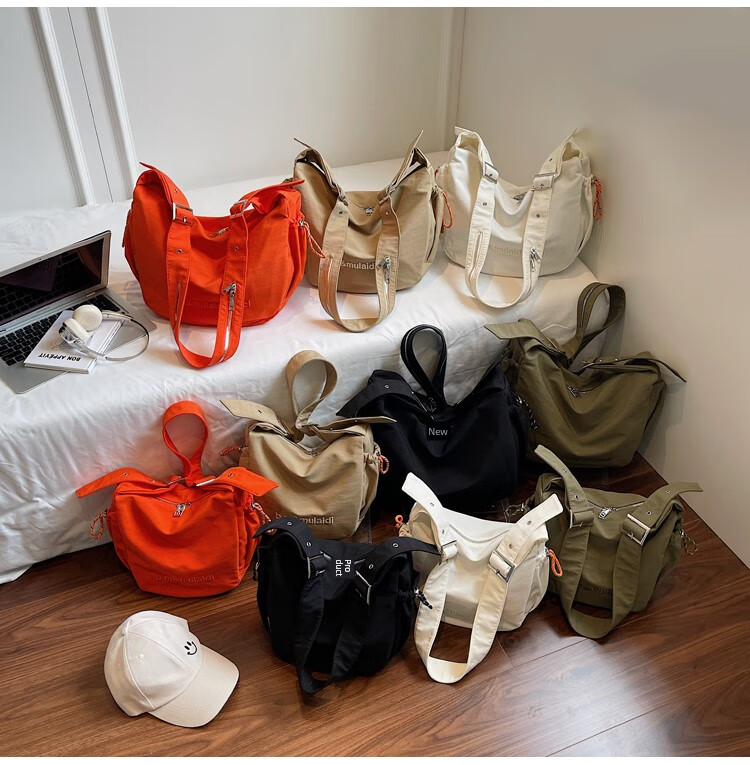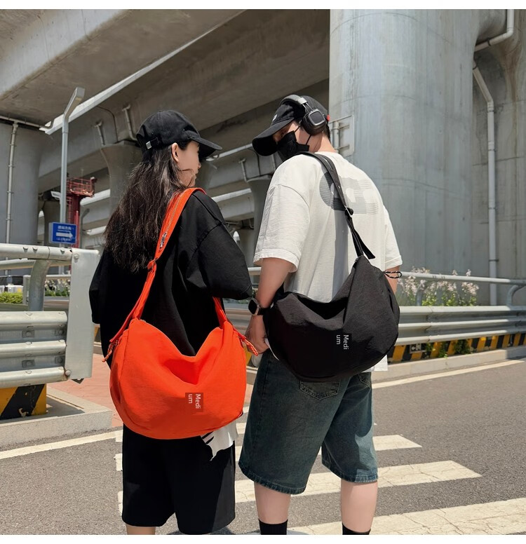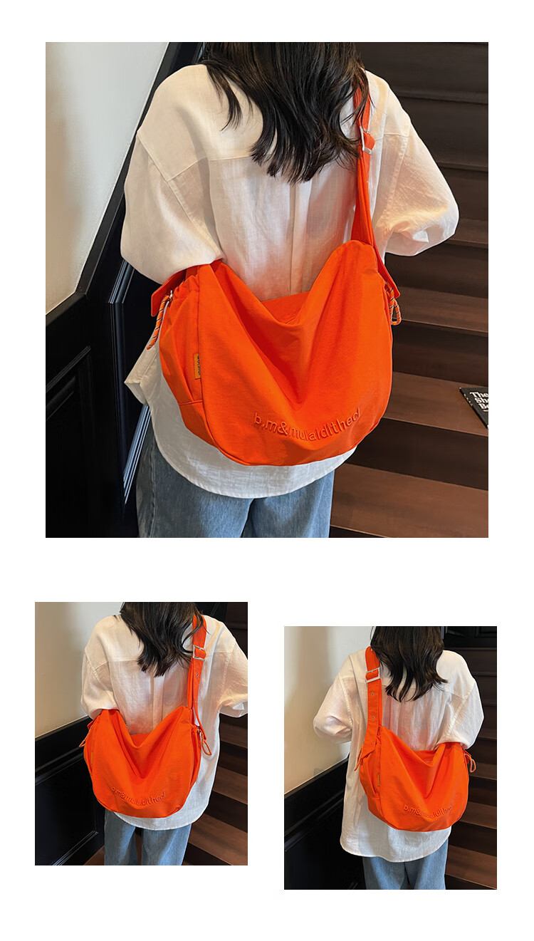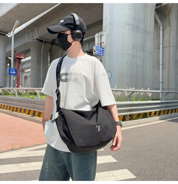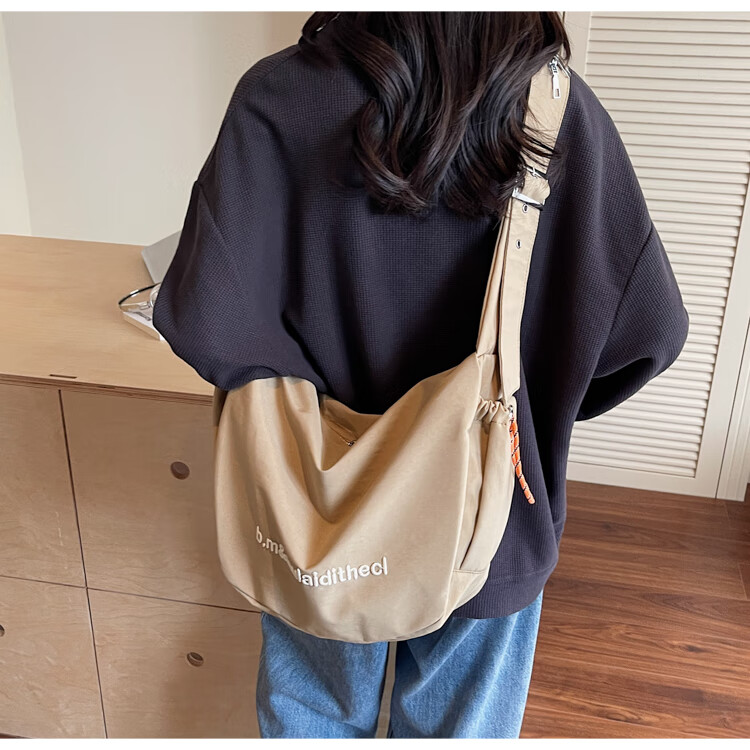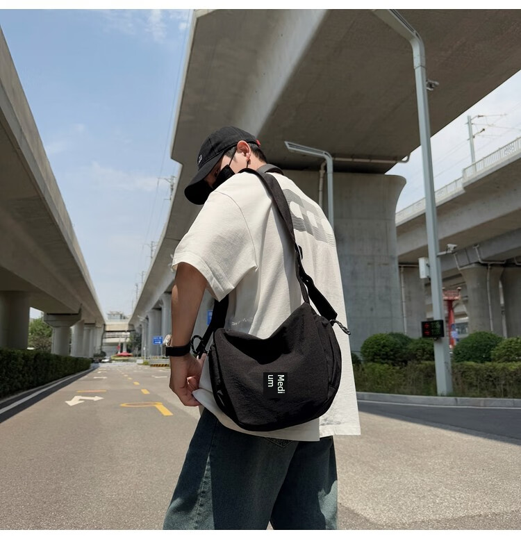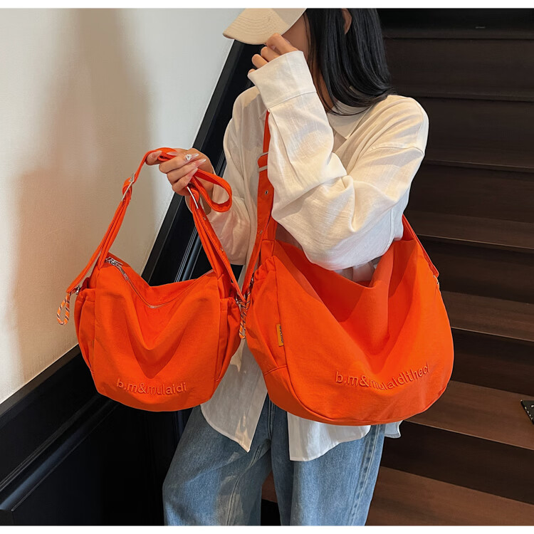 OTHER/Other Korean large-capacity women's canvas bag 2025 new work clothes messenger bag sports travel bicycle dumpling bag black small size