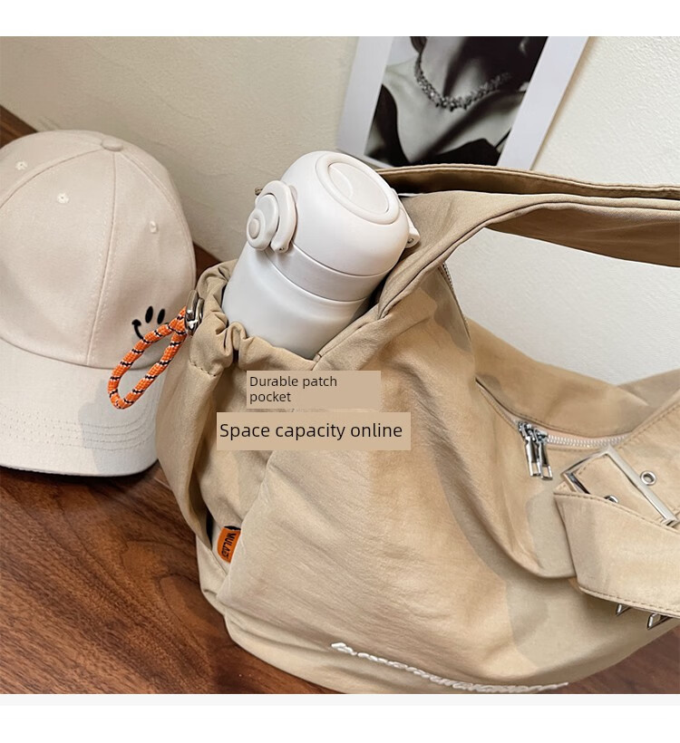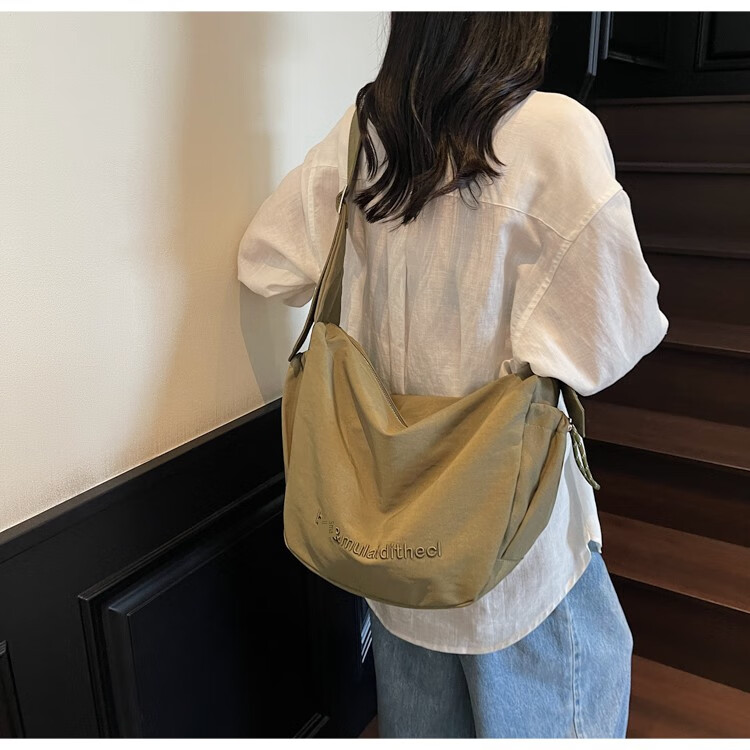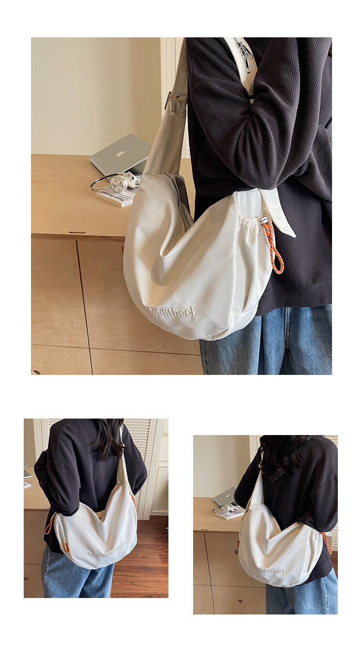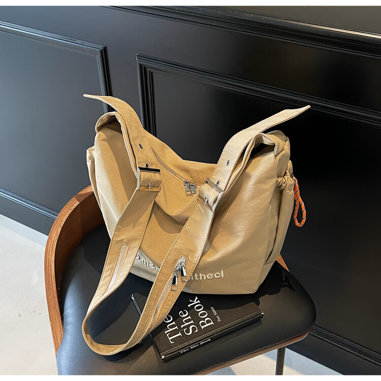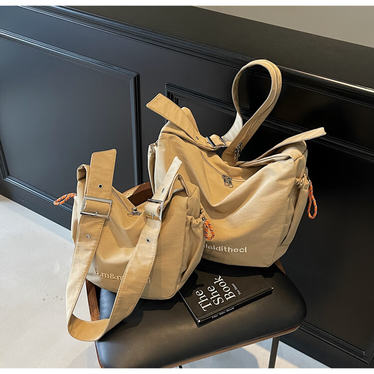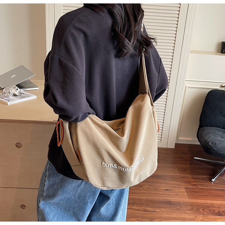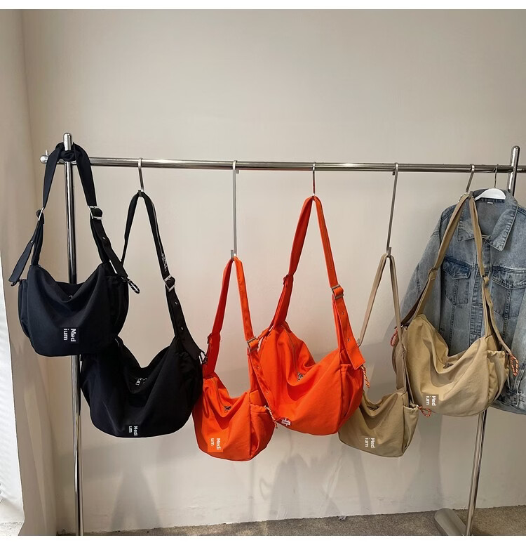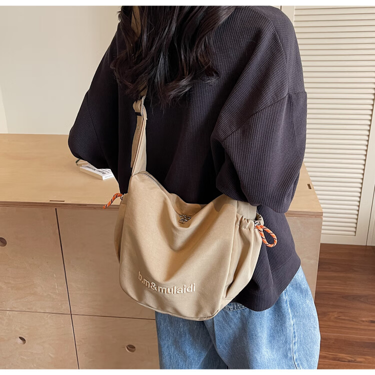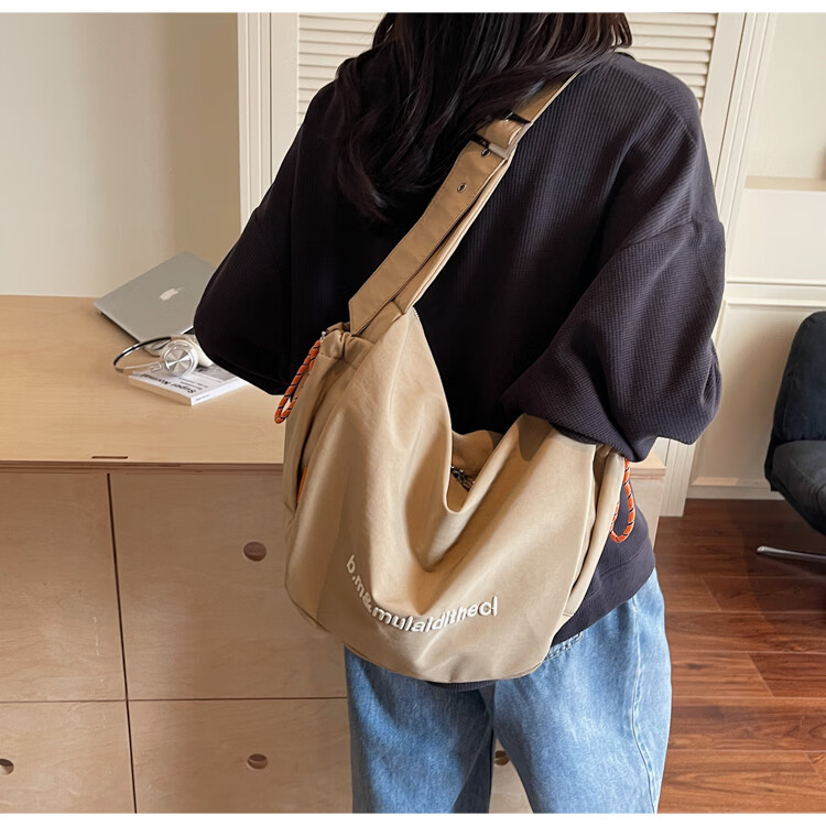 OTHER/Other Korean large-capacity women's canvas bag 2025 new work clothes messenger bag sports travel bicycle dumpling bag black small size