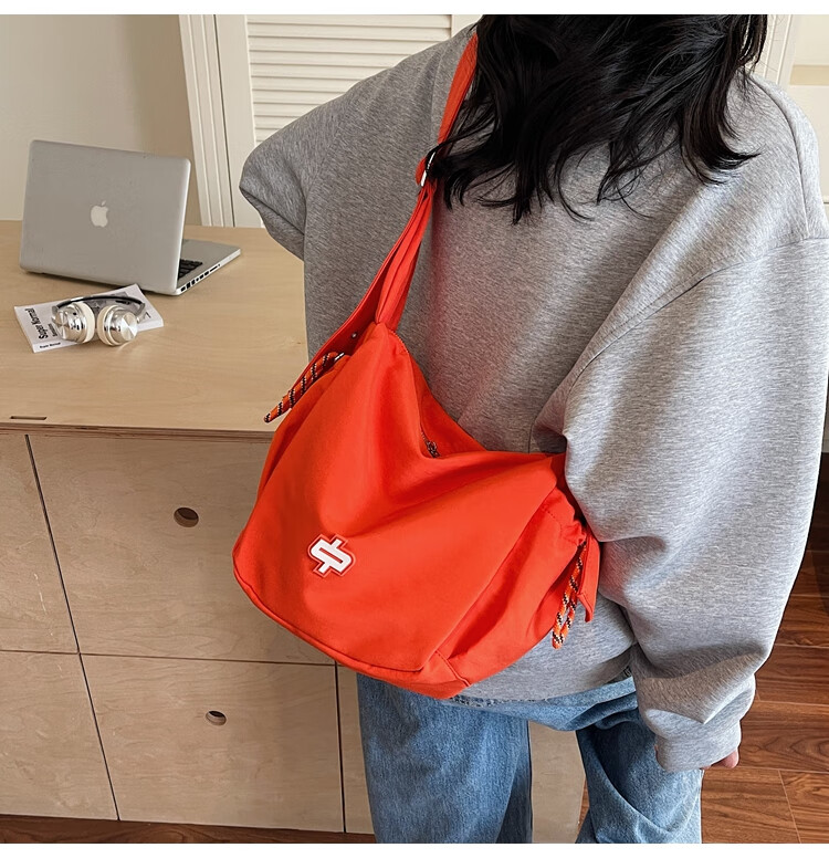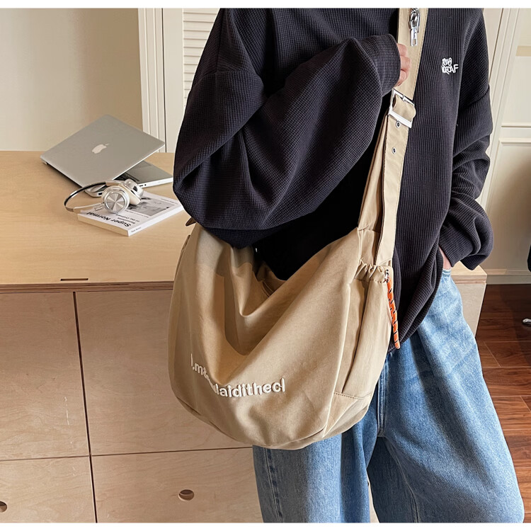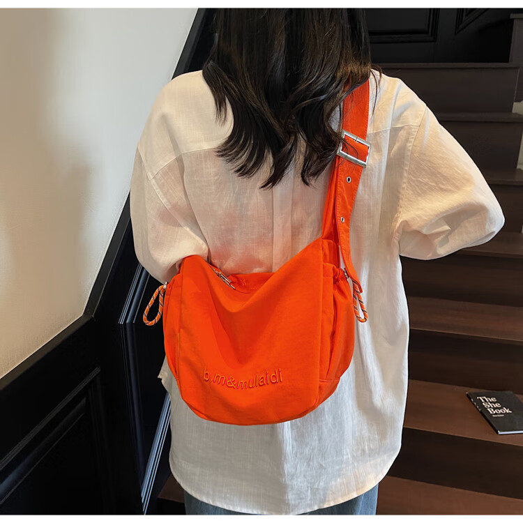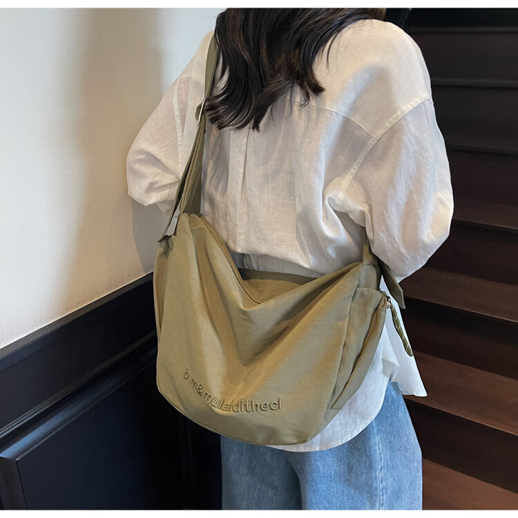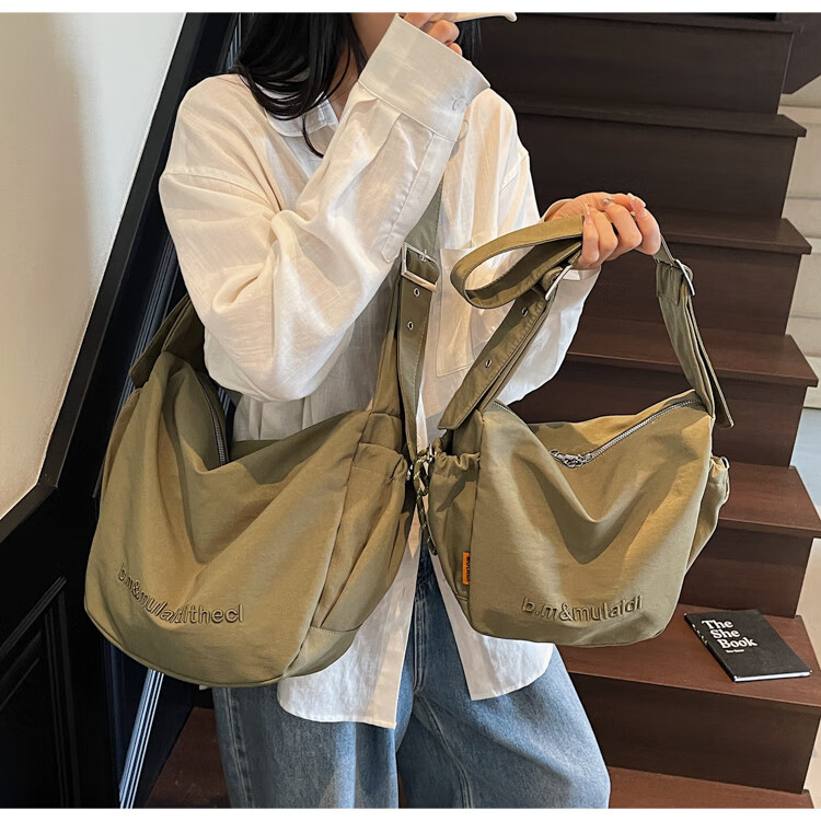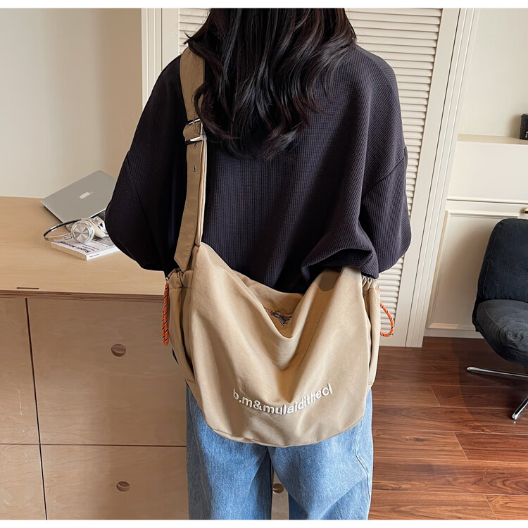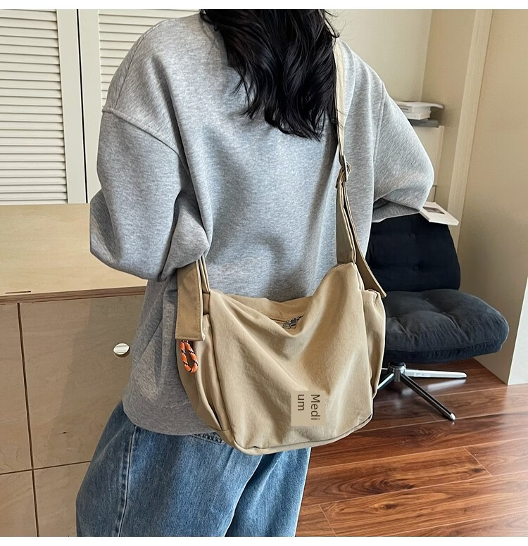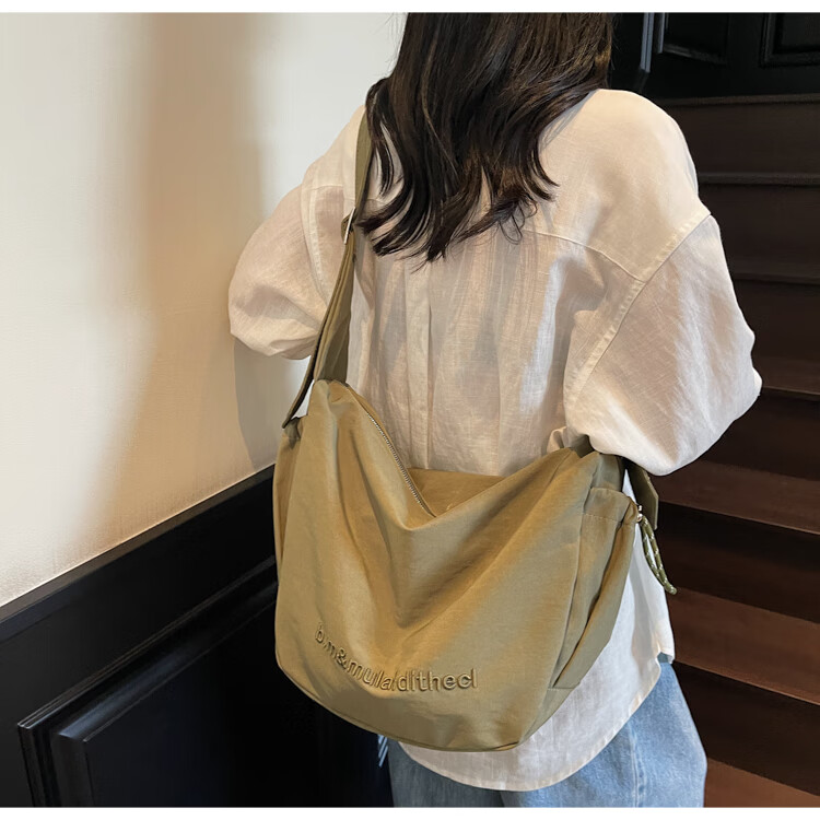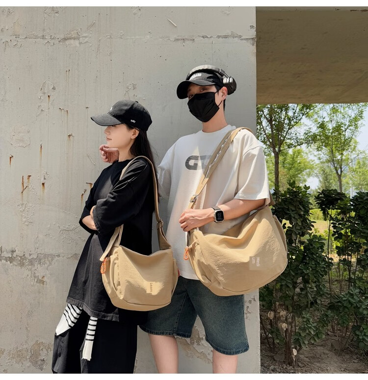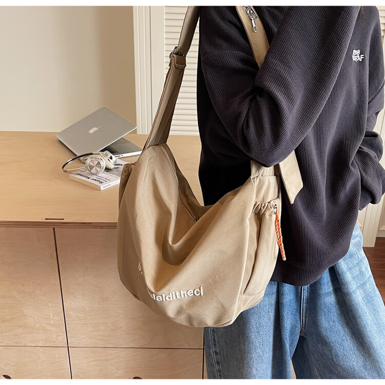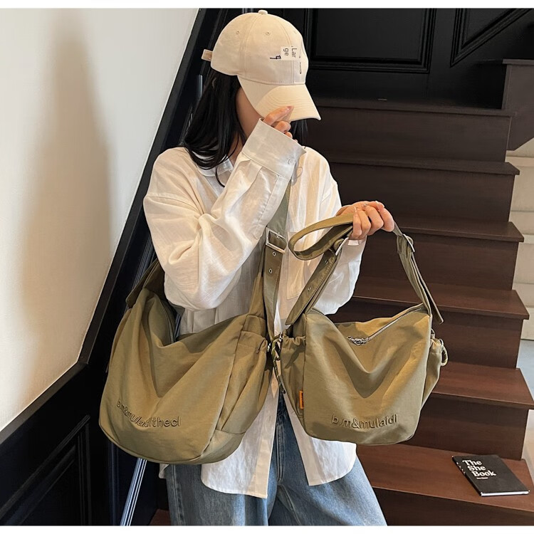 OTHER/Other Korean large-capacity women's canvas bag 2025 new work clothes messenger bag sports travel bicycle dumpling bag black small size