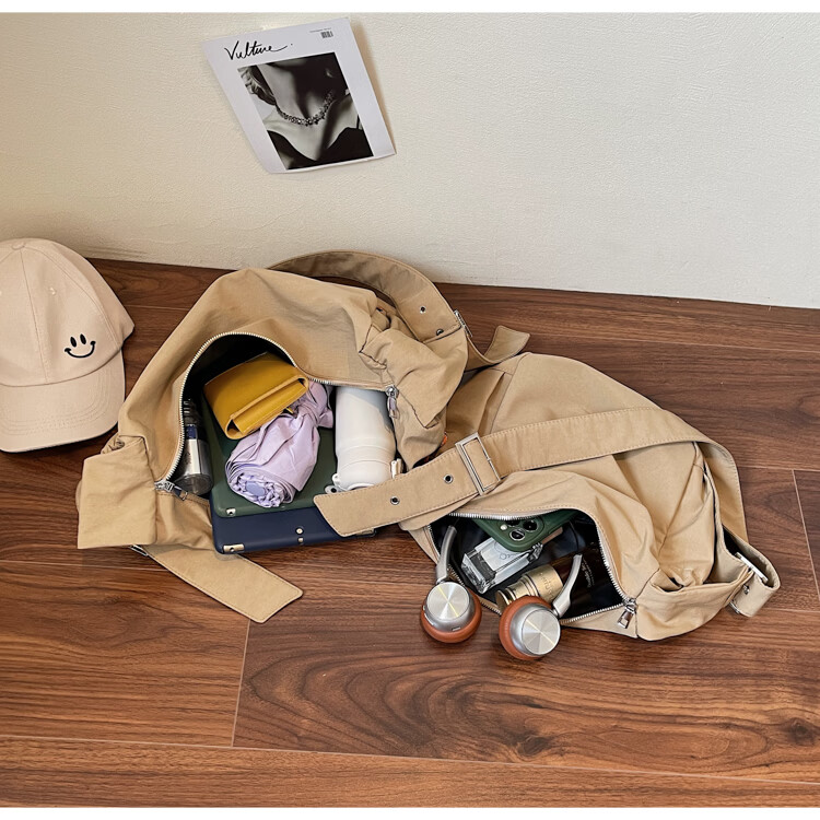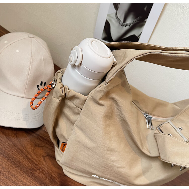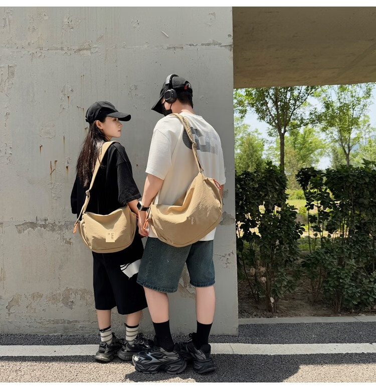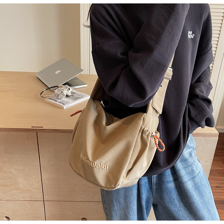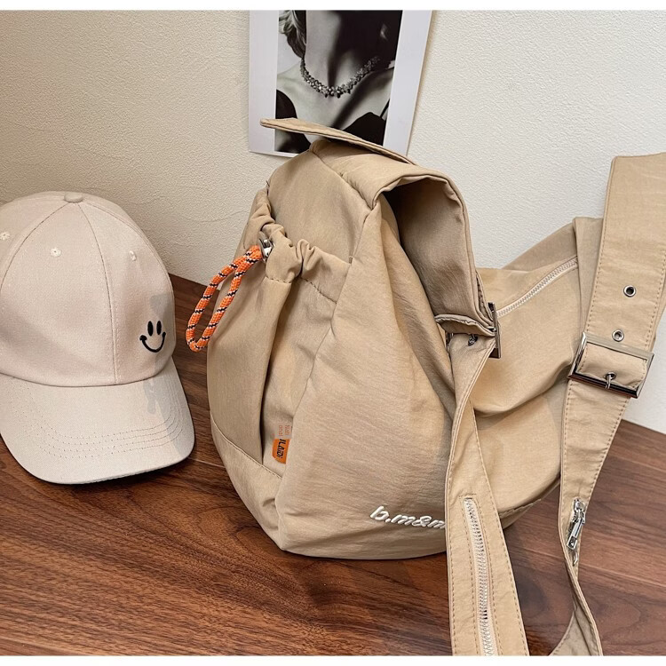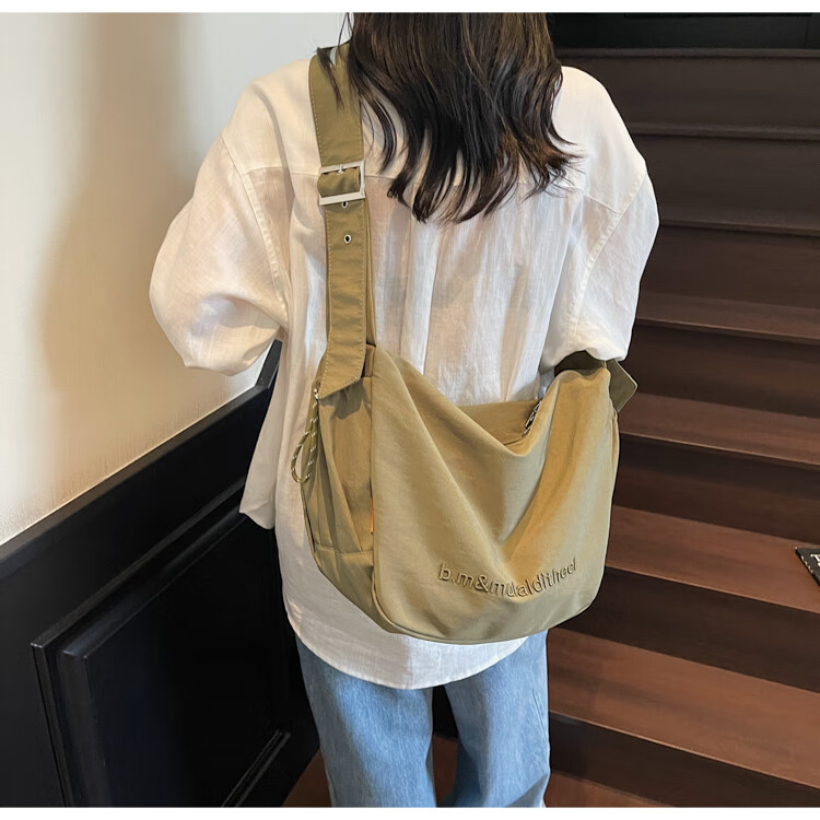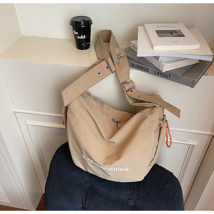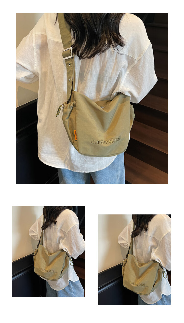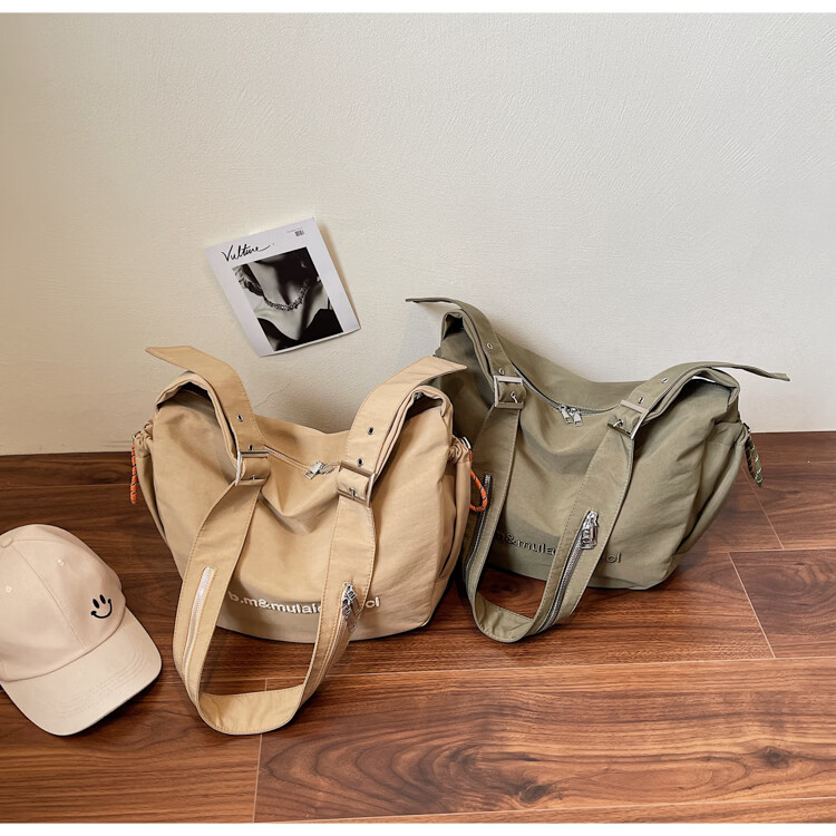 OTHER/Other Korean large-capacity women's canvas bag 2025 new work clothes messenger bag sports travel bicycle dumpling bag black small size