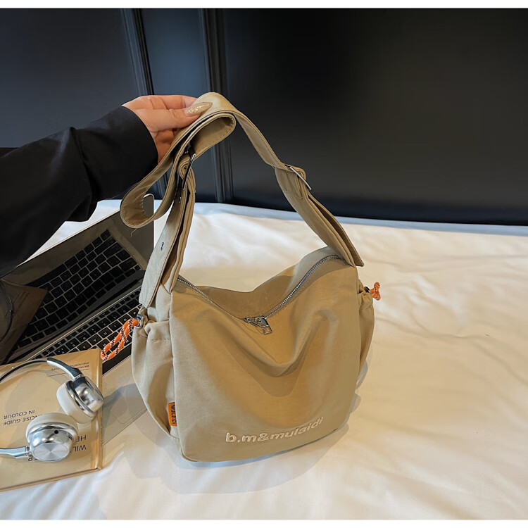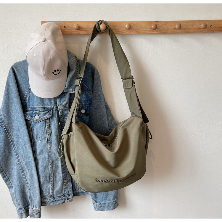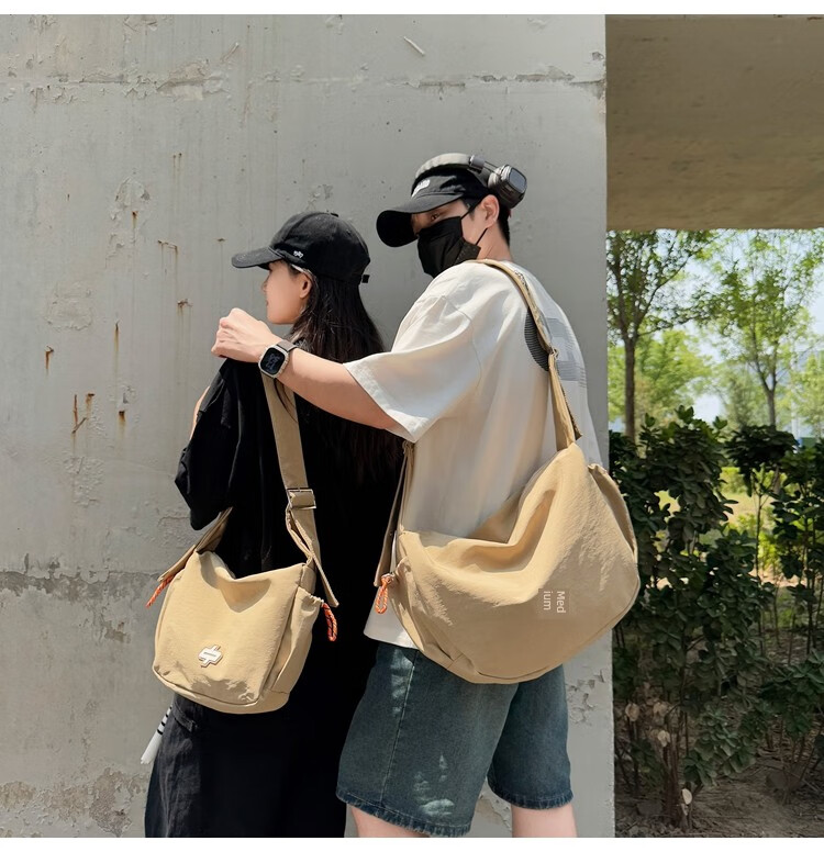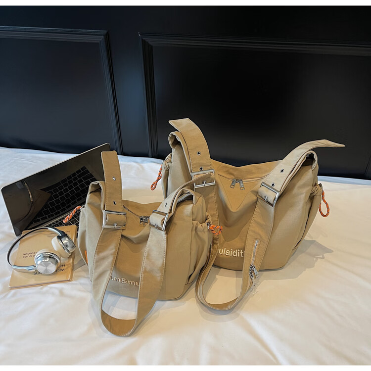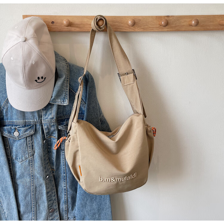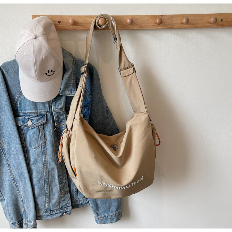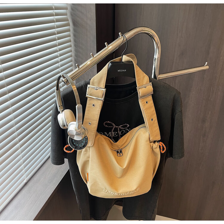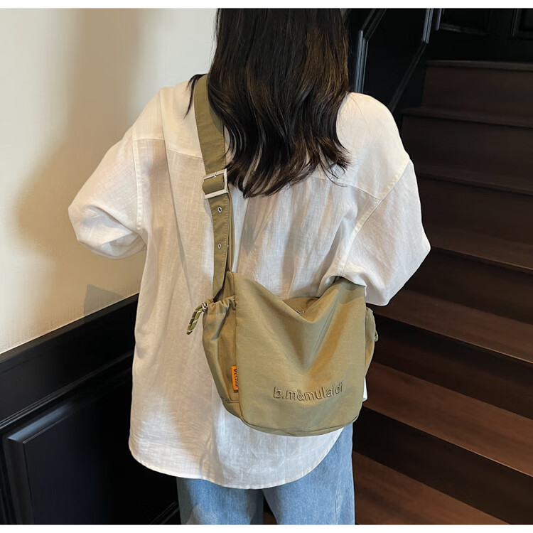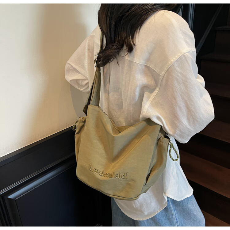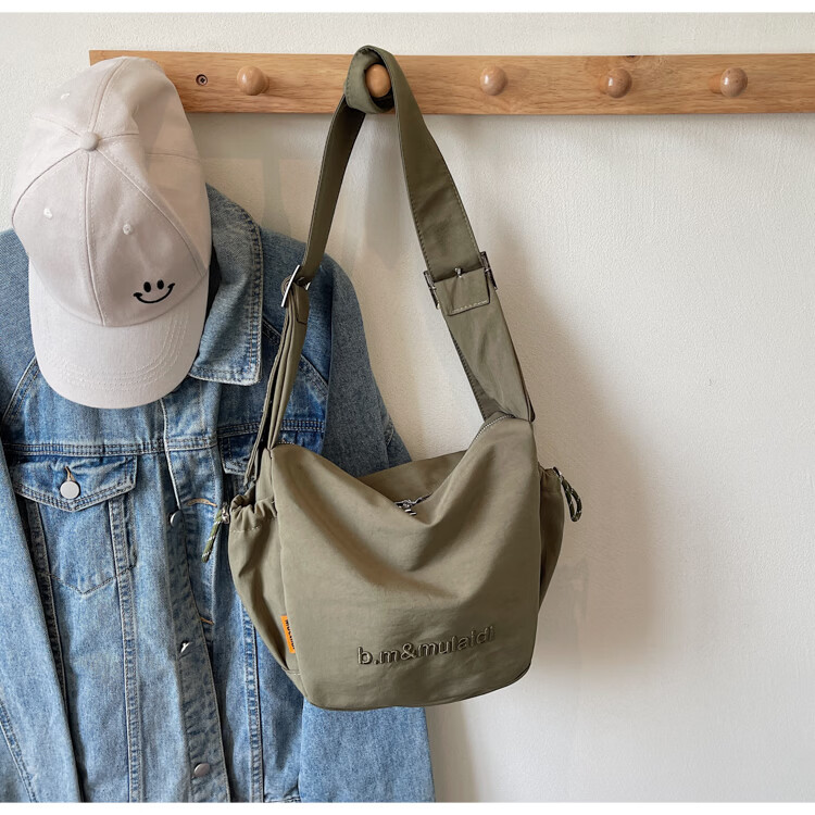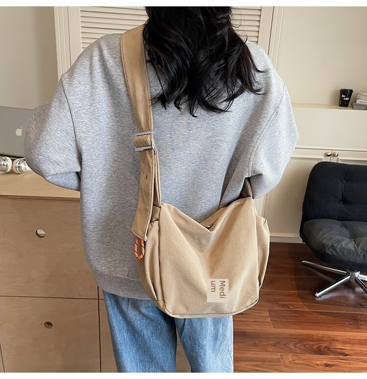OTHER/Other Korean large-capacity women's canvas bag 2025 new work clothes messenger bag sports travel bicycle dumpling bag black small size