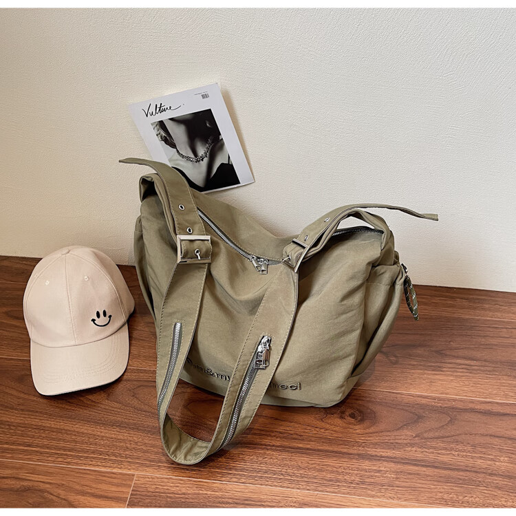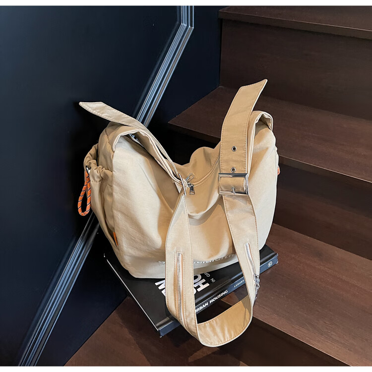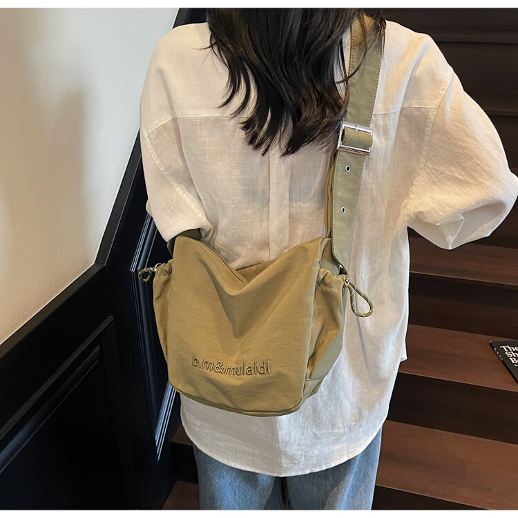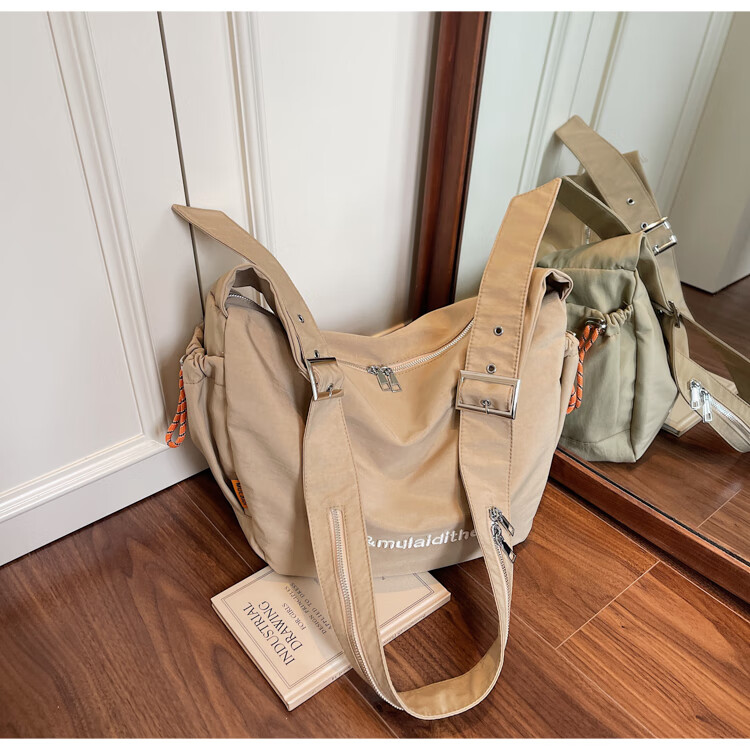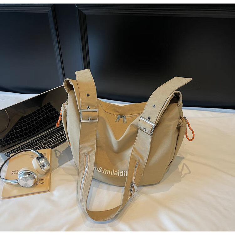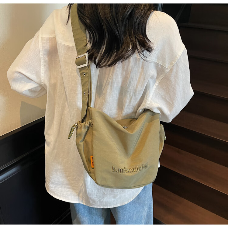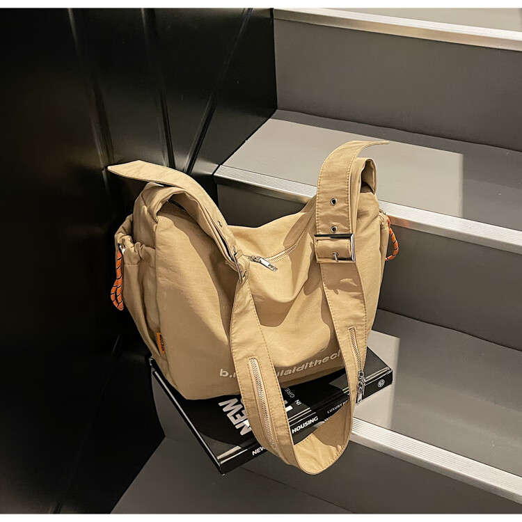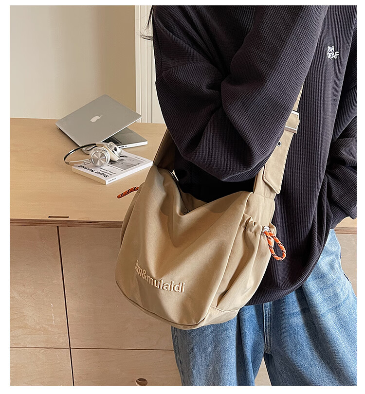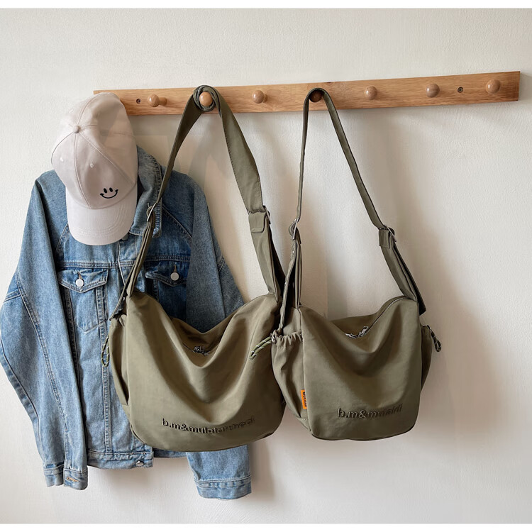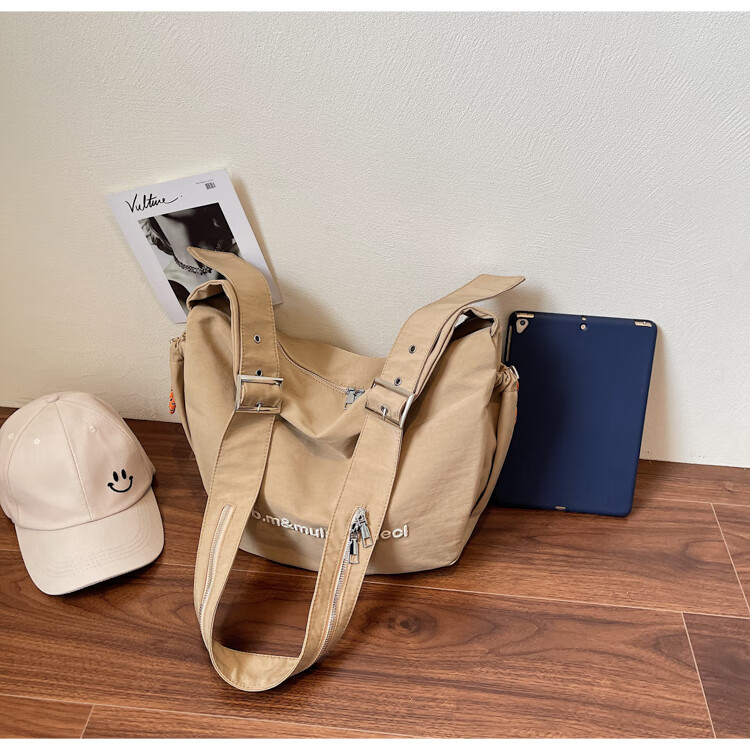OTHER/Other Korean large-capacity women's canvas bag 2025 new work clothes messenger bag sports travel bicycle dumpling bag black small size