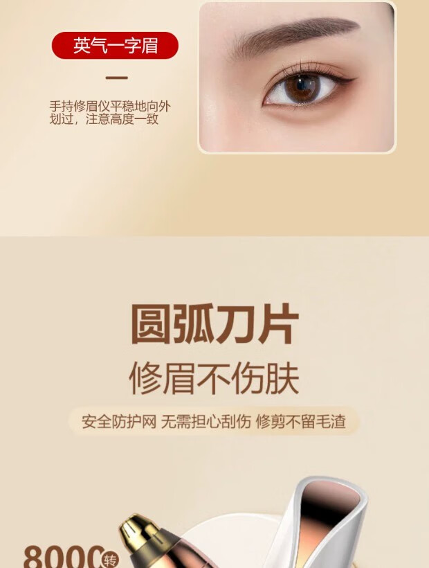 JCZS German brand electric eyebrow trimmer 2025 new model for men and women, rechargeable eyebrow trimmer, automatic shaving trimmer artifact, rose gold-rechargeable model