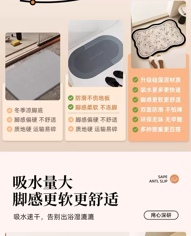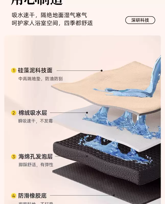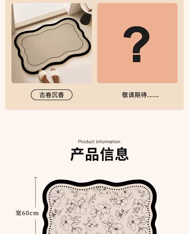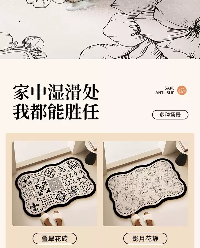 Yusenyi Bathroom Floor Mat Diatom Mud Water-Absorbent Anti-Dirty Soft Cushion Toilet Bathroom Door Non-Slip Carpet Household Quick-Drying Foot Mat Ancient Scroll Agarwood Special Shape (Xindong Bathroom Combination Pack) 45x70cm Special Offer 2 Pieces