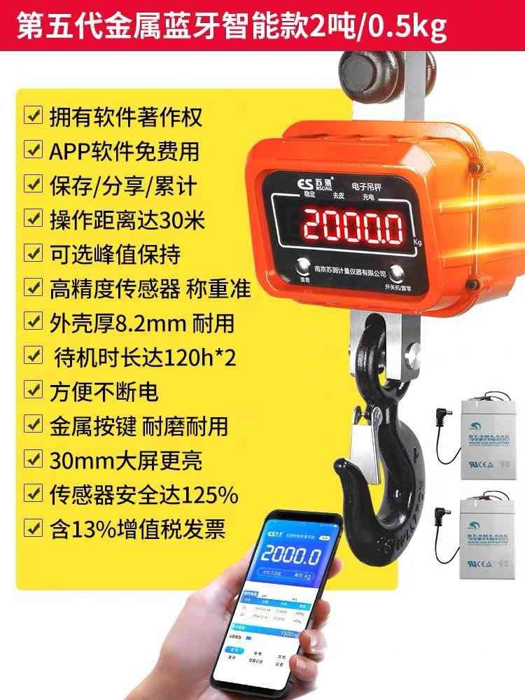 Electronic crane scale waterproof electronic crane scale driving hook scale portable wireless precise Bluetooth 10 tons red and green dual display + handheld instrument
