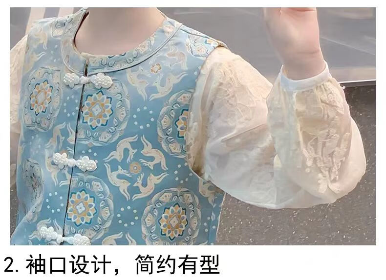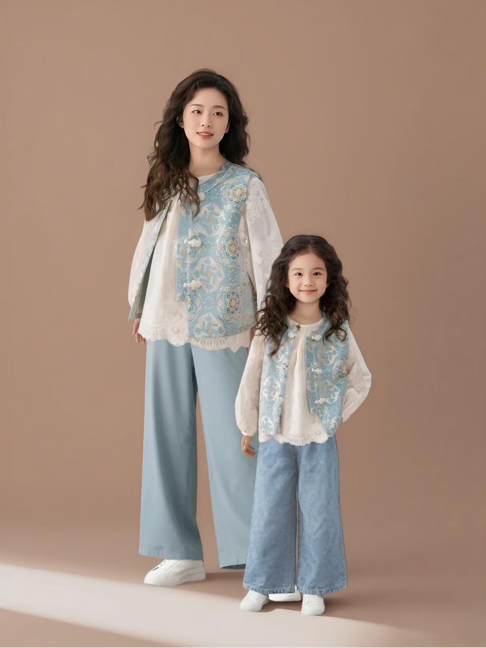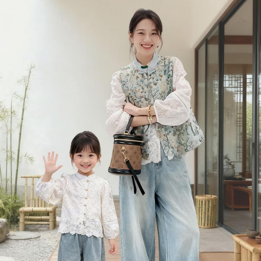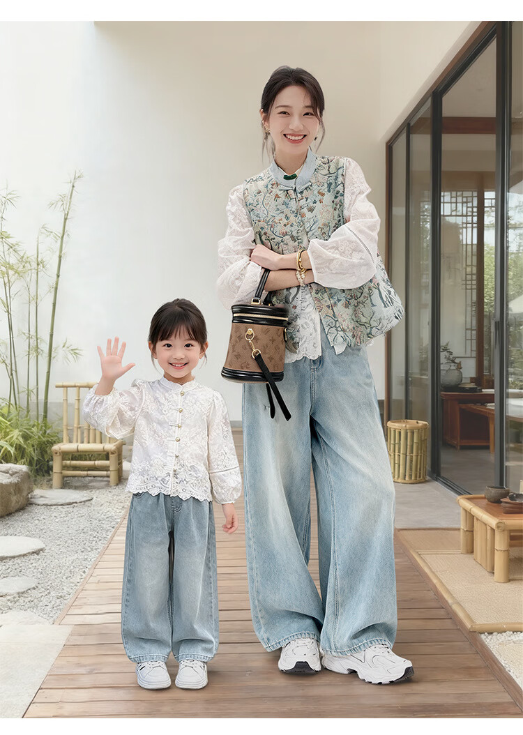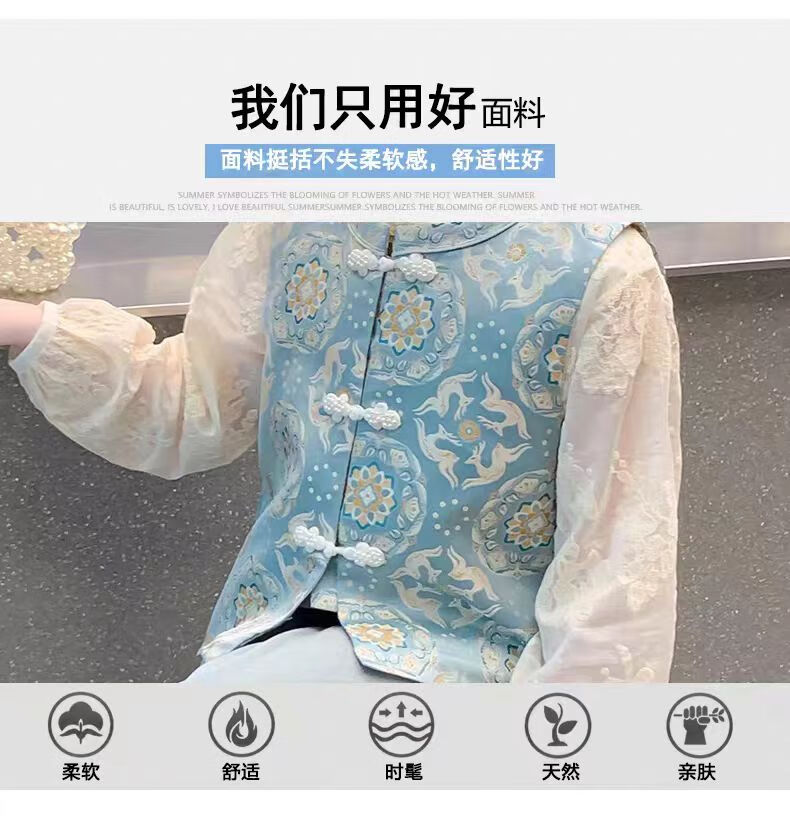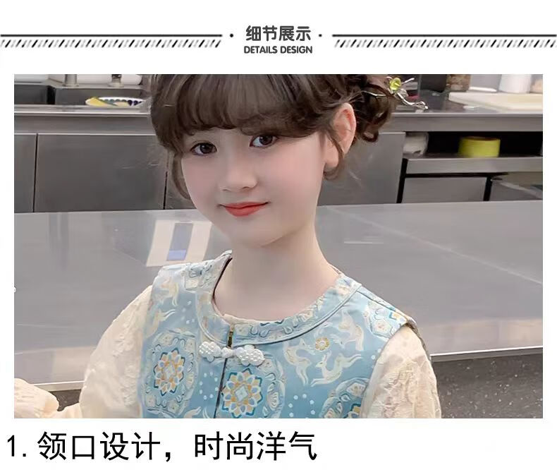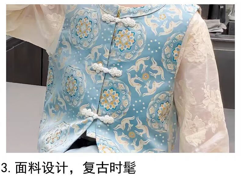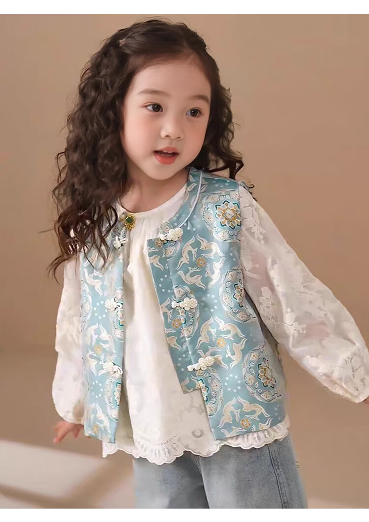 QINZHI Hanfu parent-child clothing mother and daughter autumn and winter new Chinese style parent-child clothing Chinese style buckle vest autumn clothing 2025 new retro mother-in-law floral blue vest 120 girls height about 110cm