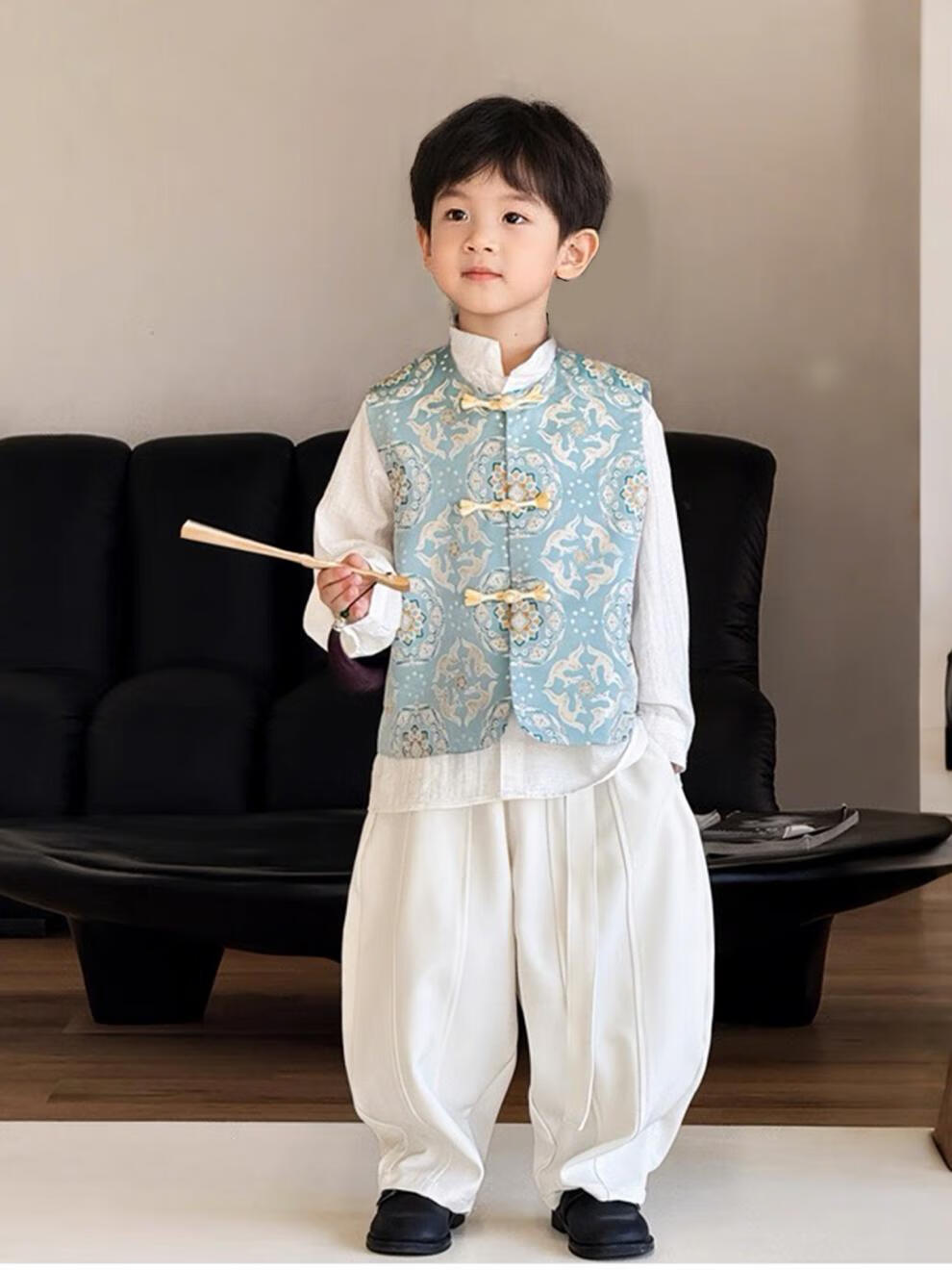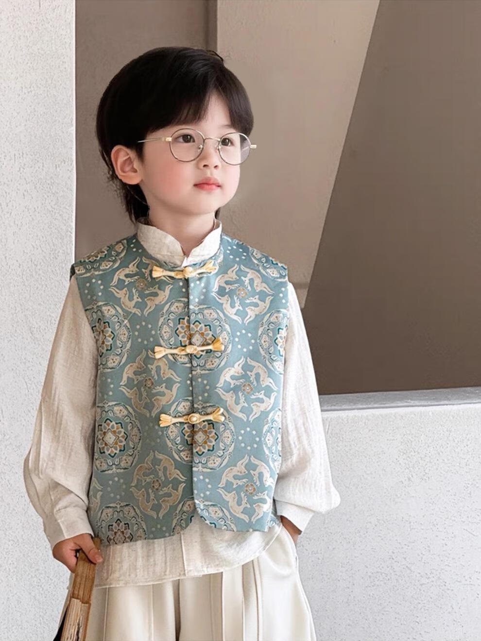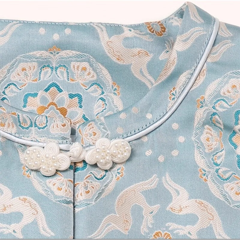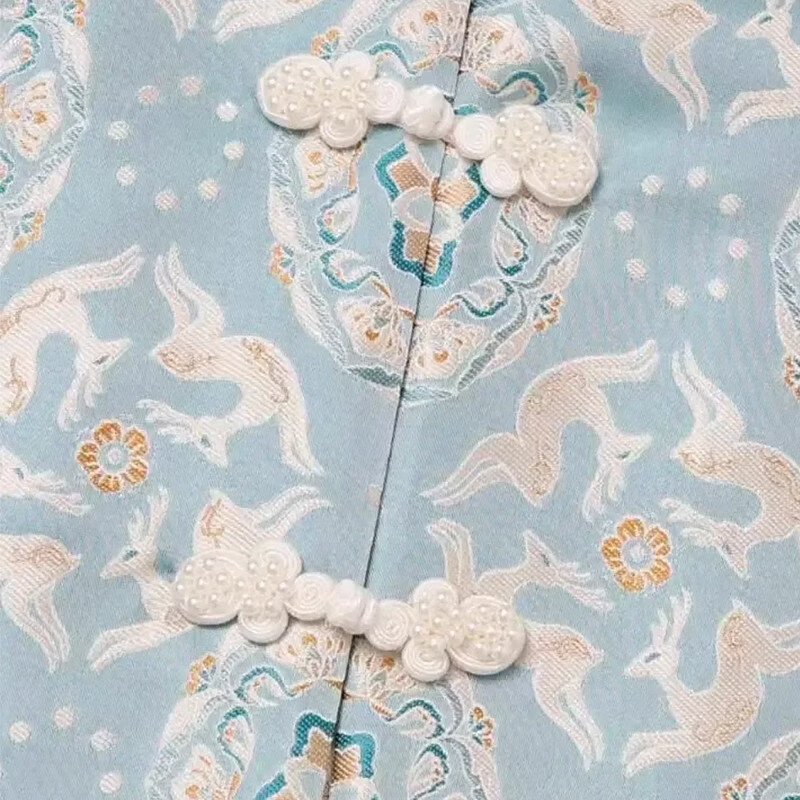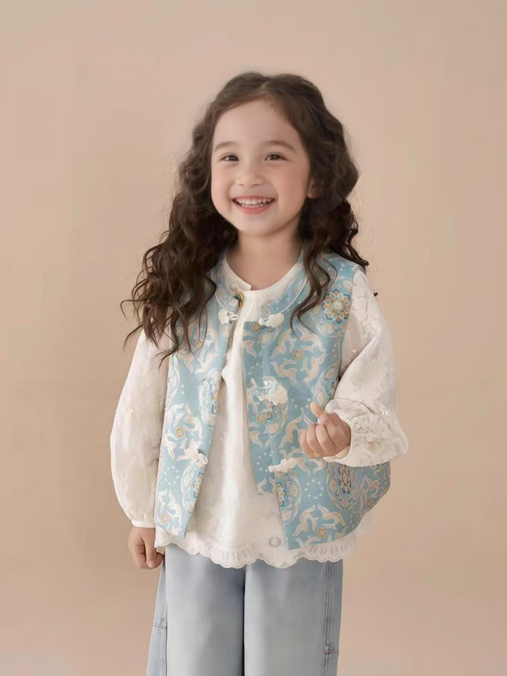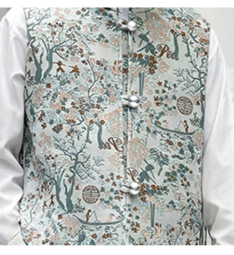 QINZHI Hanfu parent-child clothing mother and daughter autumn and winter new Chinese style parent-child clothing Chinese style buckle vest autumn clothing 2025 new retro mother-in-law floral blue vest 120 girls height about 110cm