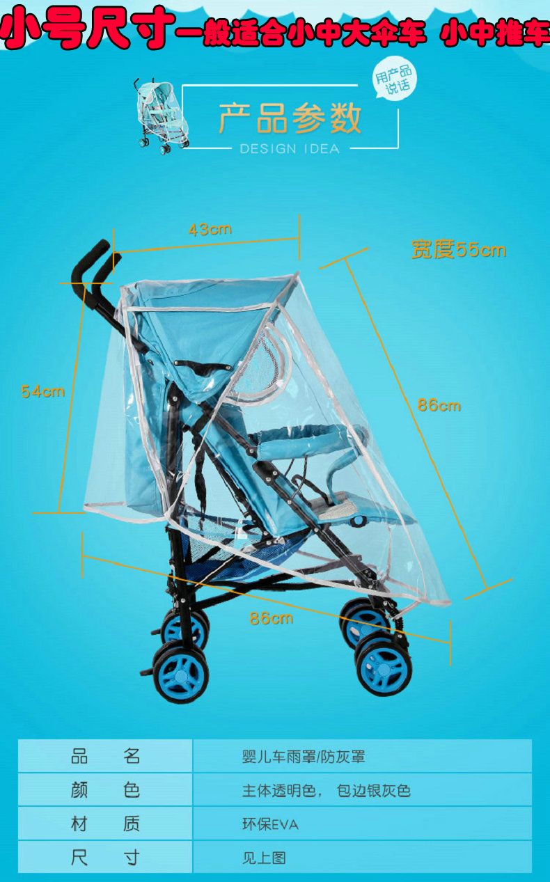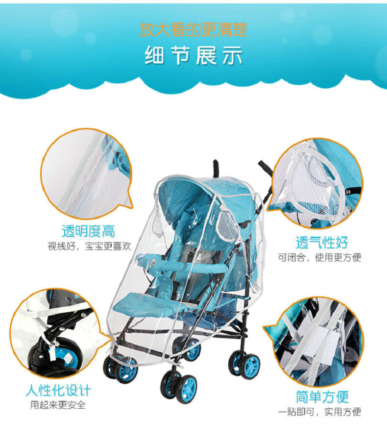 Stroller rain cover, stroller rain cover, stroller rain cover, stroller windproof cover, stroller windproof cover, warm and windproof, small umbrella stroller rain cover with cotton pad (no zipper EVA food grade
