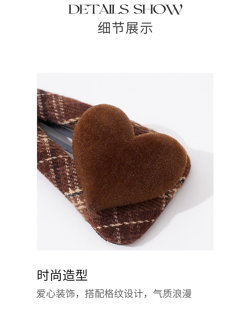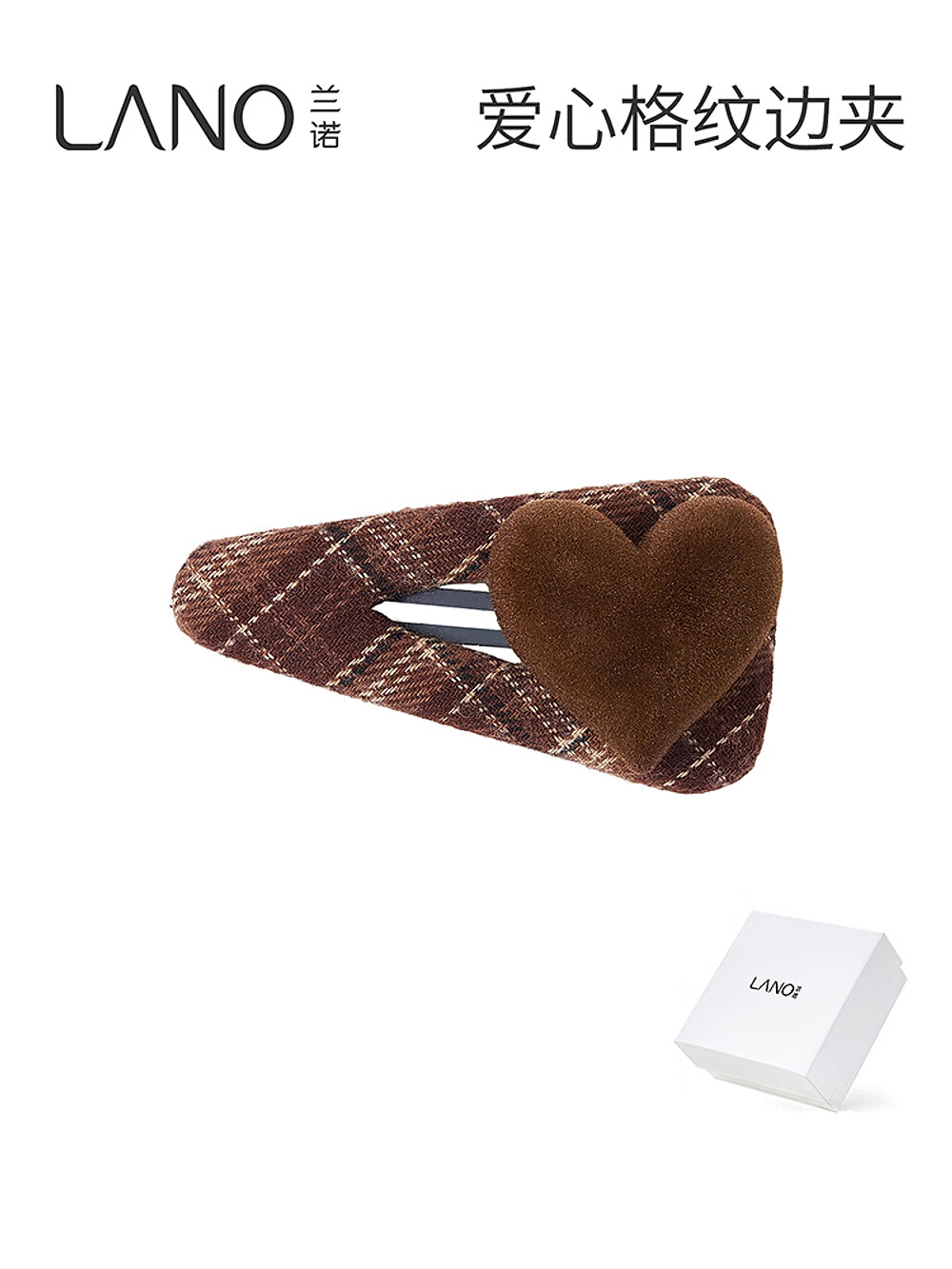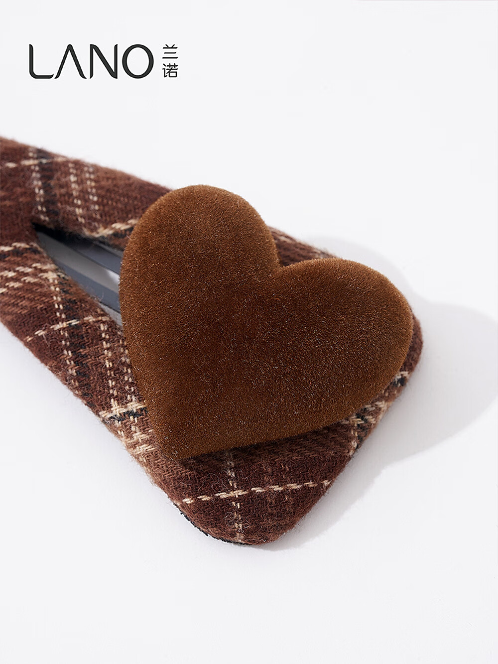 Lannuo velvet love plaid hair clip for women 2025 new high-end side clip forehead bangs clip one-word hair clip dark coffee
