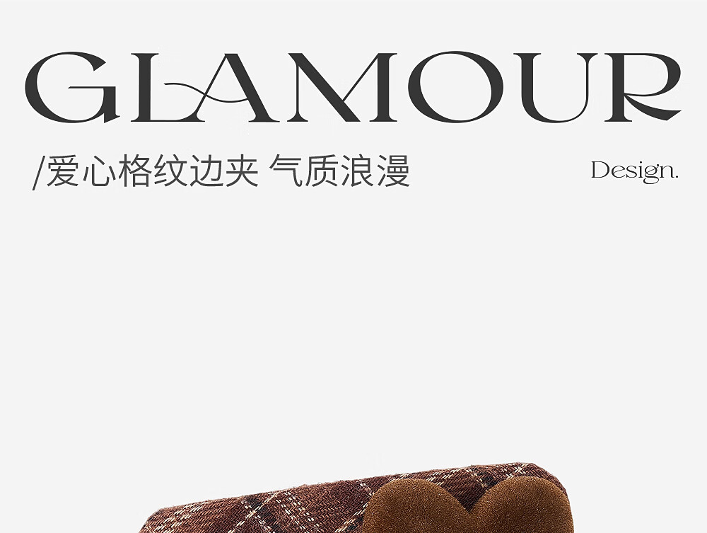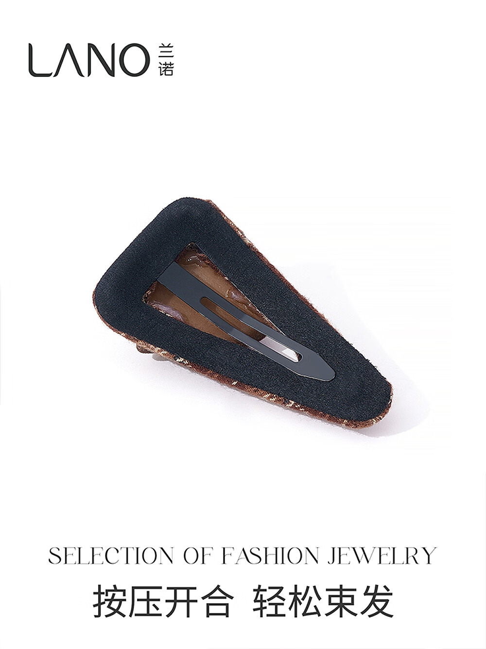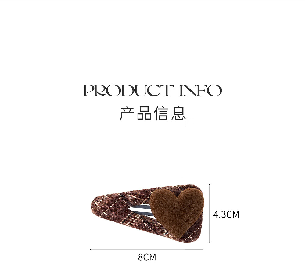 Lannuo velvet love plaid hair clip for women 2025 new high-end side clip forehead bangs clip one-word hair clip dark coffee