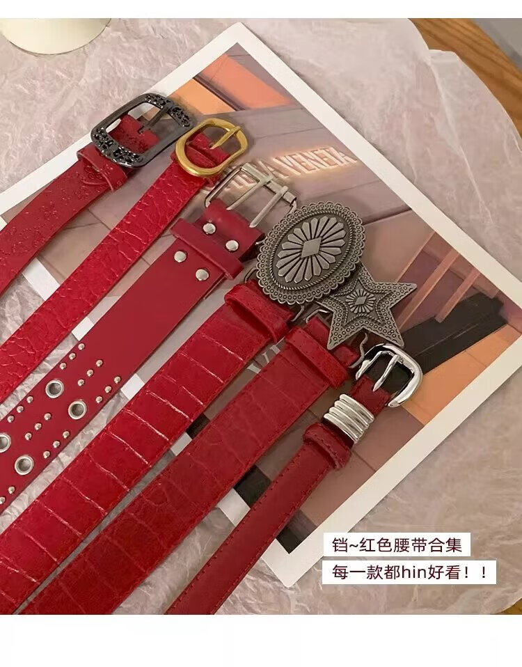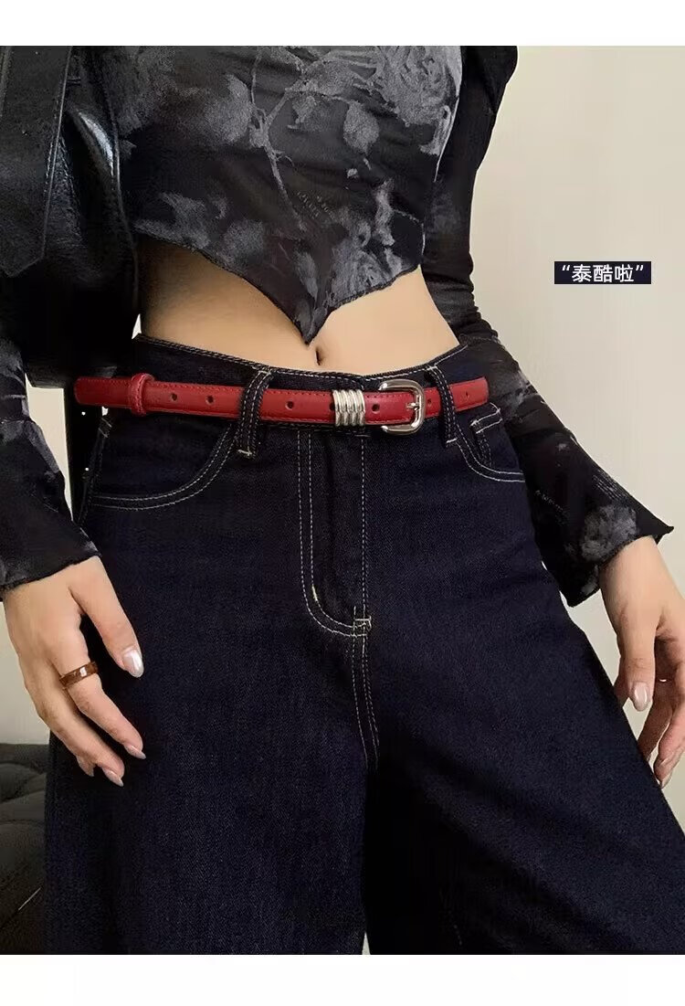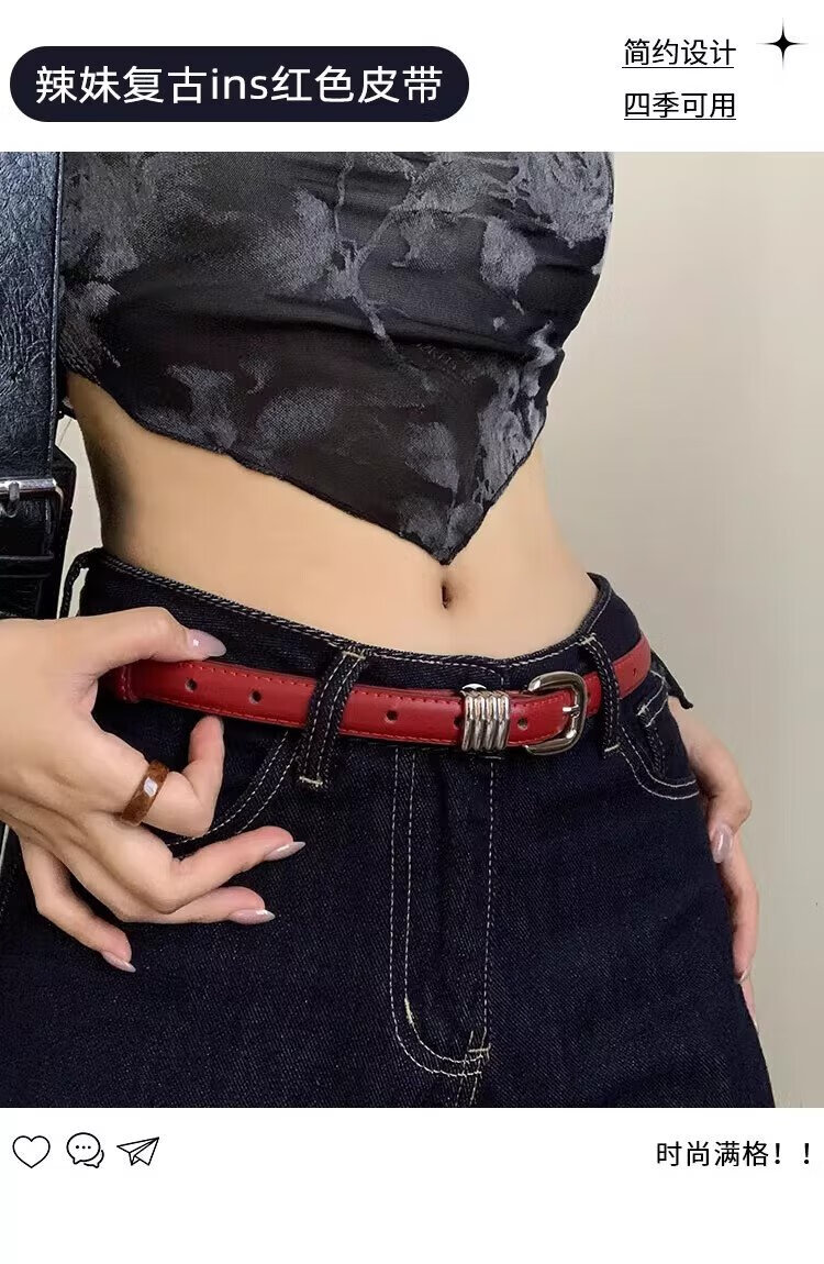 Oein red belt zodiac year women's horse year belt thin style with jeans and skirt decoration simple and versatile narrow waistband Ankola red 103cm
