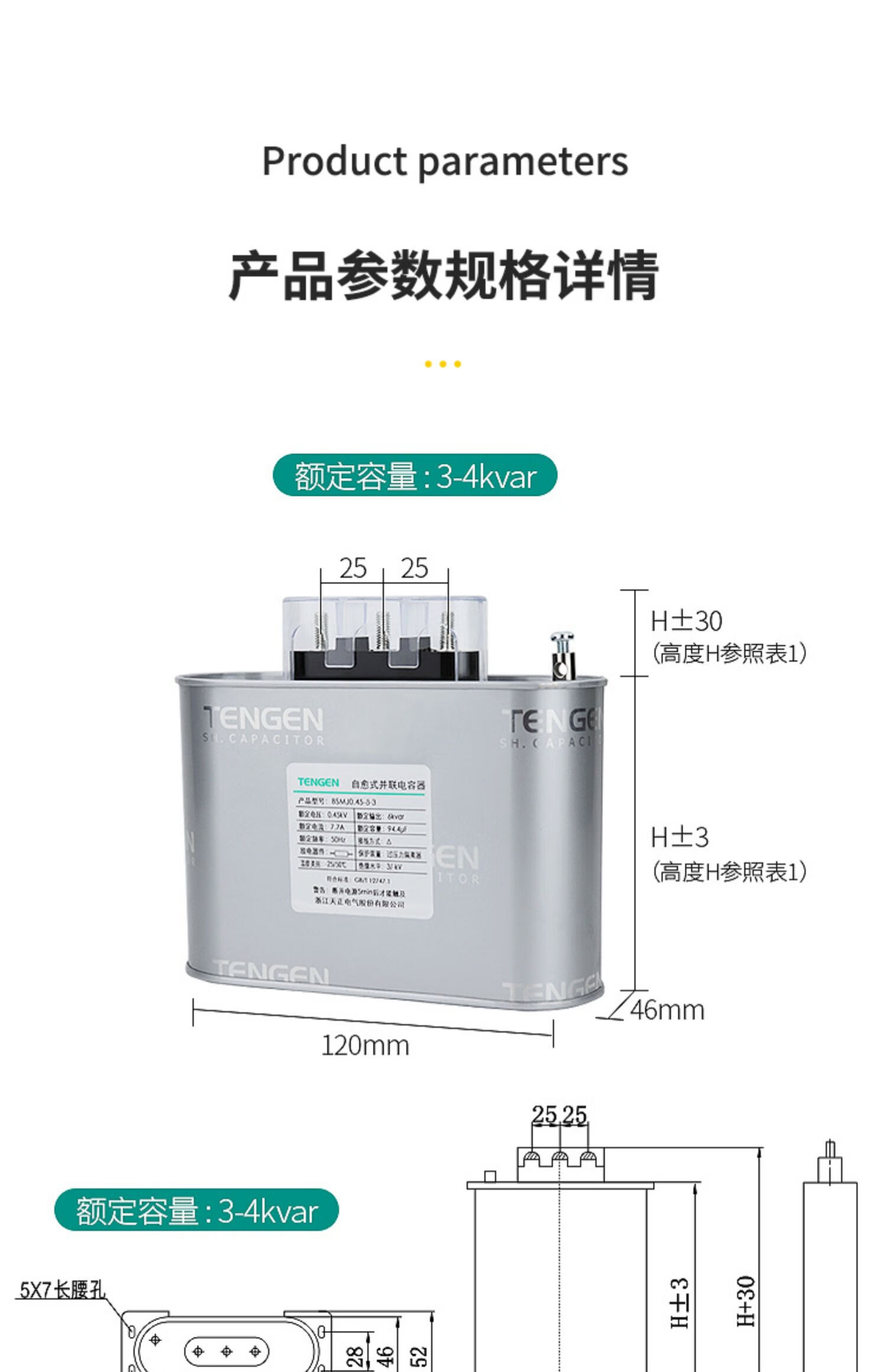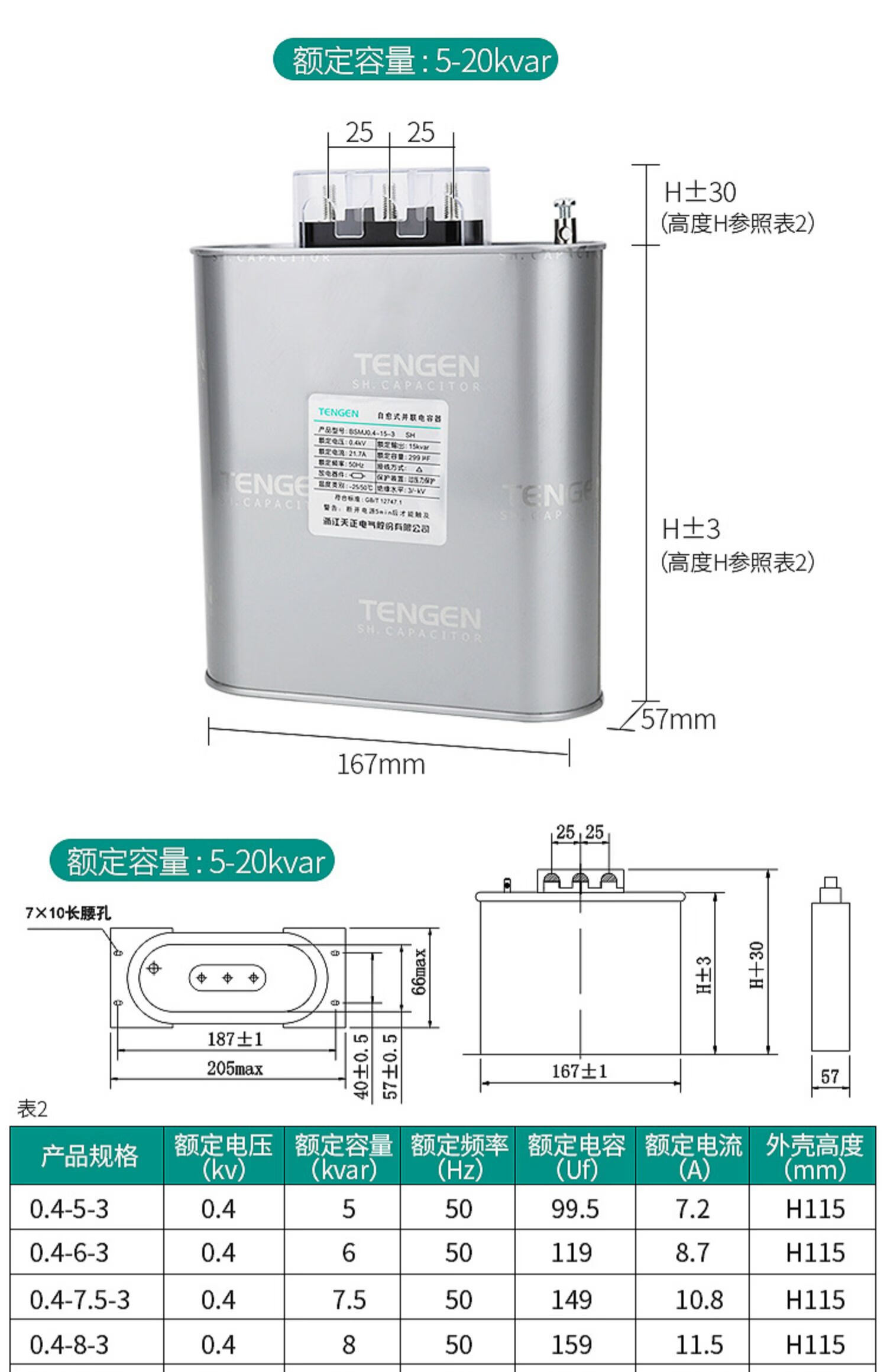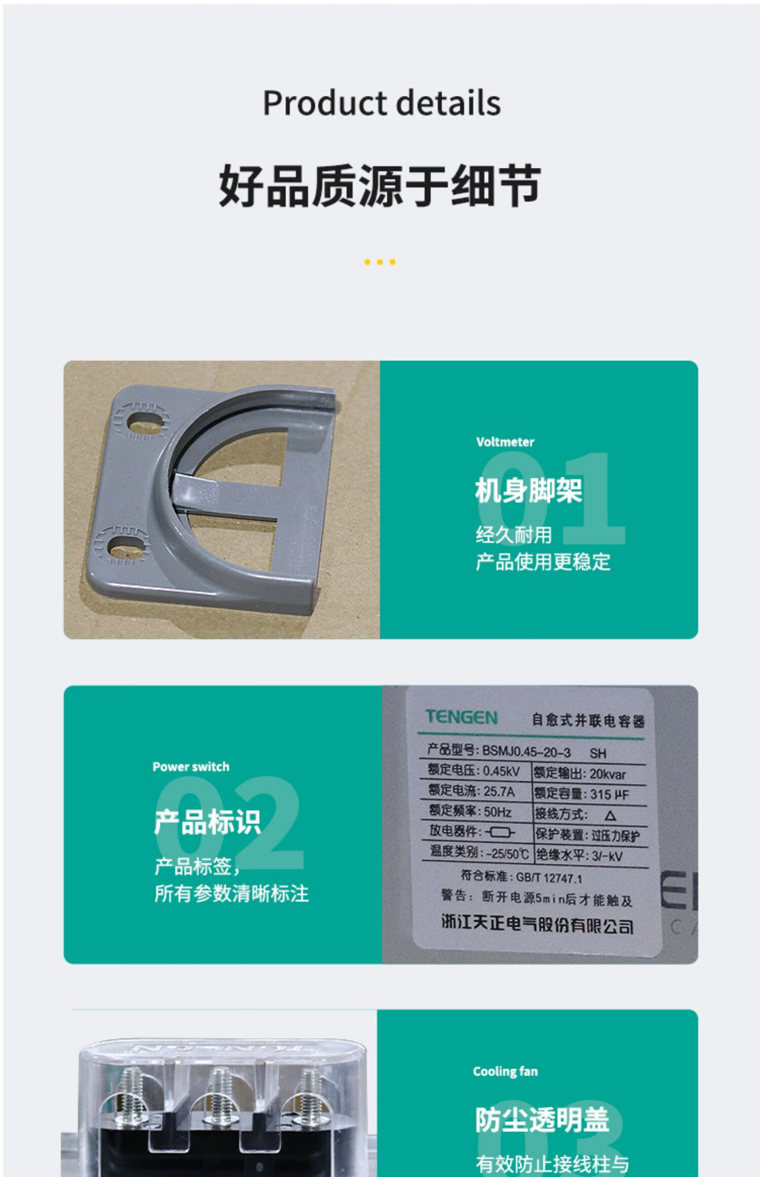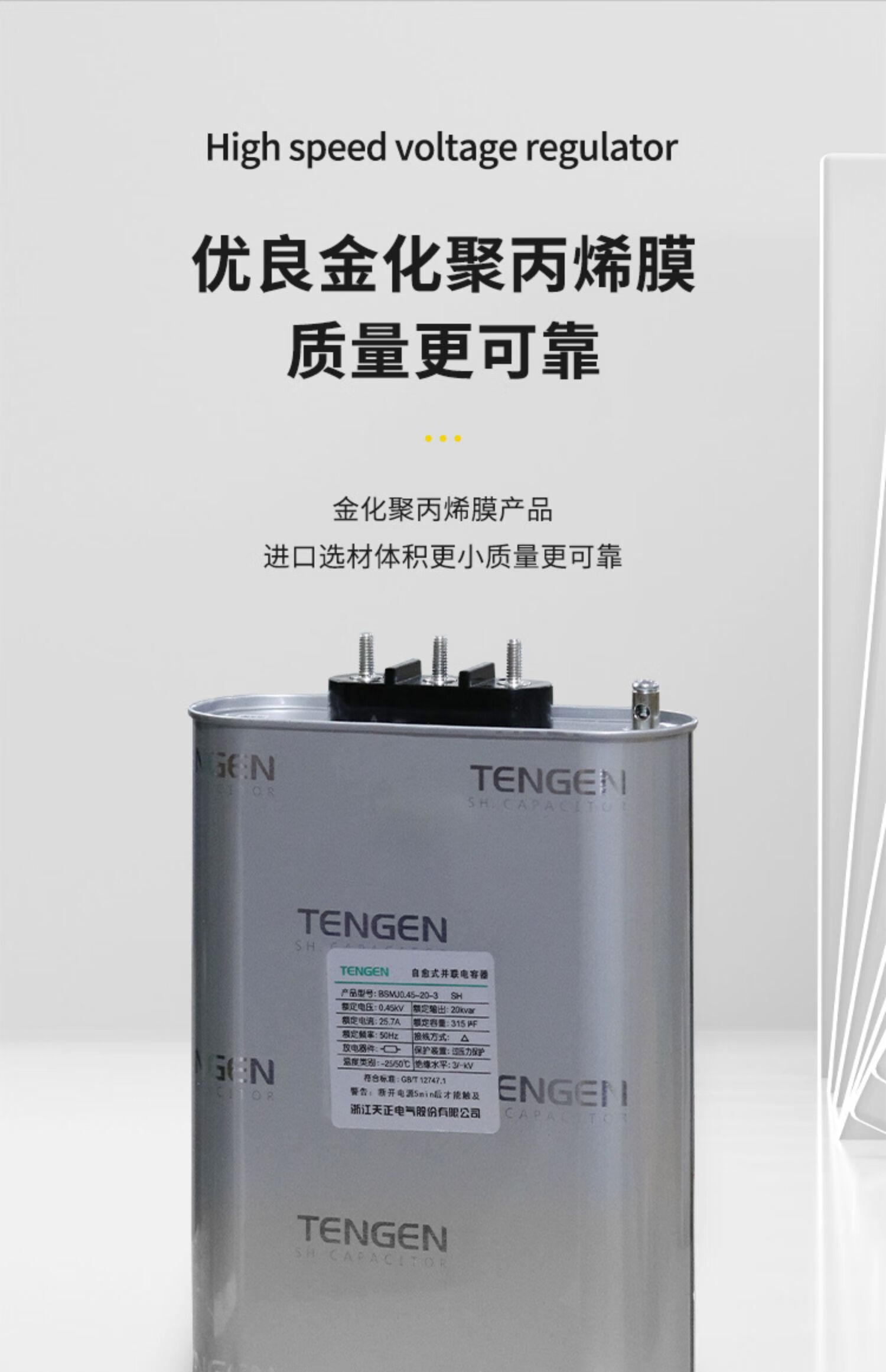 TENGEN Tianzheng BSMJ-0.45 three-phase self-healing low-voltage reactive power compensation parallel power capacitor 450V BSMJ0.45-20-3