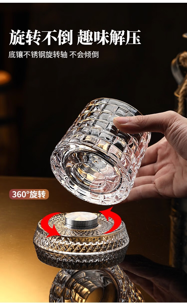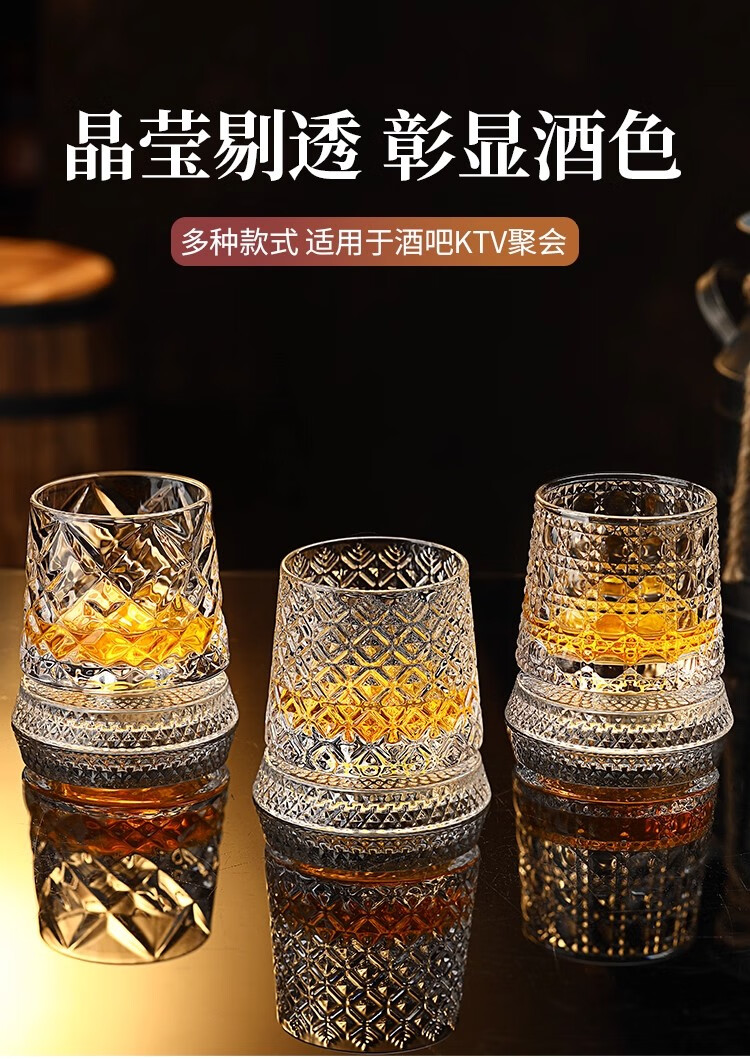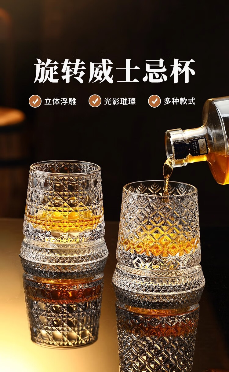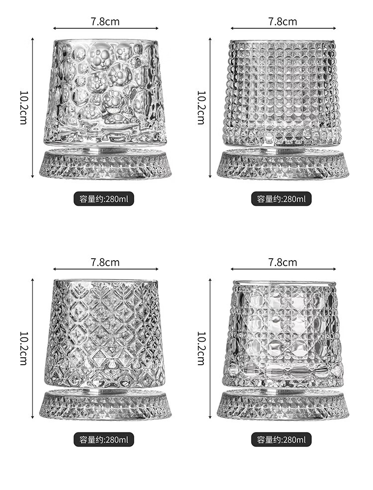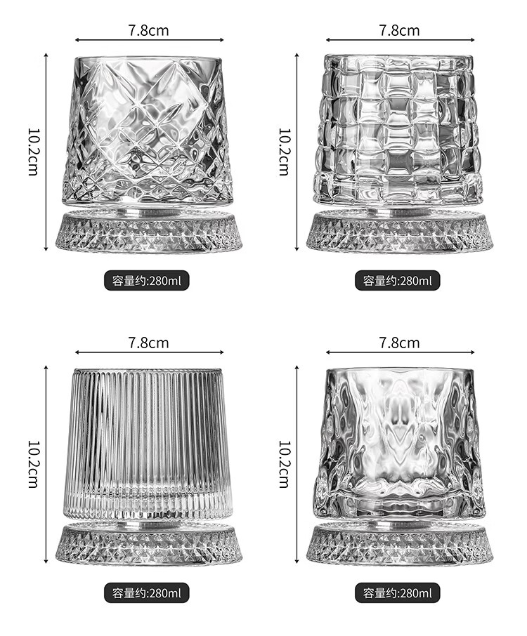 Weici rotating wine glass, crystal rotating whiskey glass, brandy beer glass, classical rotating glass, foreign wine glass, retro pattern, about 300ml
