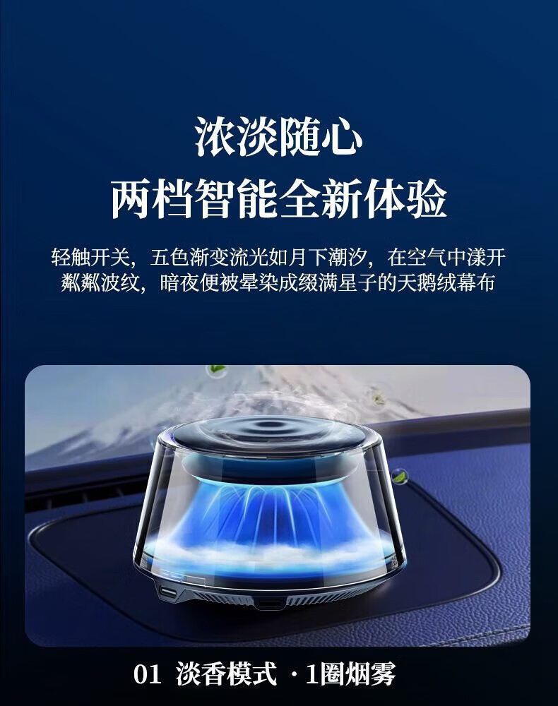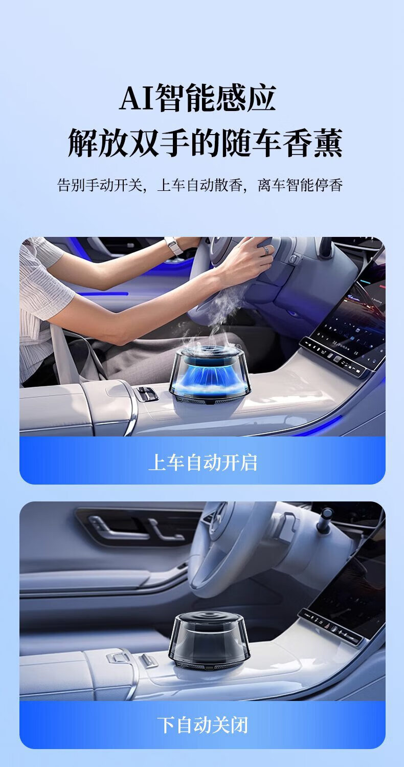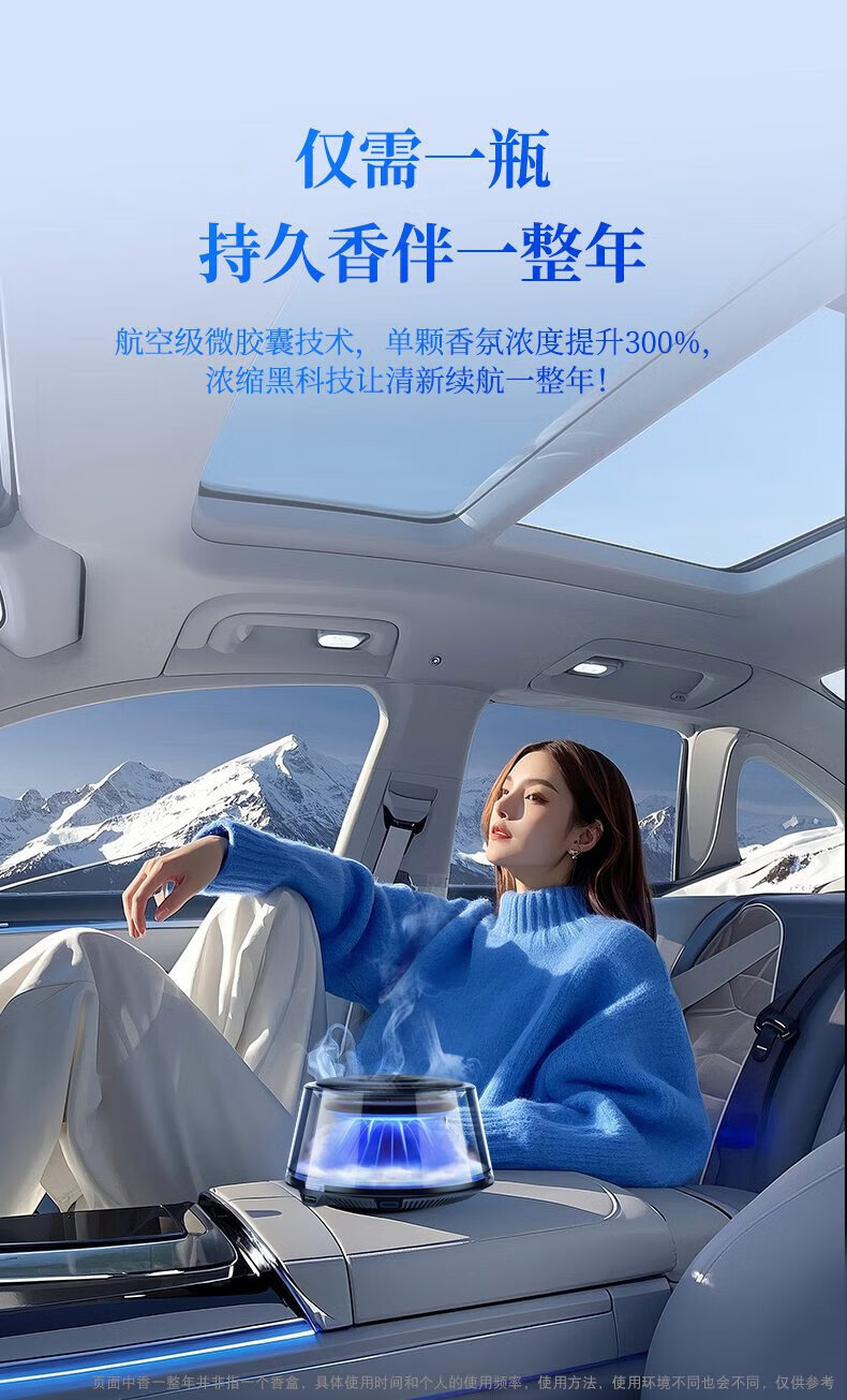 The same model as Tulas 2026 new fragrance long-lasting car perfume interior decoration fragrance machine fragrance top of the snow mountain car start and stop + second fragrance for the whole car + six-color breathing light 25ml 1 bottle