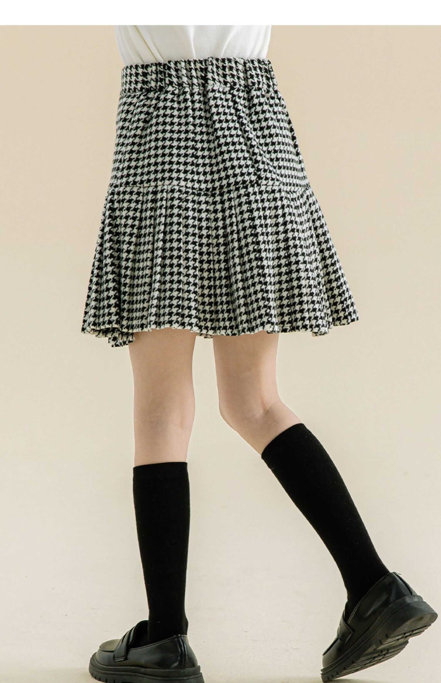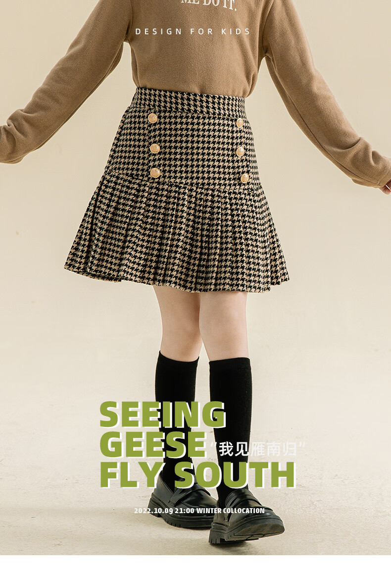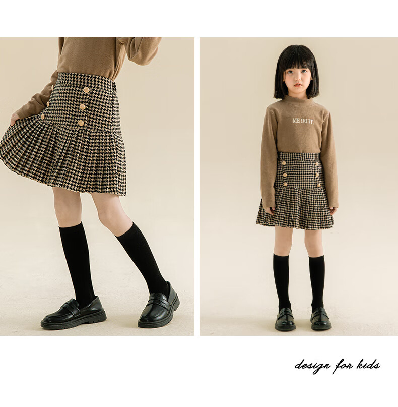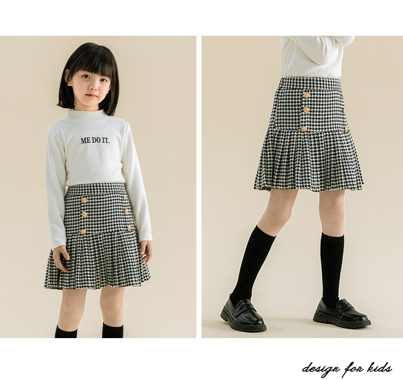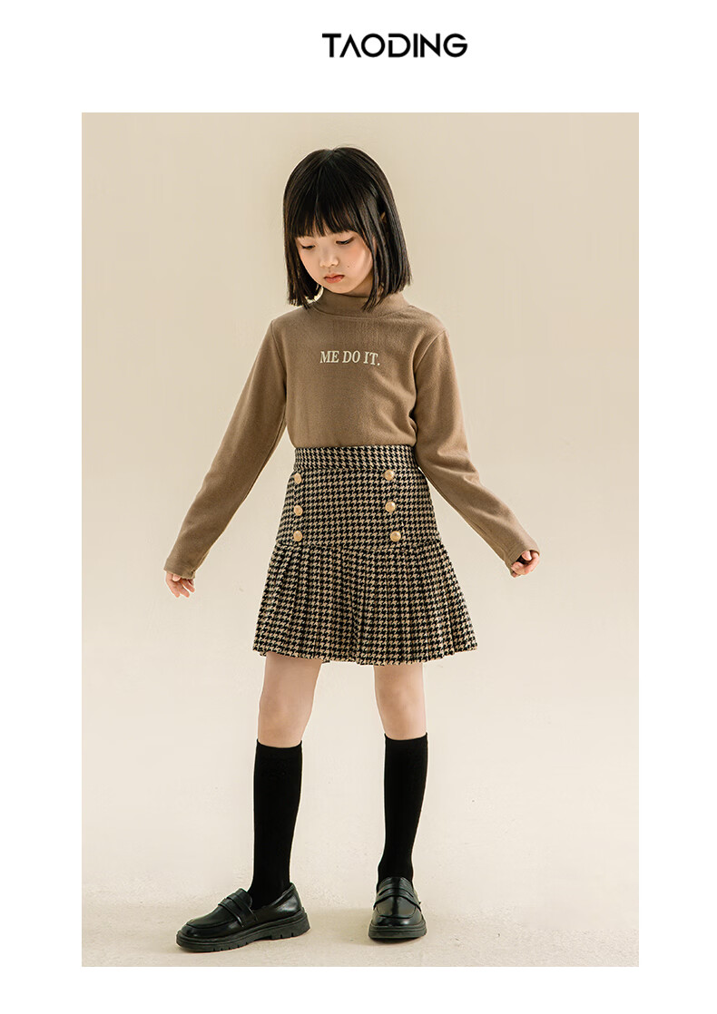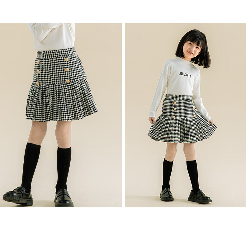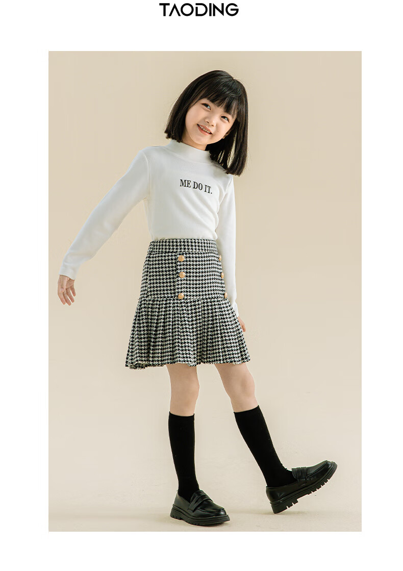 Taoding girls autumn and winter skirt Korean style plaid casual fashion pleated skirt for middle-aged and older children, versatile and trendy skirt, black and white 130