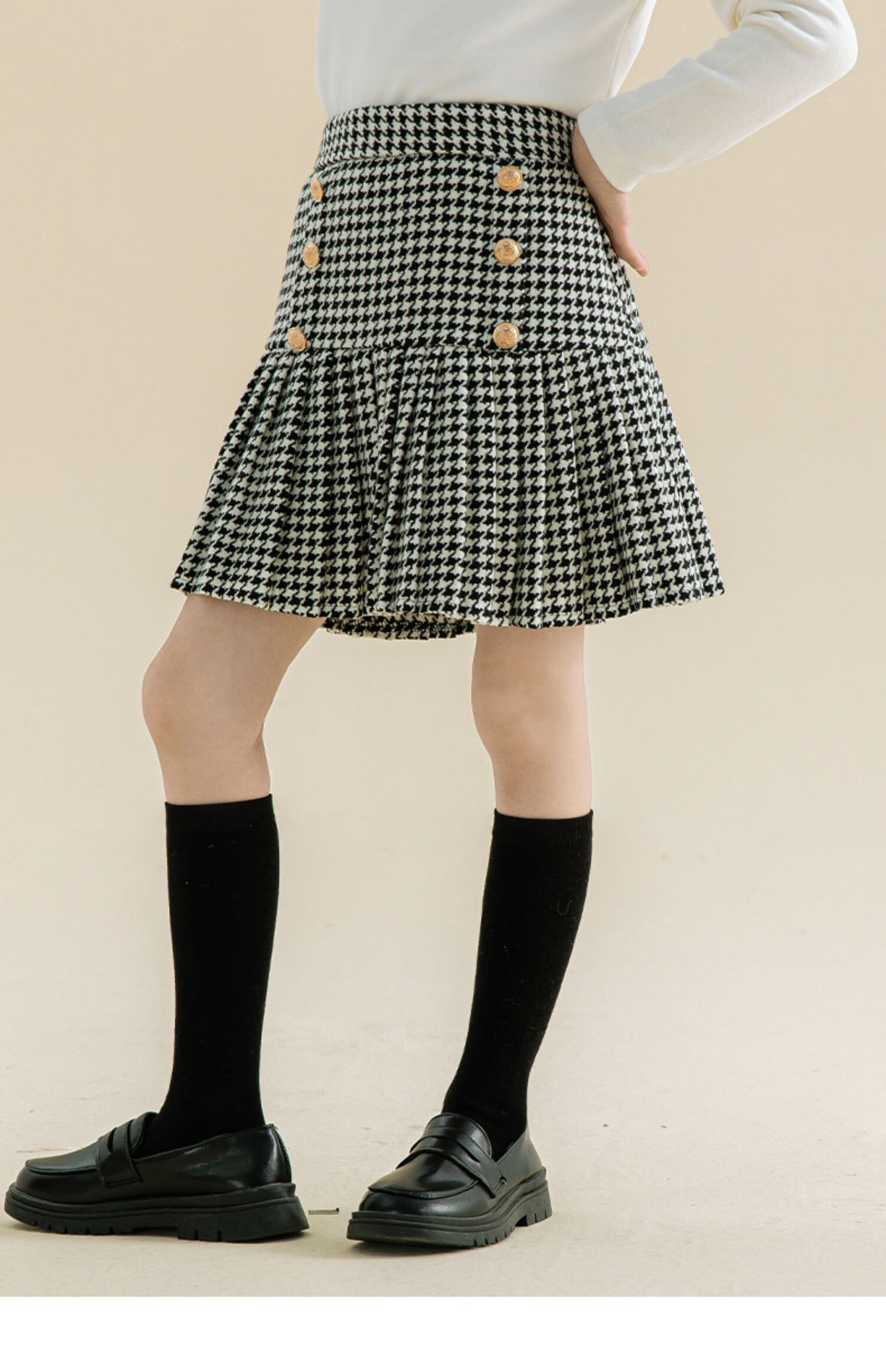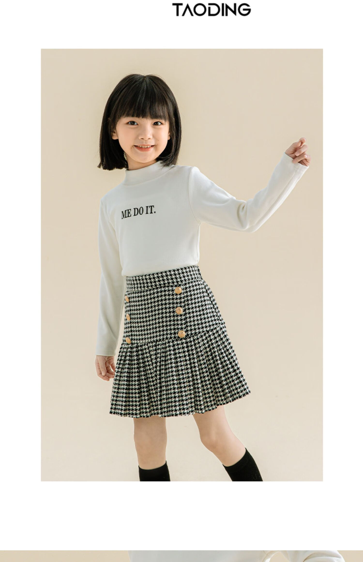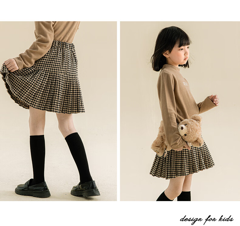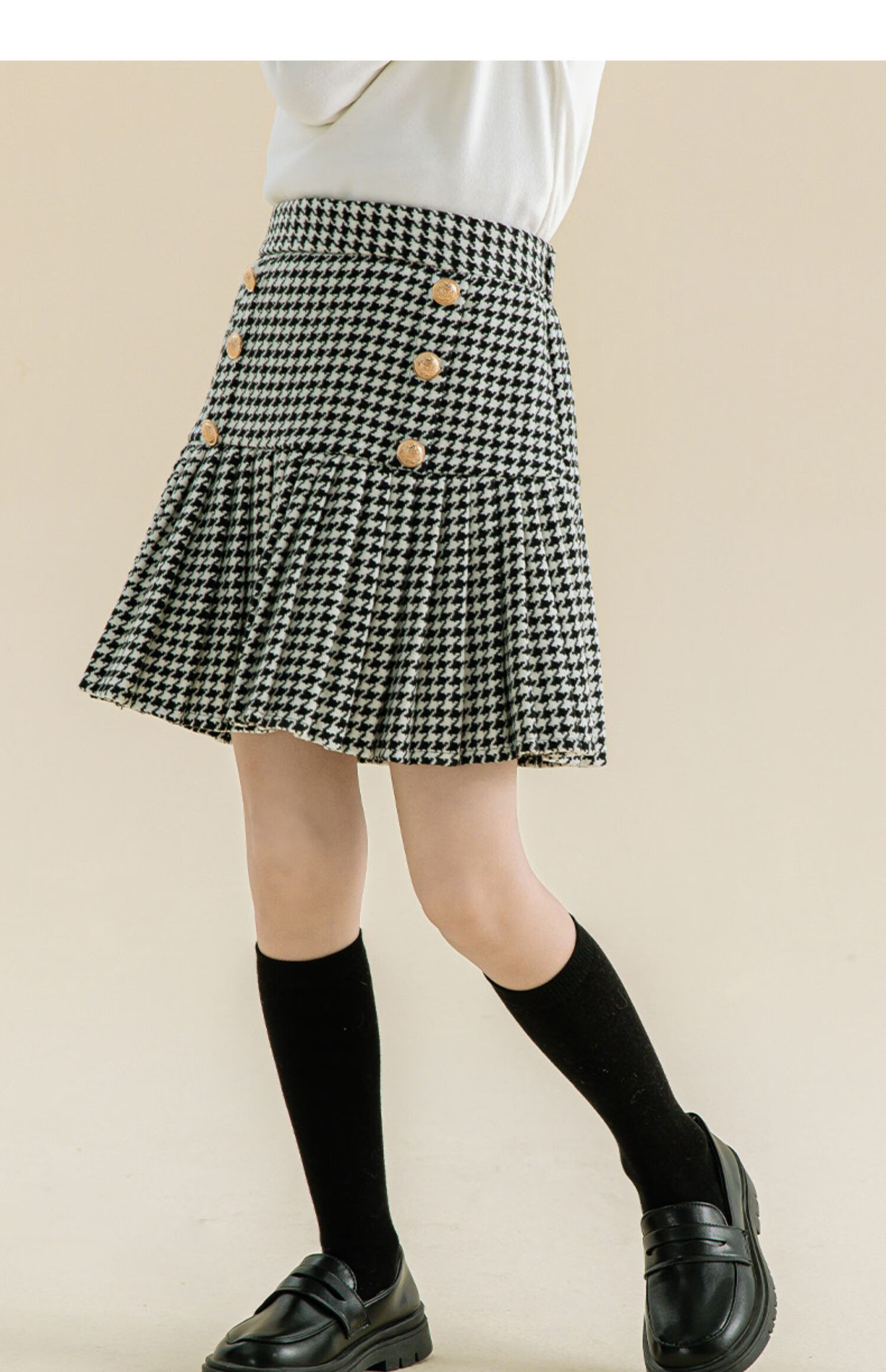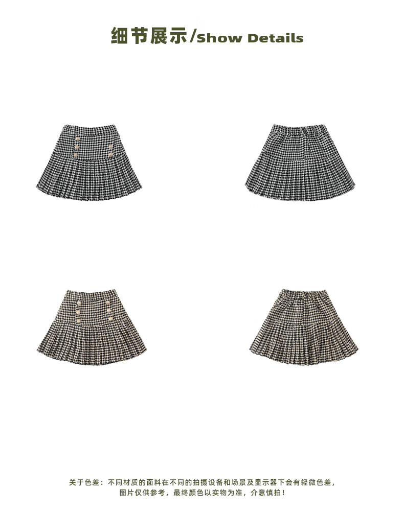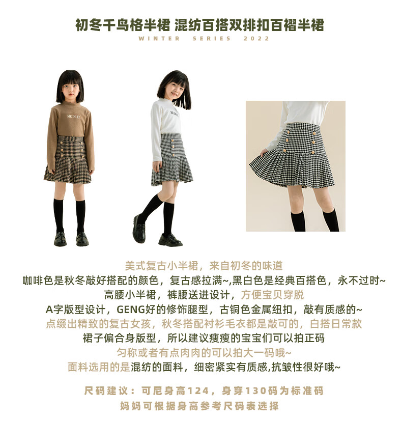 Taoding girls autumn and winter skirt Korean style plaid casual fashion pleated skirt for middle-aged and older children, versatile and trendy skirt, black and white 130
