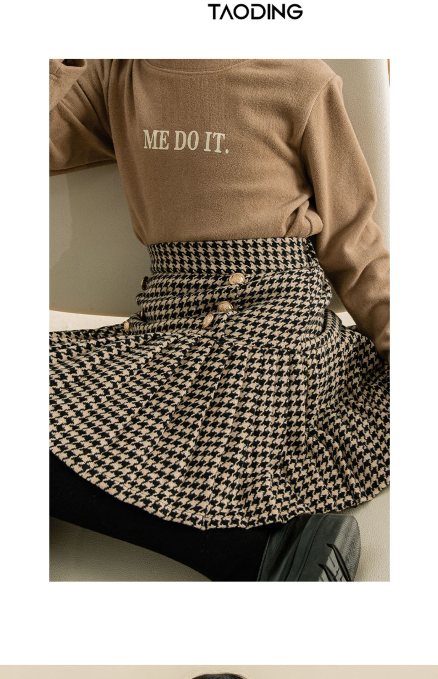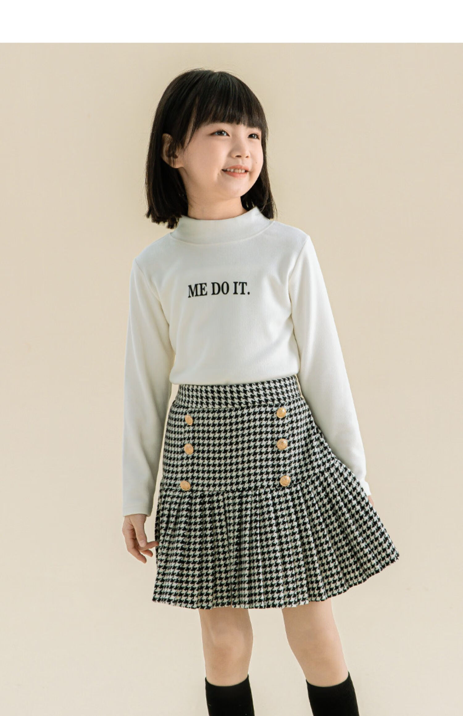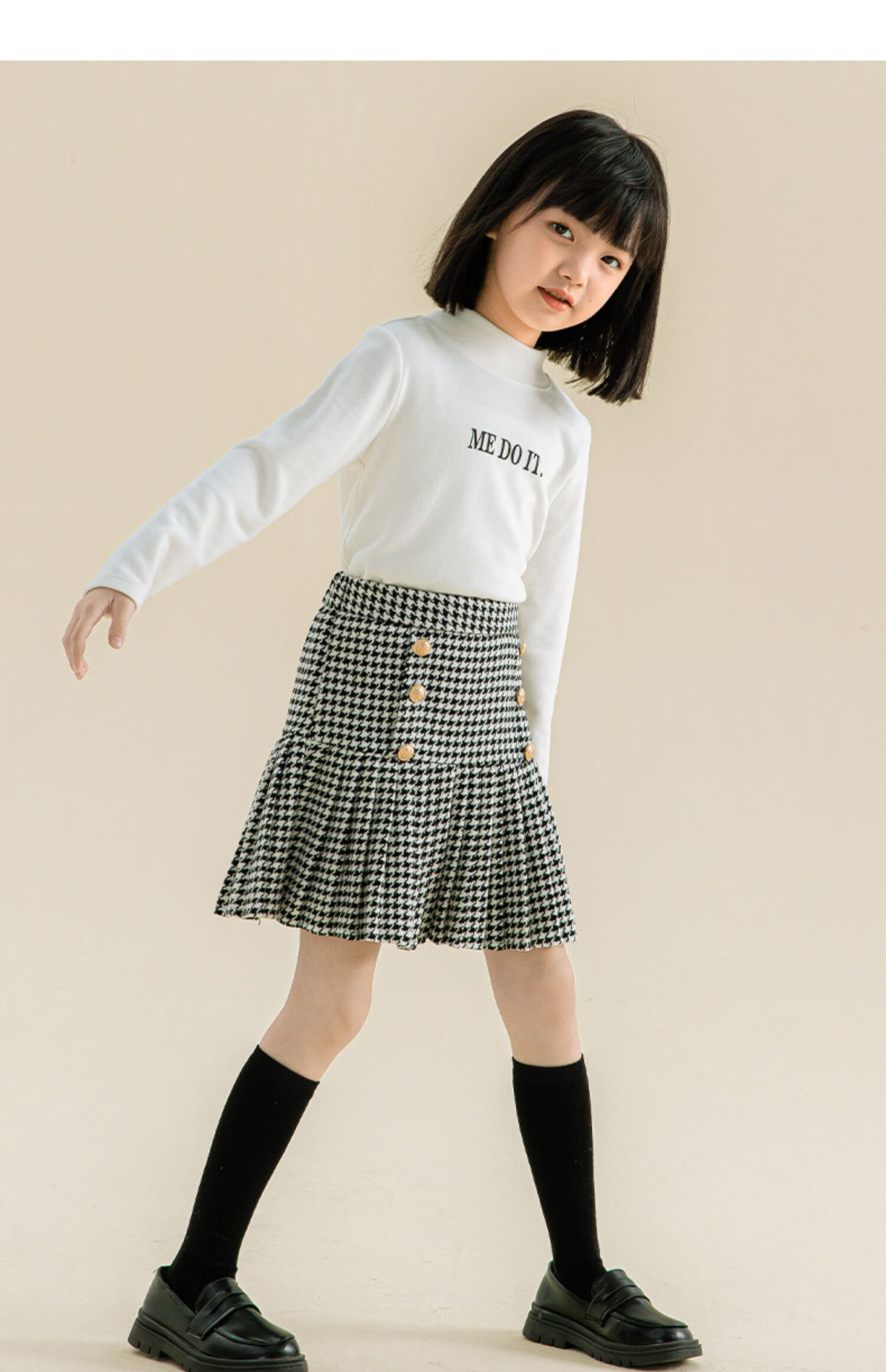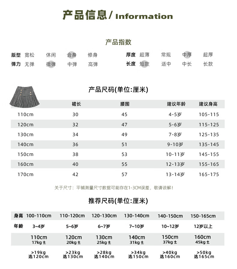 Taoding girls autumn and winter skirt Korean style plaid casual fashion pleated skirt for middle-aged and older children, versatile and trendy skirt, black and white 130