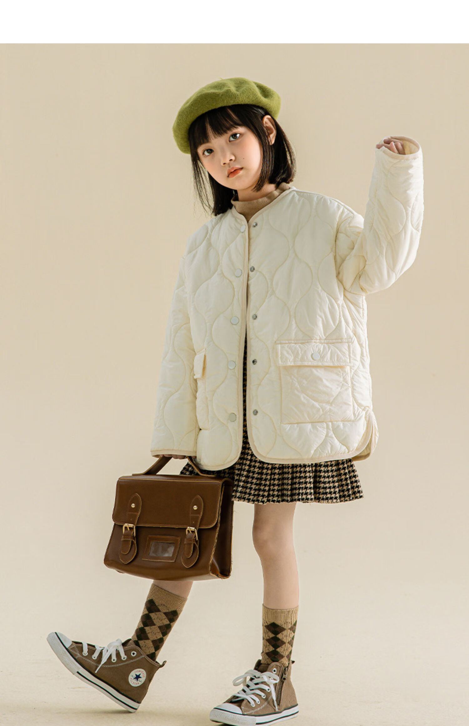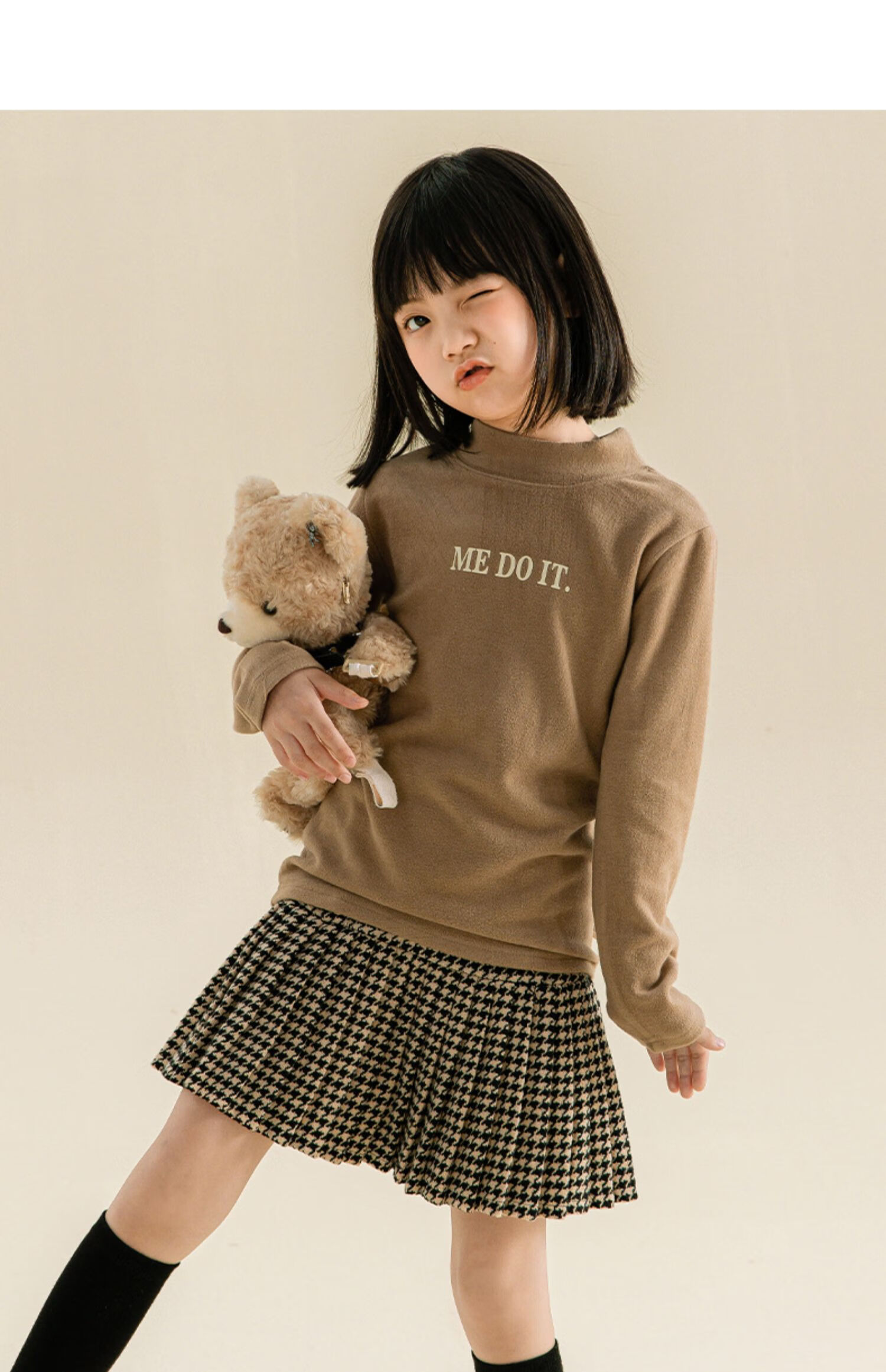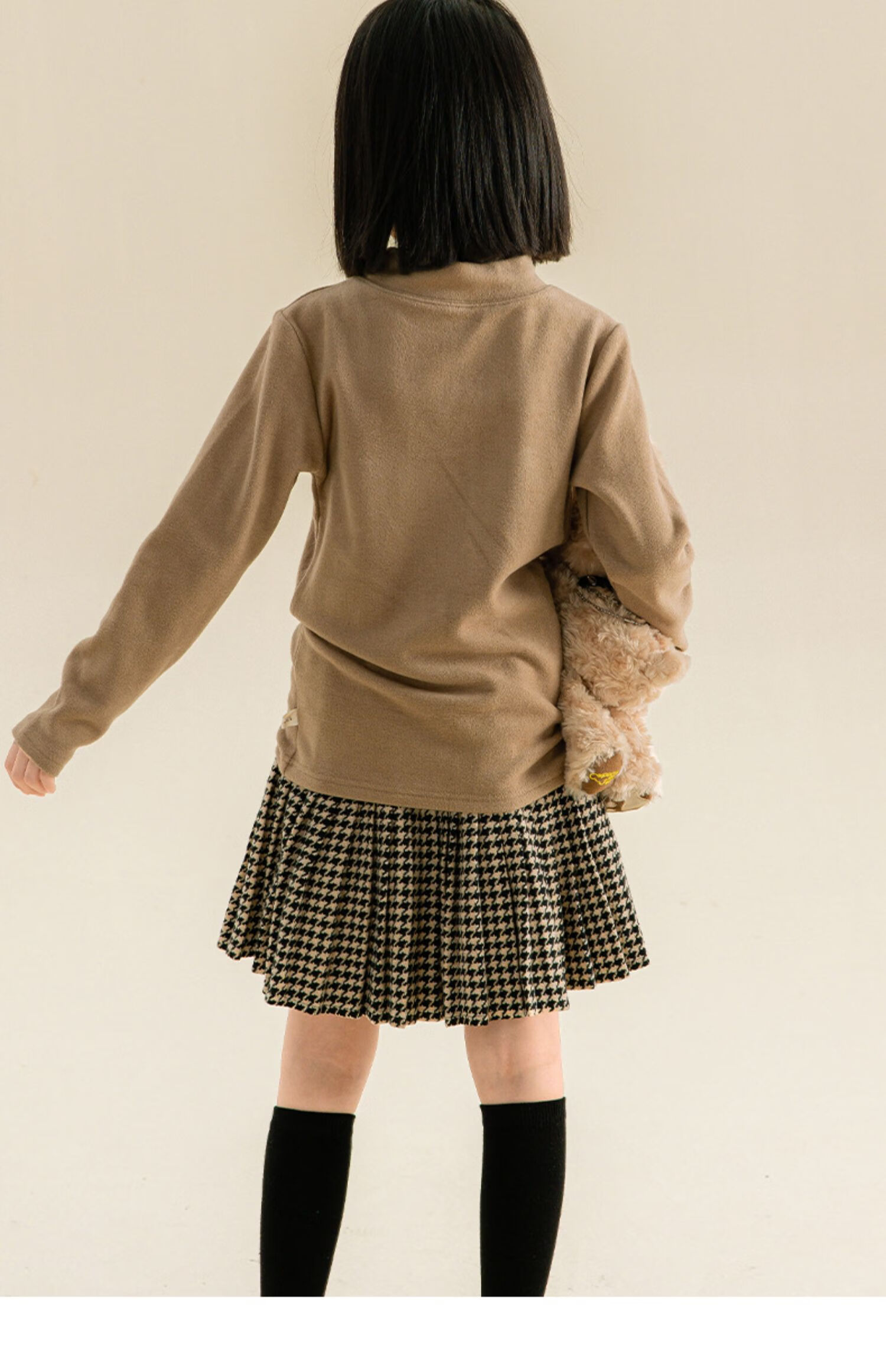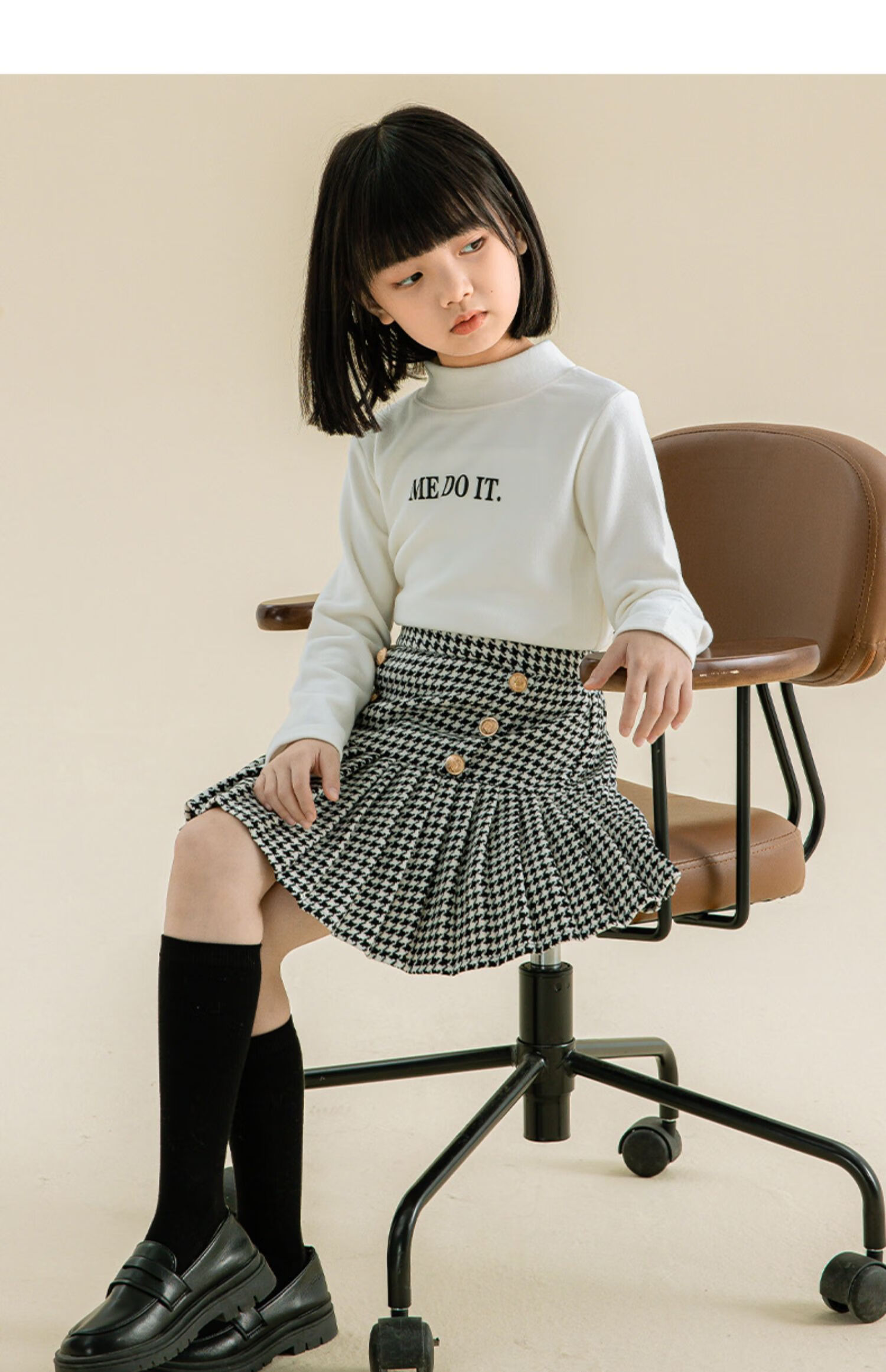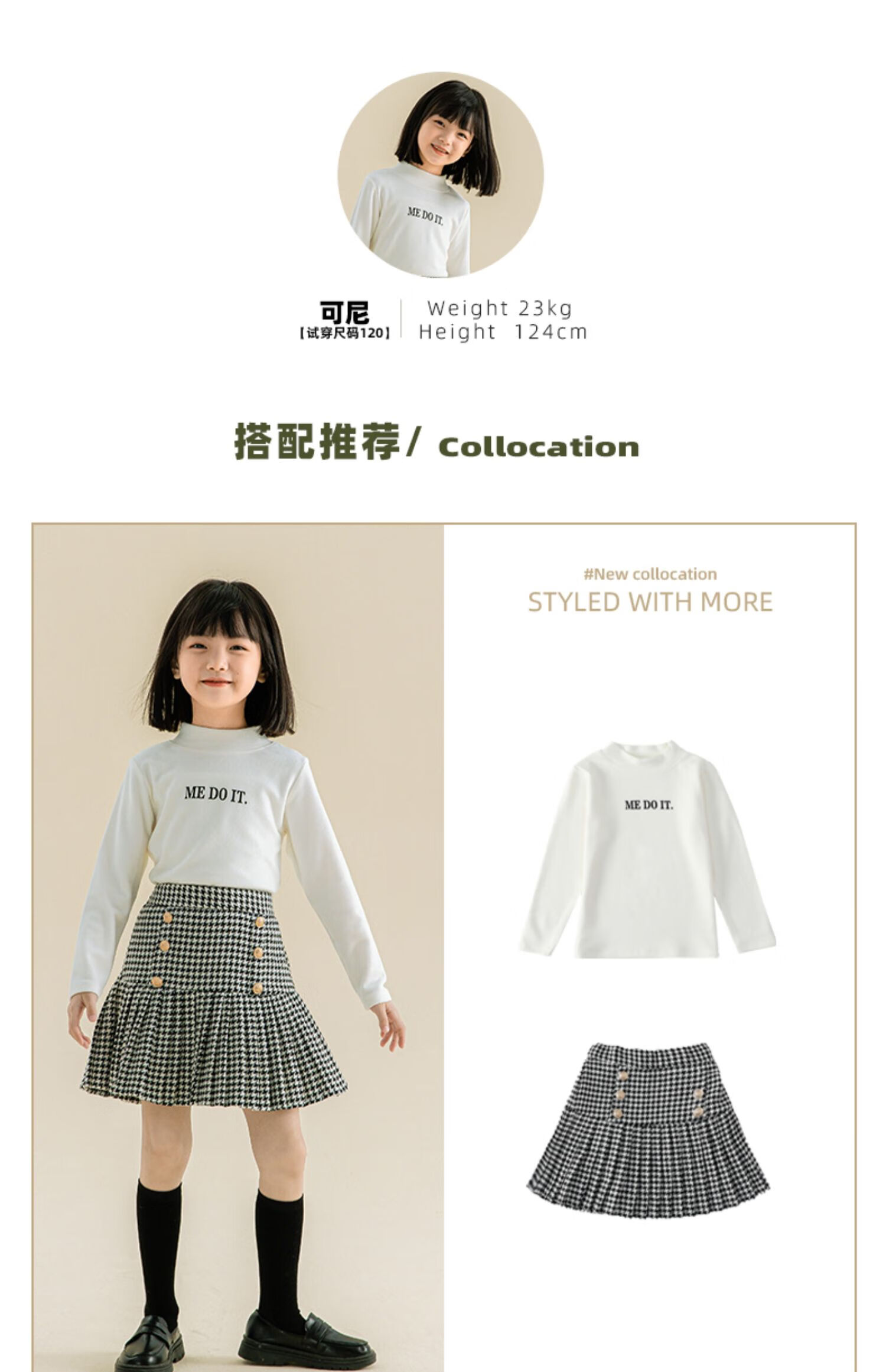 Taoding girls autumn and winter skirt Korean style plaid casual fashion pleated skirt for middle-aged and older children, versatile and trendy skirt, black and white 130