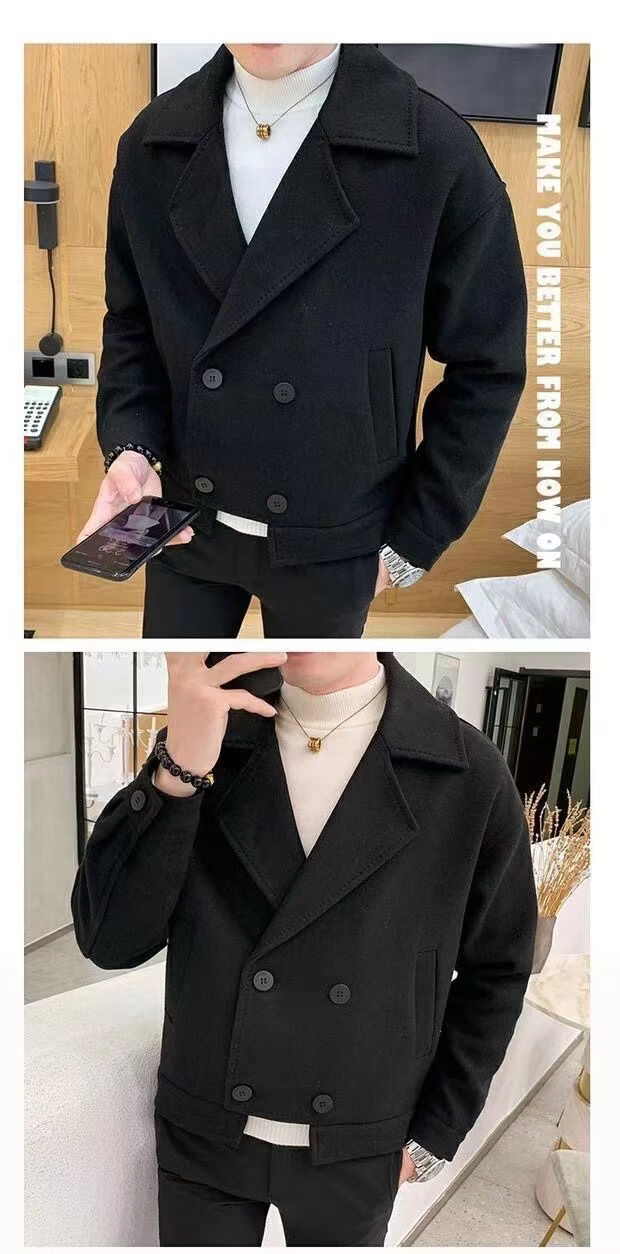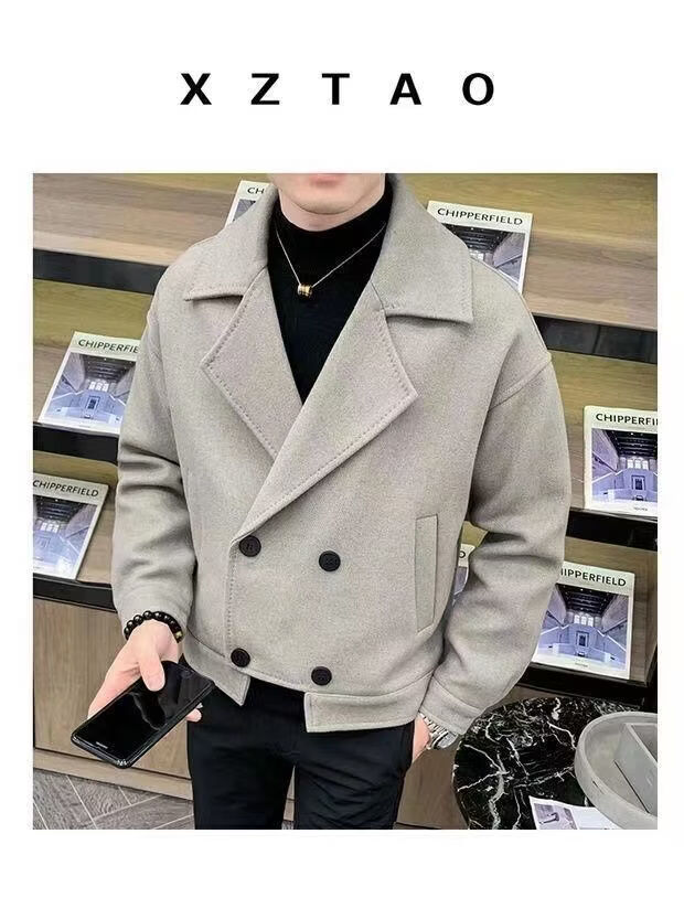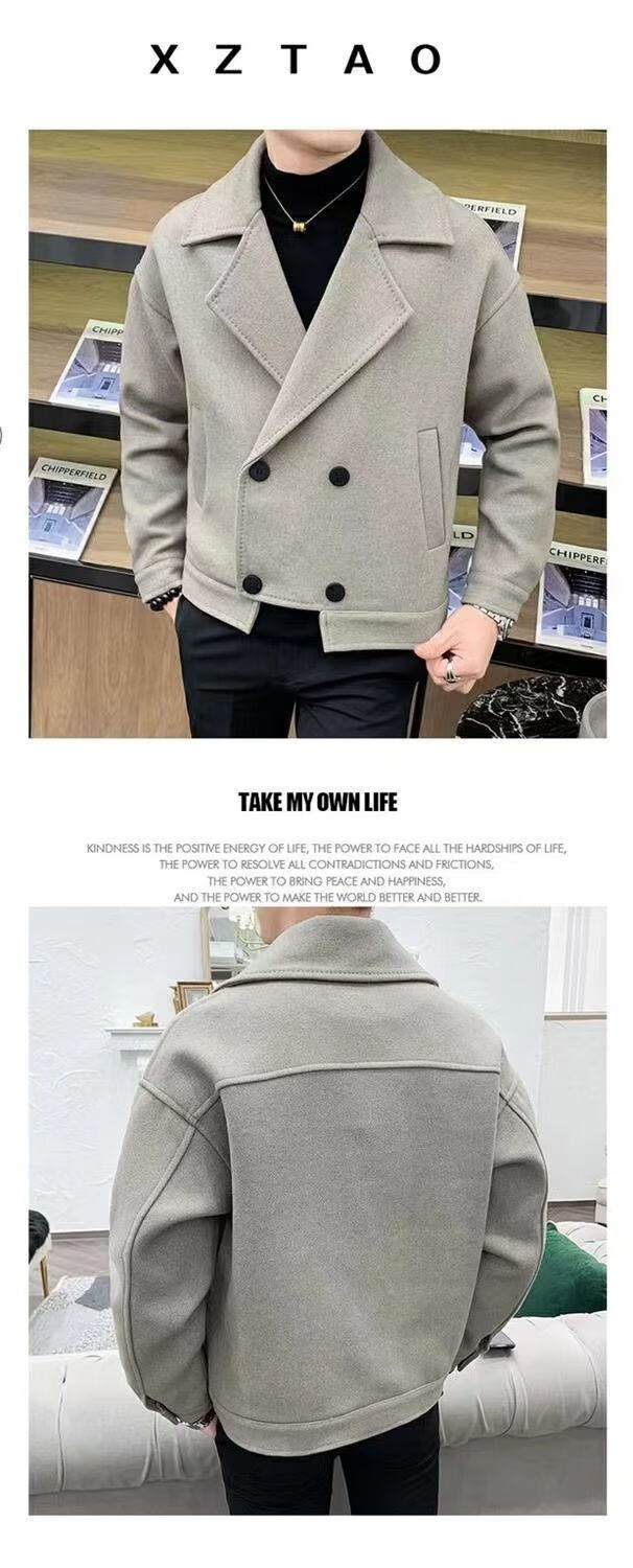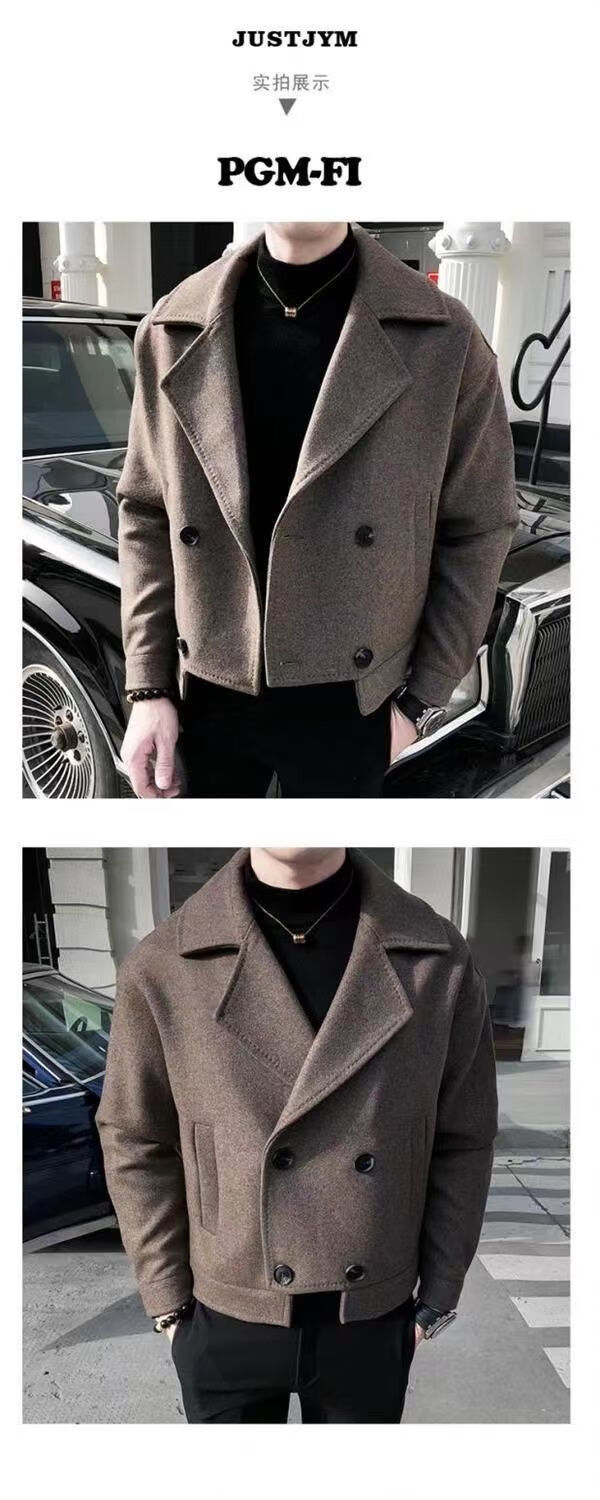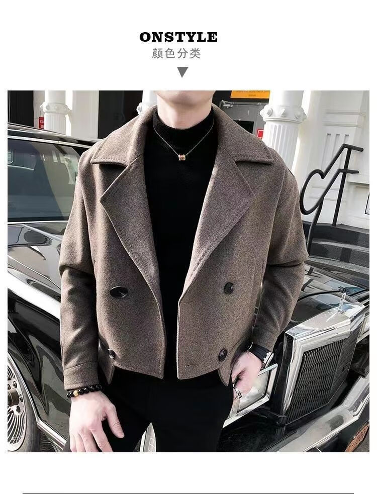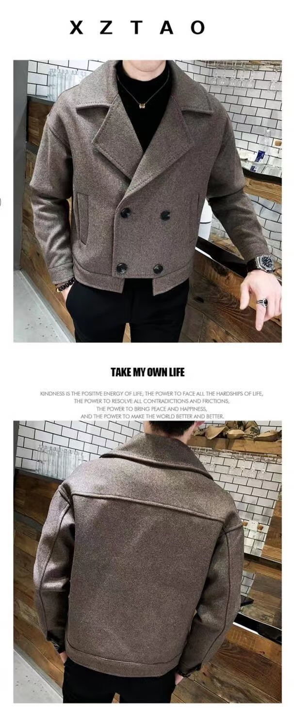 Playboy (PLAYBOY) Lapel Windbreaker Men's 2025 New Autumn and Winter Woolen Coat Men's Trendy Versatile Handsome Woolen Coat Coat Brown XL 130-140Jin Jin equals 0.5 kg