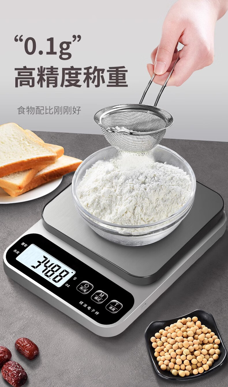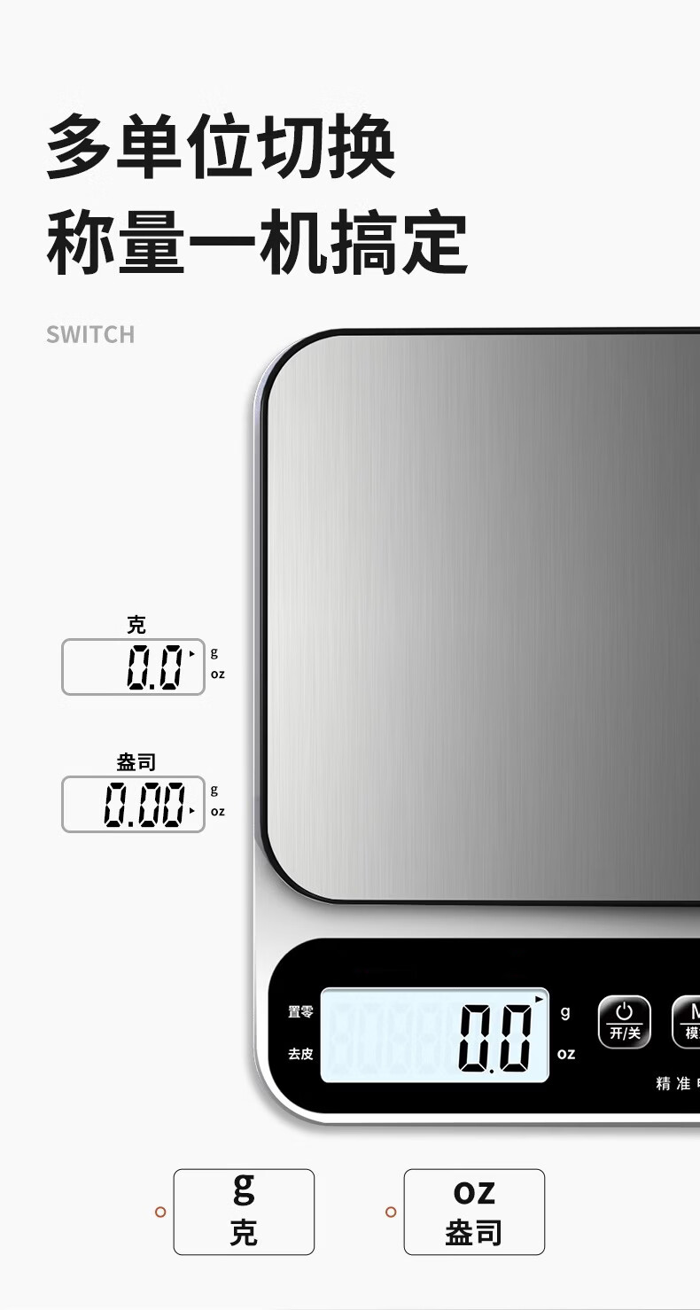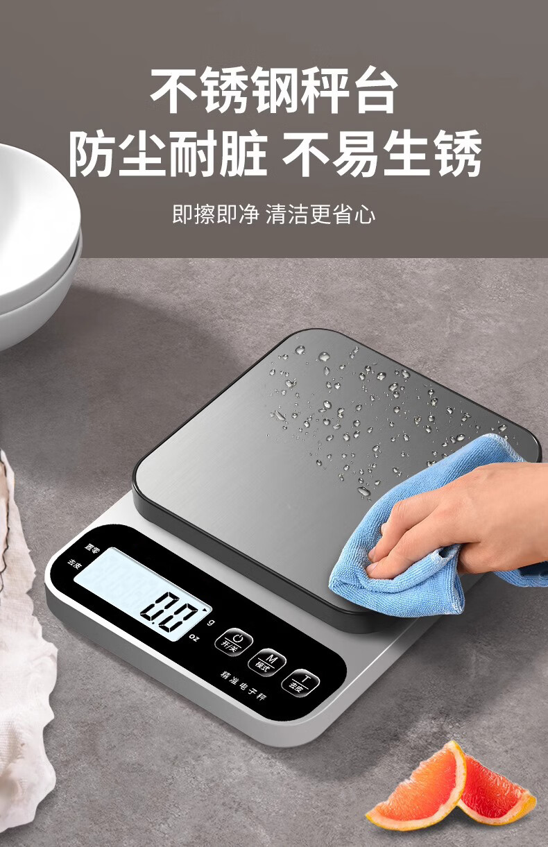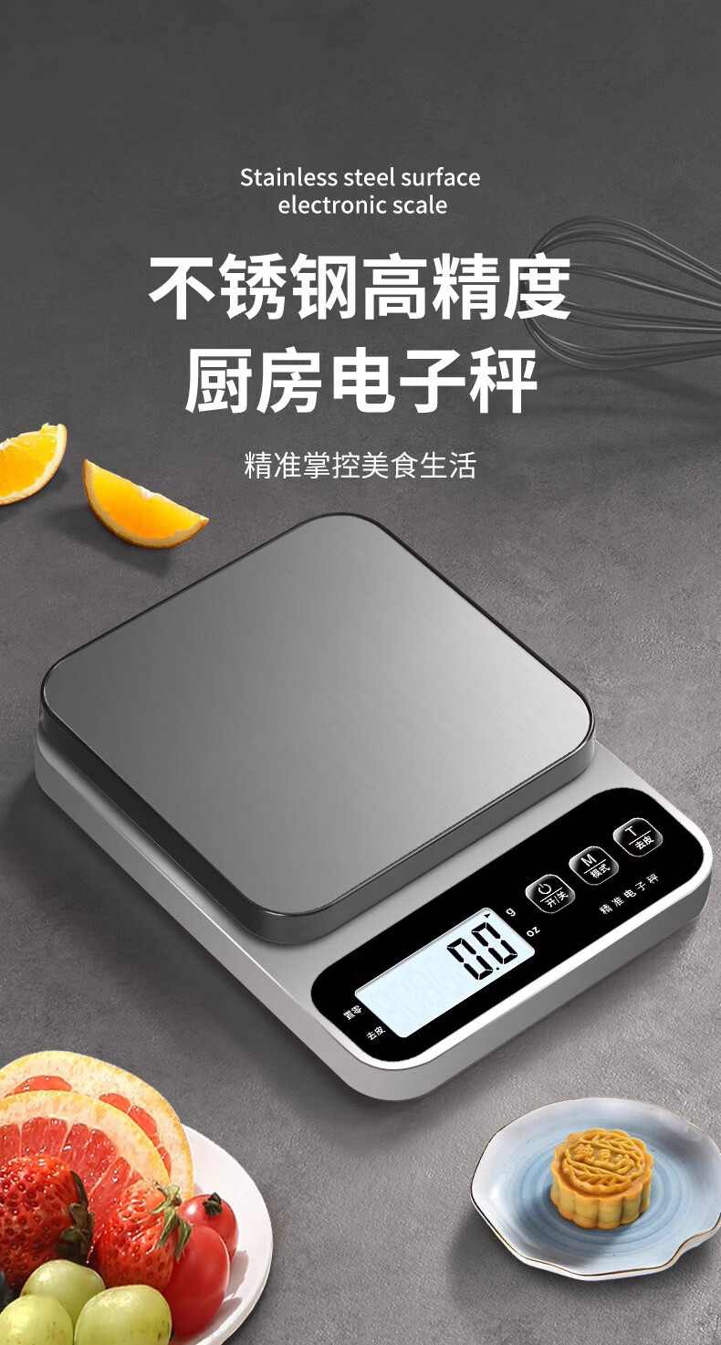 Wood flow printing MLUYN German craft small electronic scale Gram scale electronic scale high-precision kitchen scale baking precision household luxury upgraded model stainless steel three-use model (10kg-0.1g)