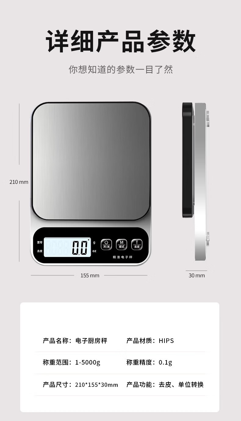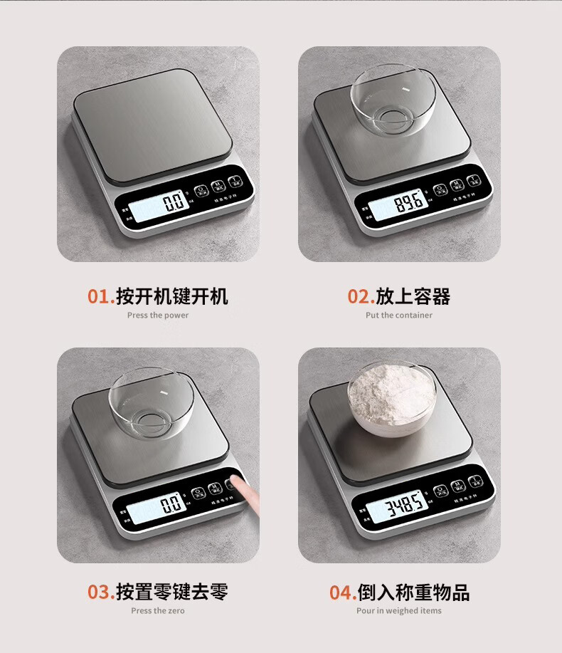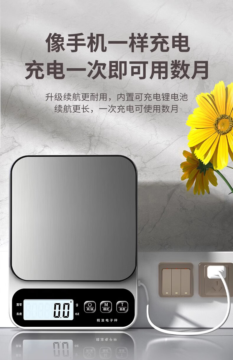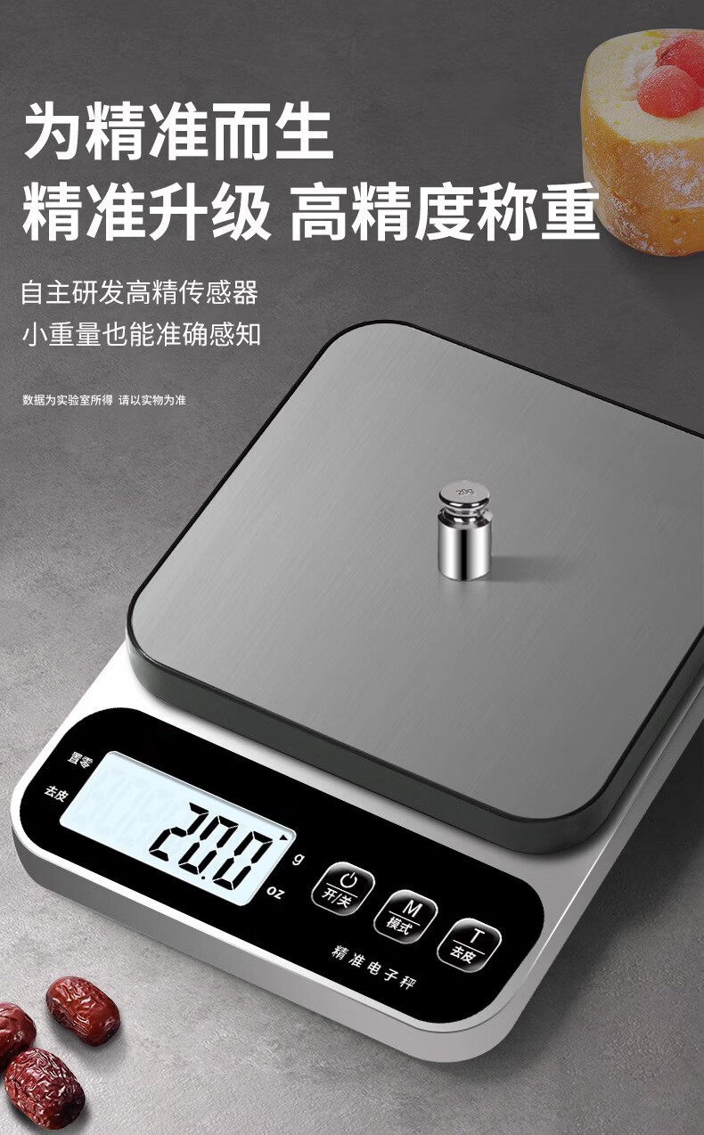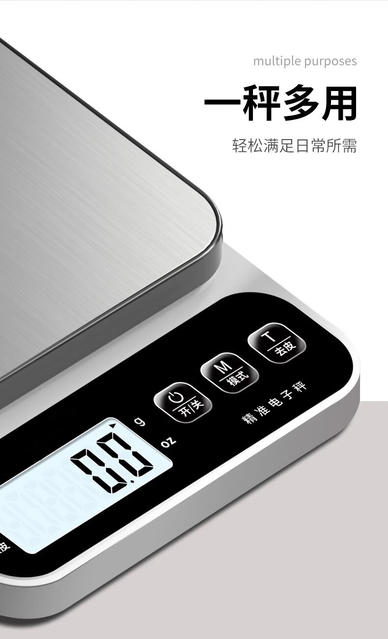 Wood flow printing MLUYN German craft small electronic scale Gram scale electronic scale high-precision kitchen scale baking precision household luxury upgraded model stainless steel three-use model (10kg-0.1g)