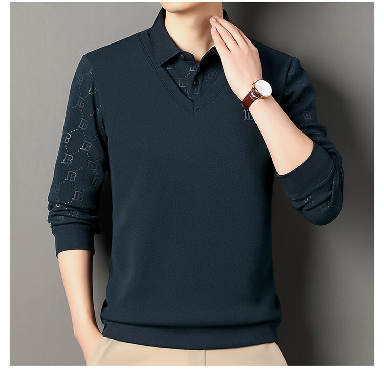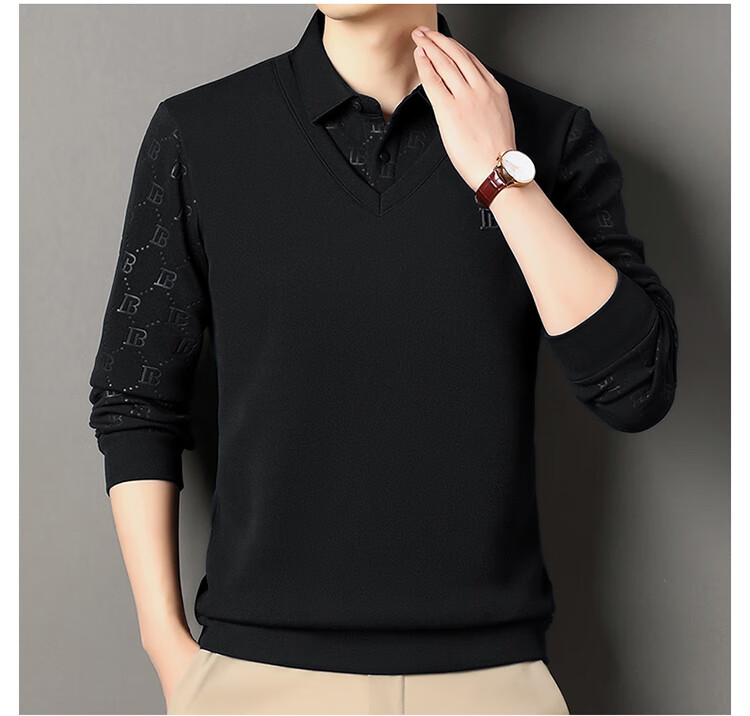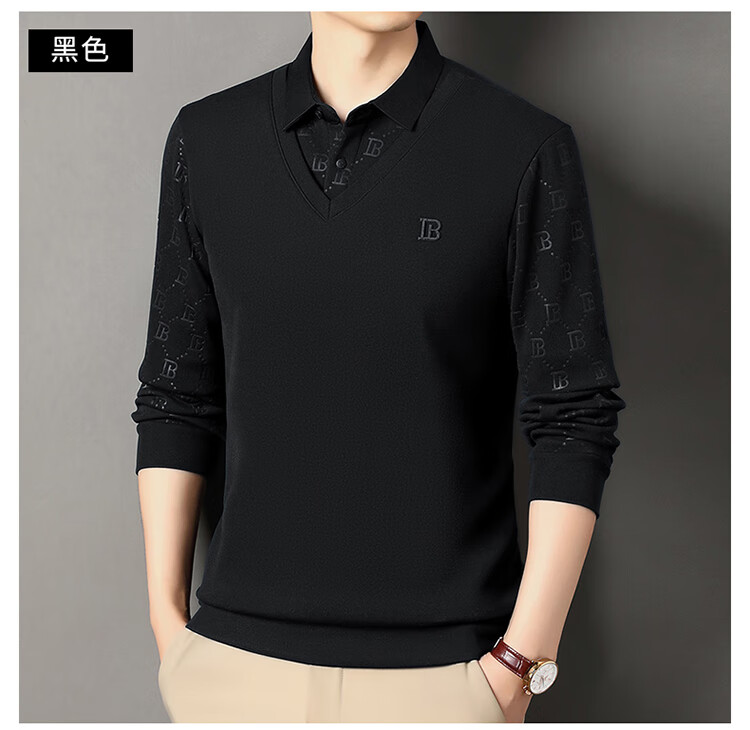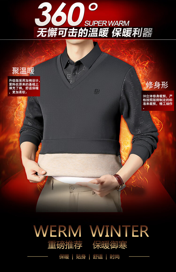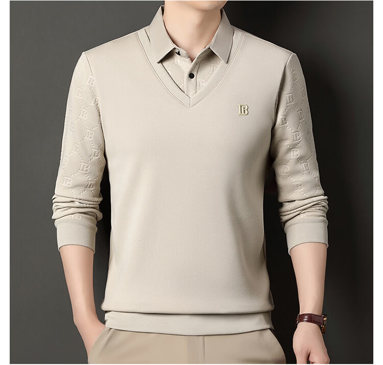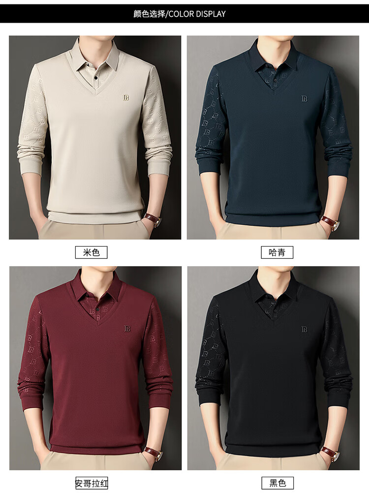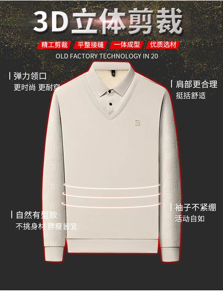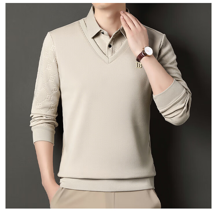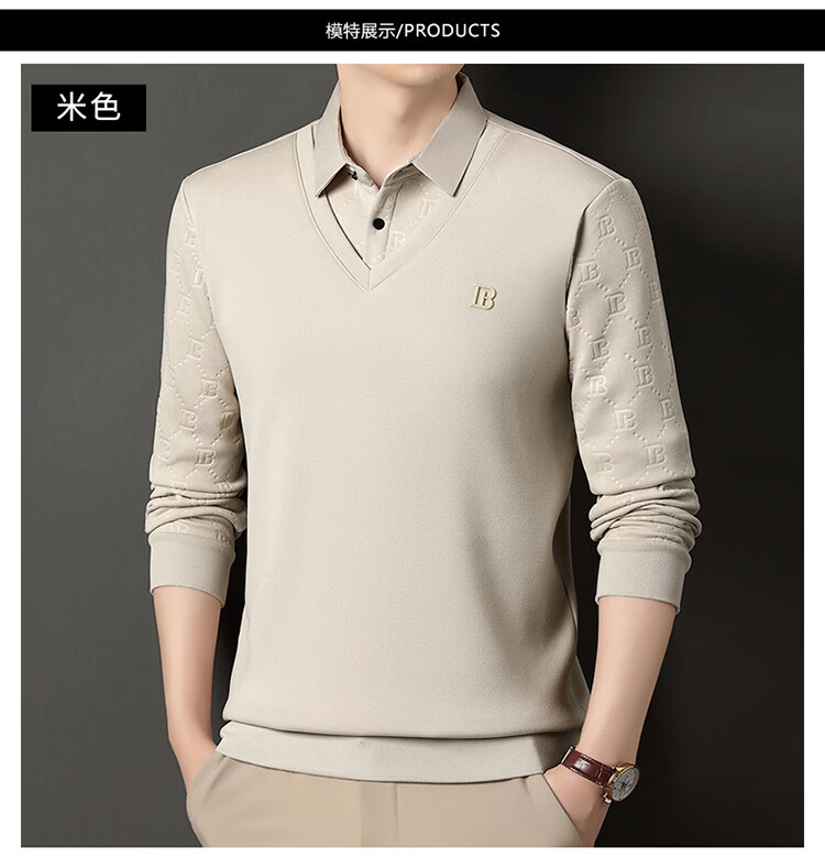 KBXNG Jinba men's long-sleeved wool sweater plus velvet warm casual business versatile lapel fake two pieces containing mulberry silk off-white M 165105 recommended 100-120 Jin Jin equals 0.5 kg to wear