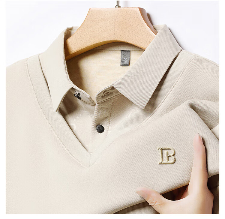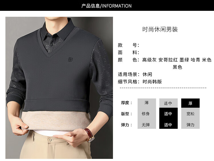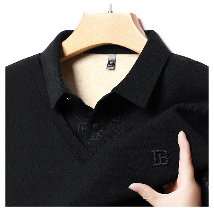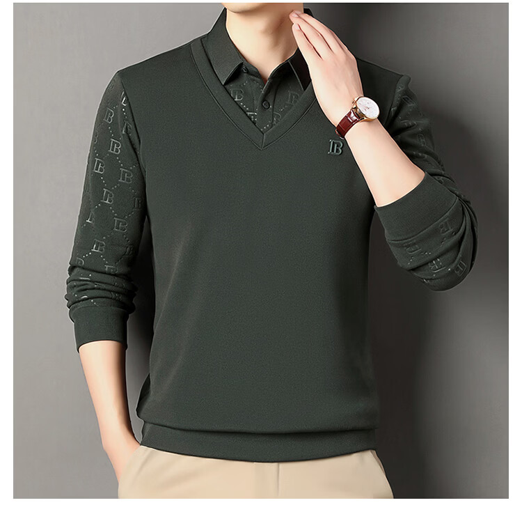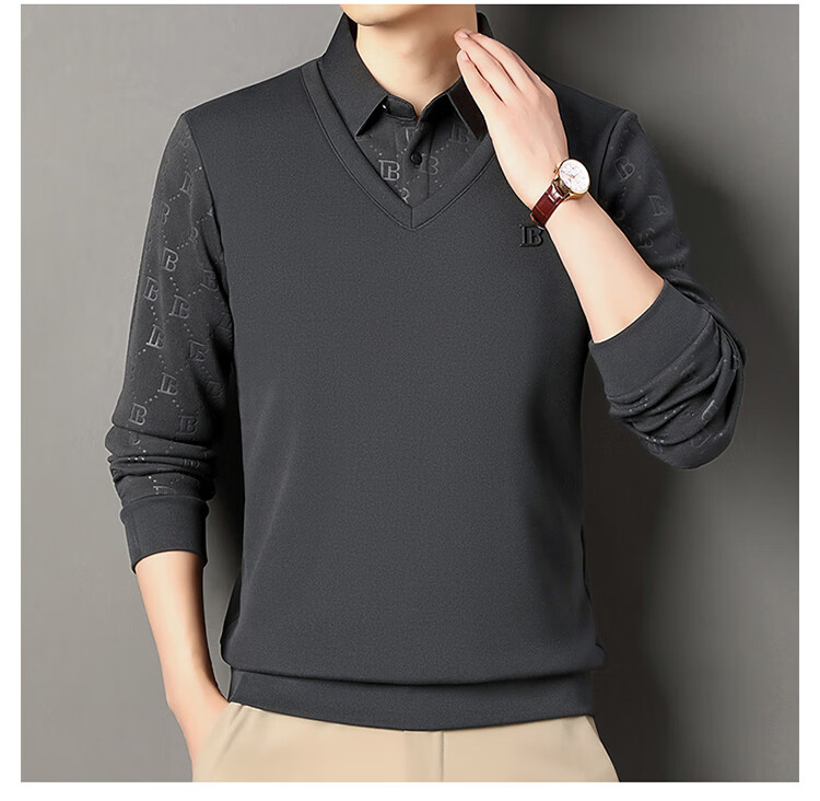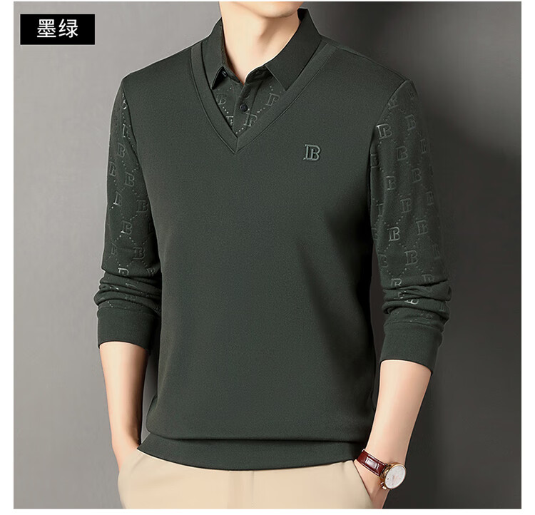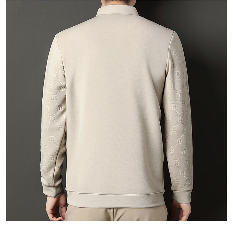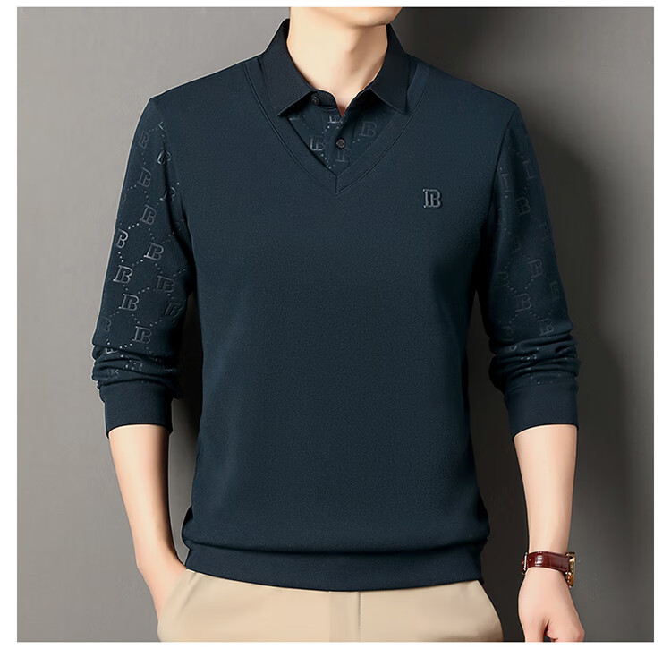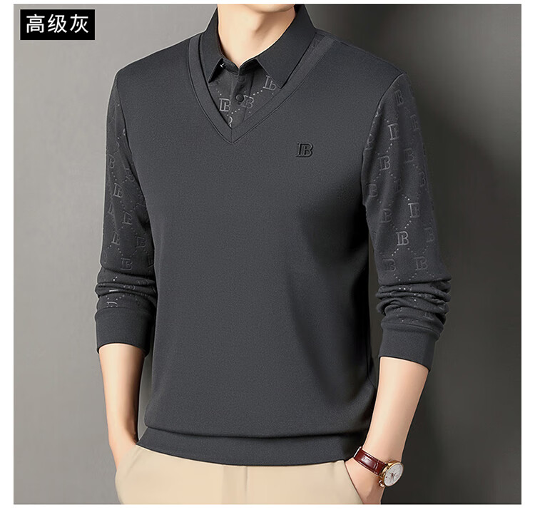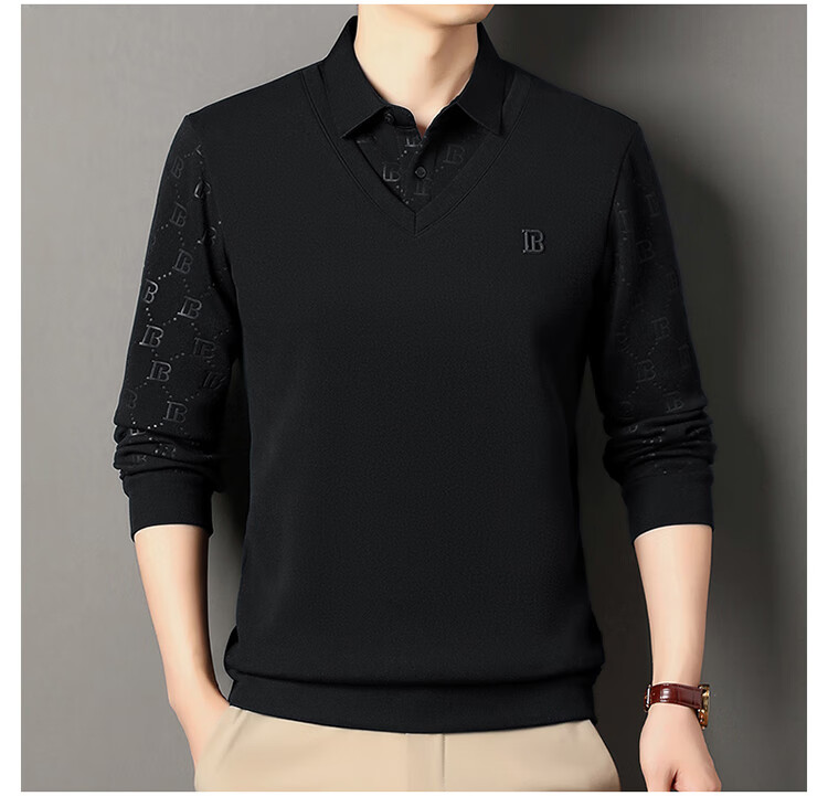 KBXNG Jinba men's long-sleeved wool sweater plus velvet warm casual business versatile lapel fake two pieces containing mulberry silk off-white M 165105 recommended 100-120 Jin Jin equals 0.5 kg to wear