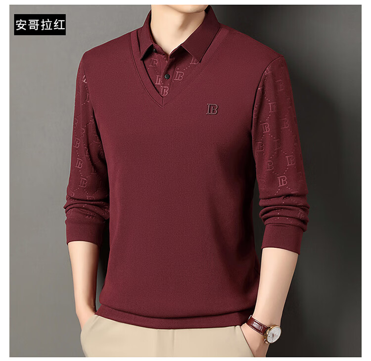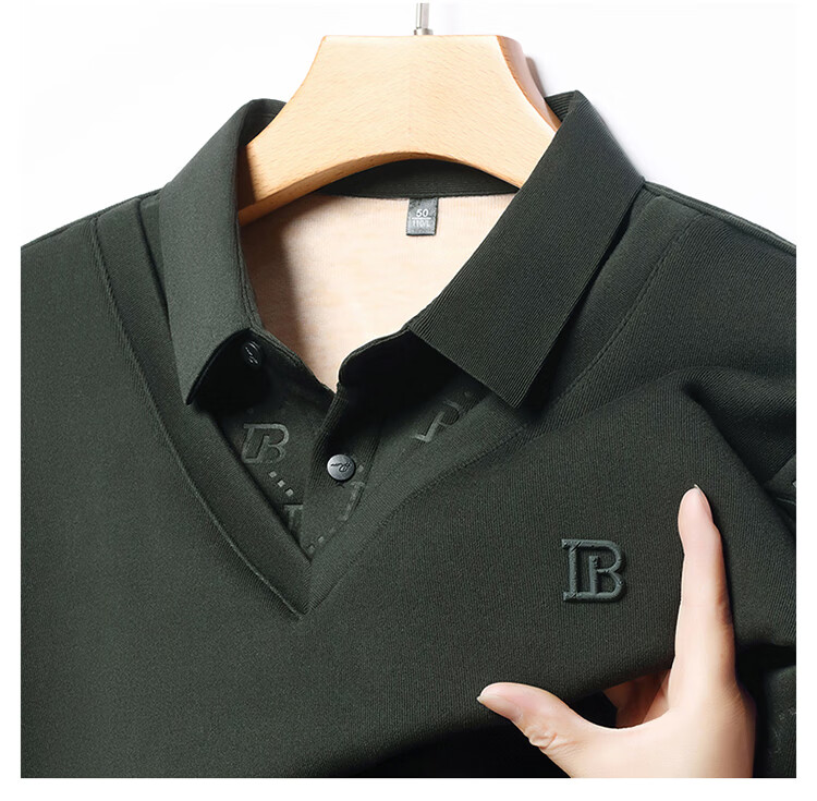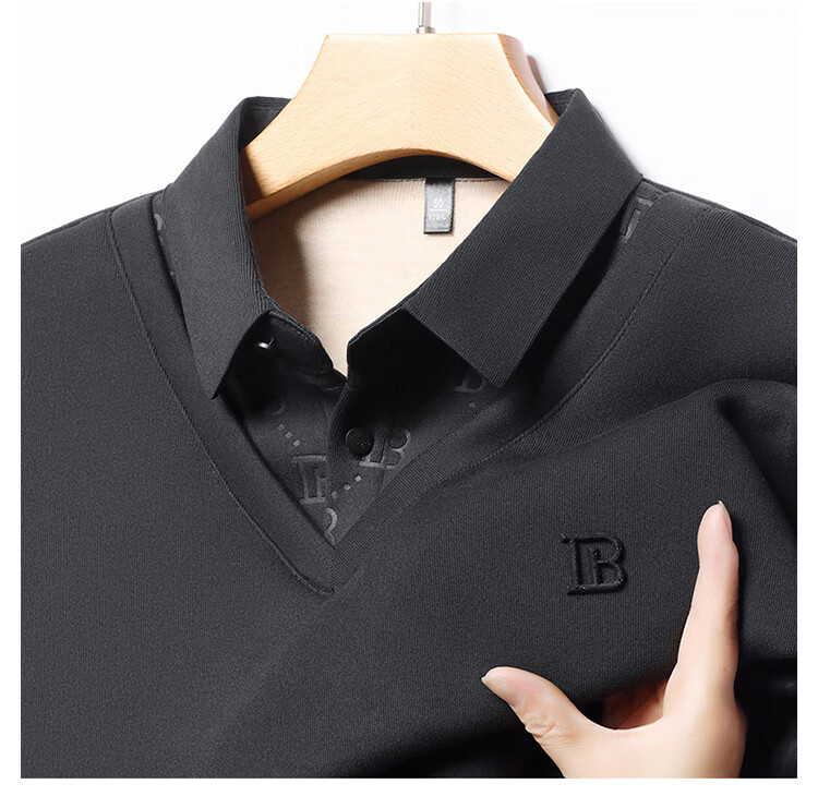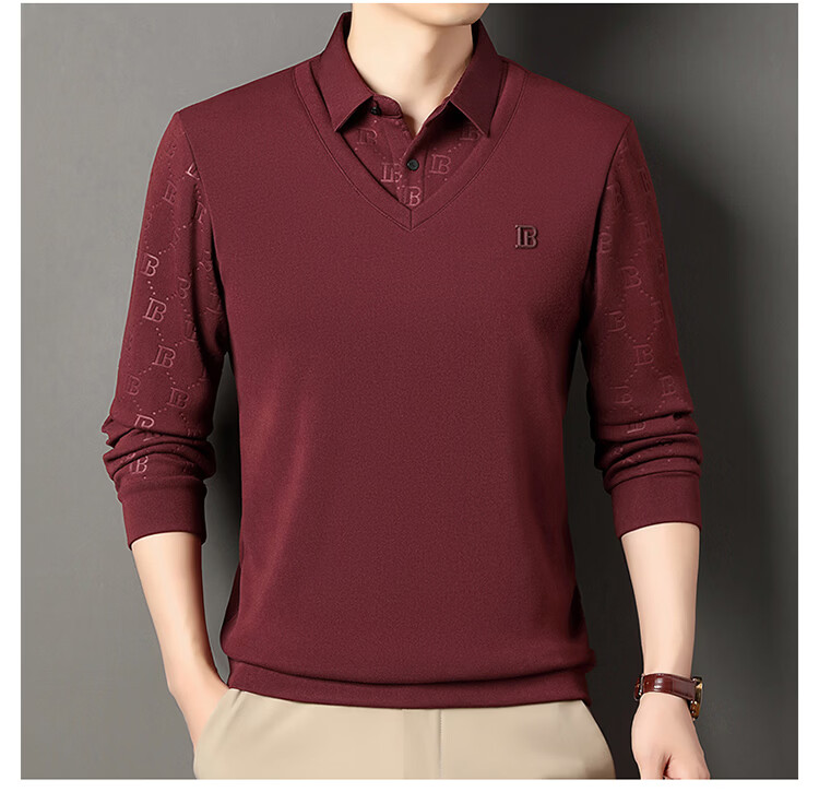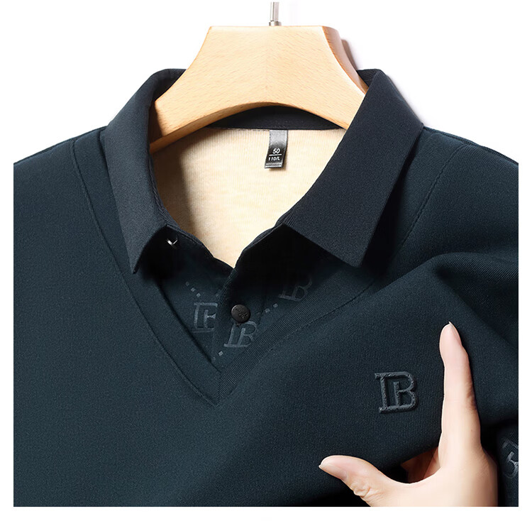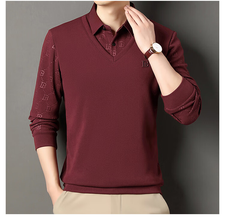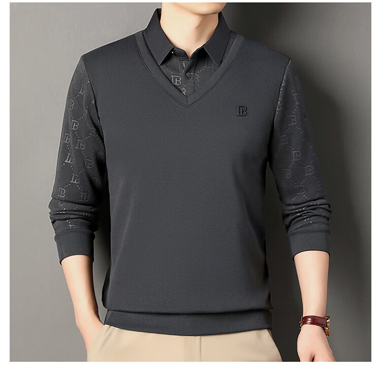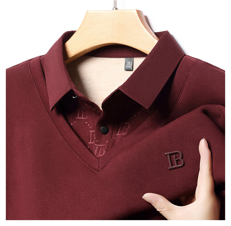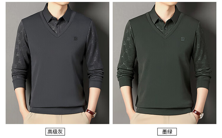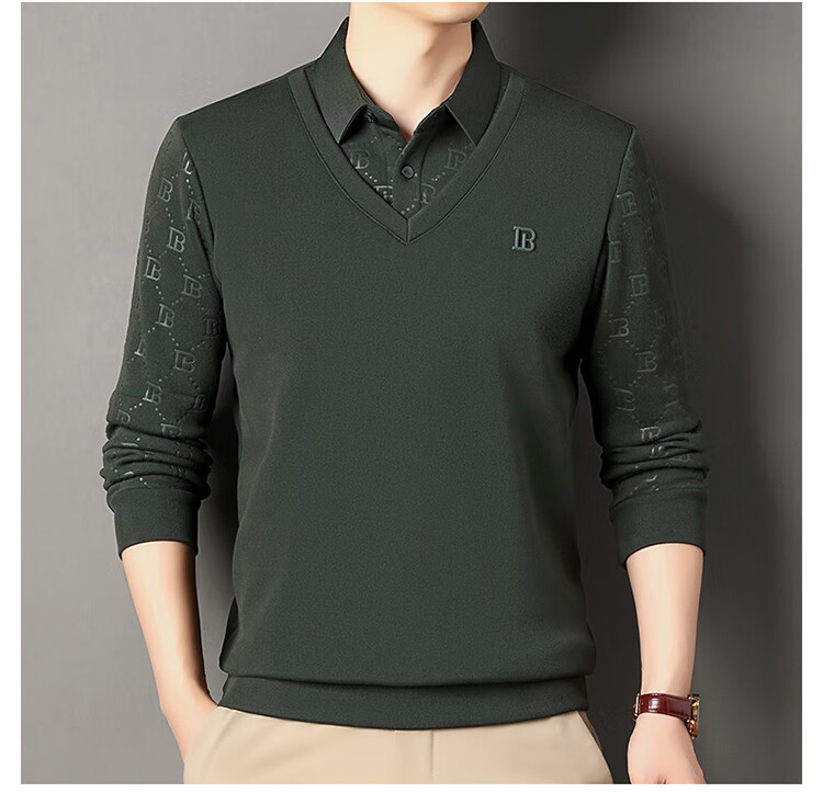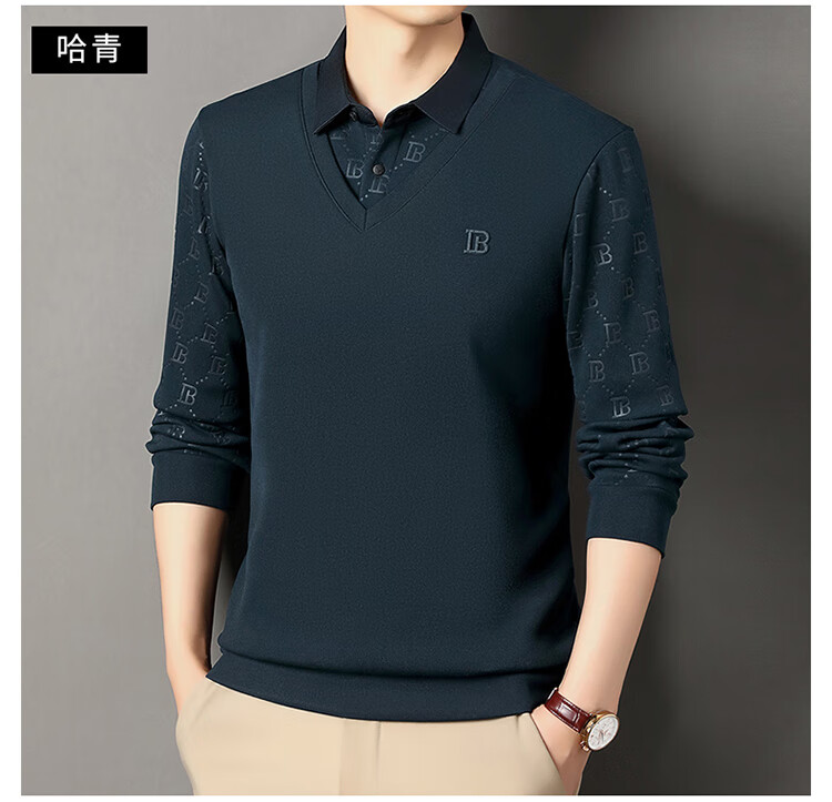 KBXNG Jinba men's long-sleeved wool sweater plus velvet warm casual business versatile lapel fake two pieces containing mulberry silk off-white M 165105 recommended 100-120 Jin Jin equals 0.5 kg to wear