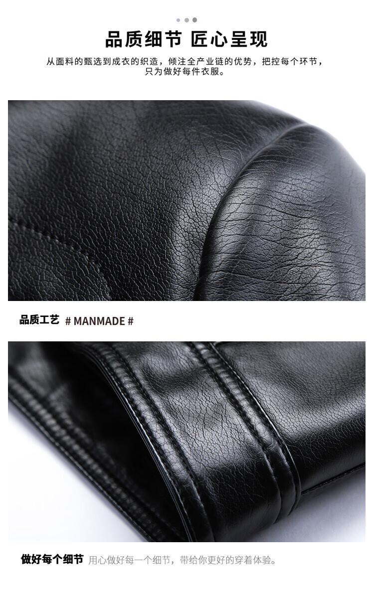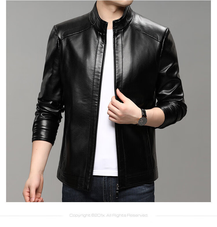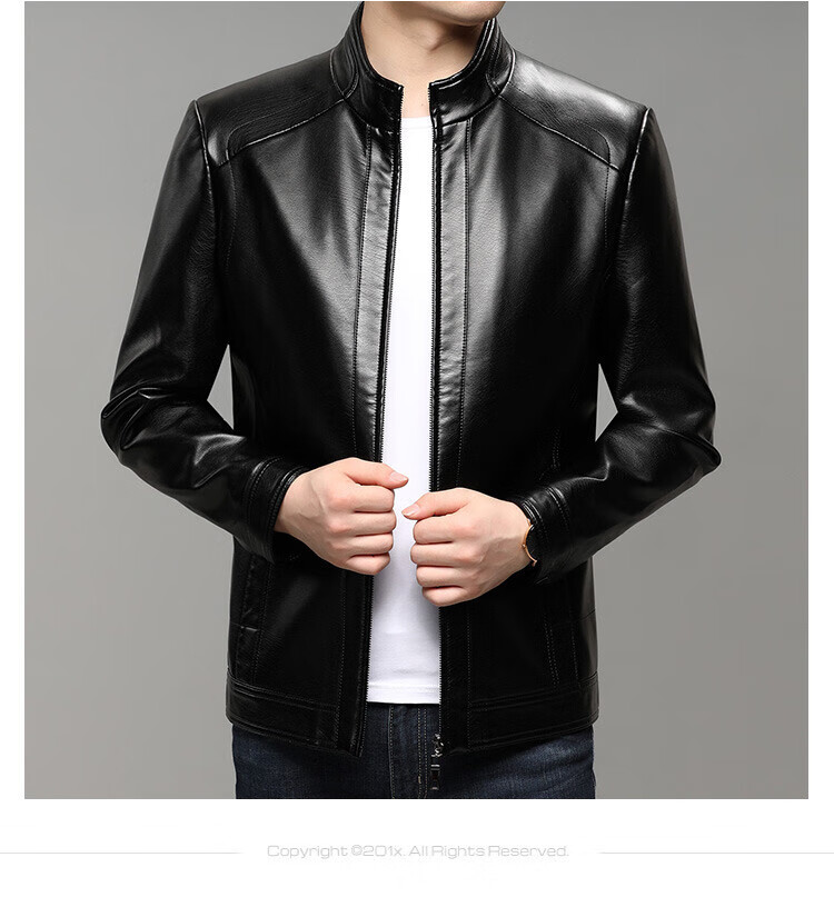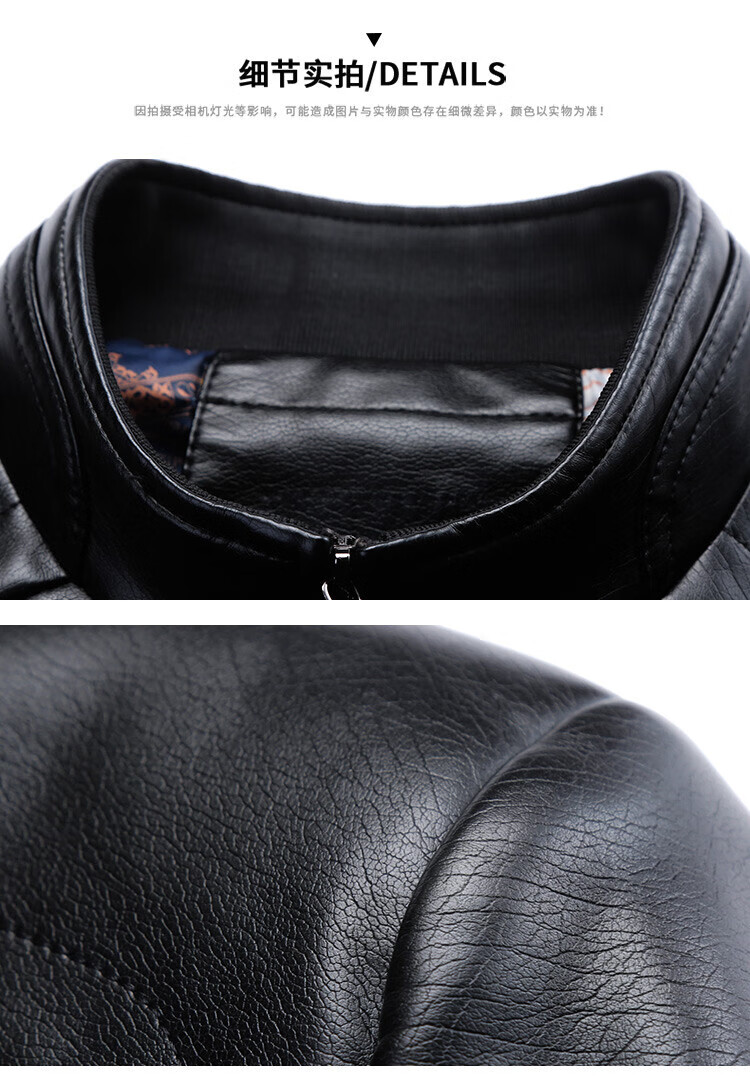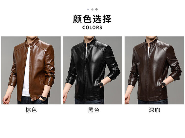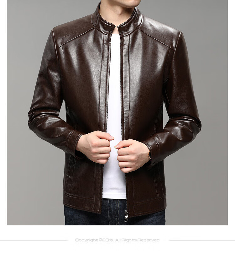KBXNG Jinba business men's leather jacket stand collar casual autumn and winter jacket young and middle-aged pu leather jacket versatile trendy top brown M 170