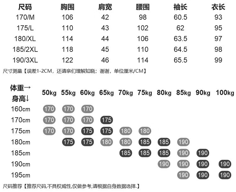 China (cm) 160-165/84-86 165-170 / 88-90 167-172 / 92-96 168-173 / 98-102 170-176 / 106-110