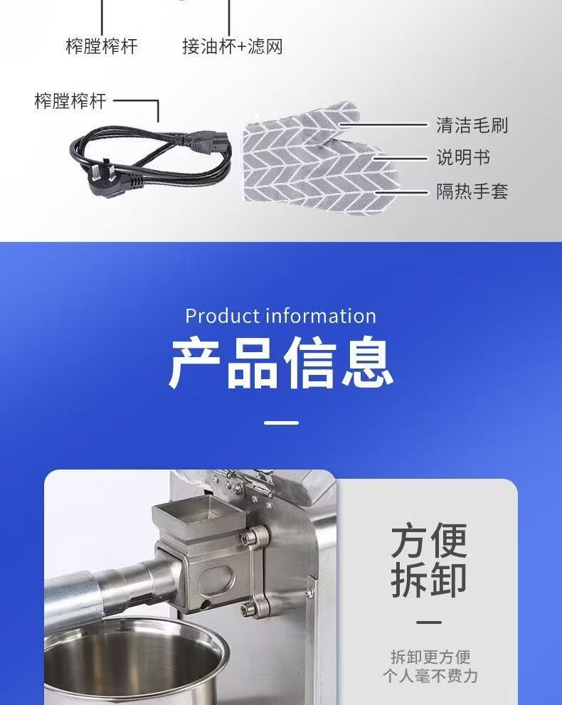 Oil press fully automatic small household household style new multi-functional hot and cold commercial rapeseed oil frying machine basic model (oil press)