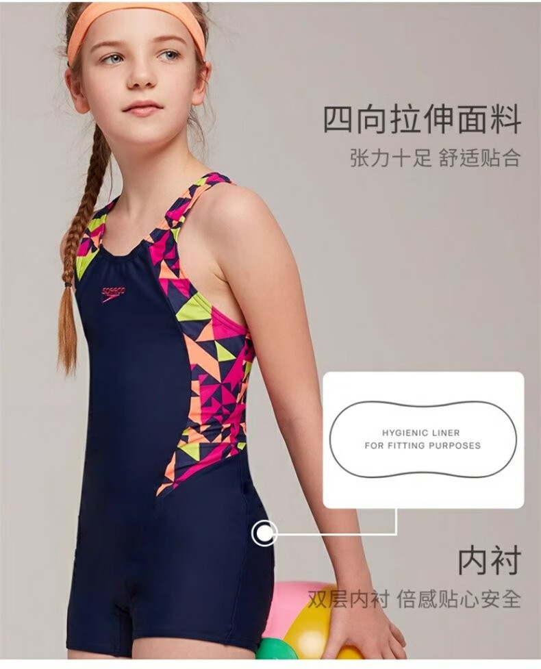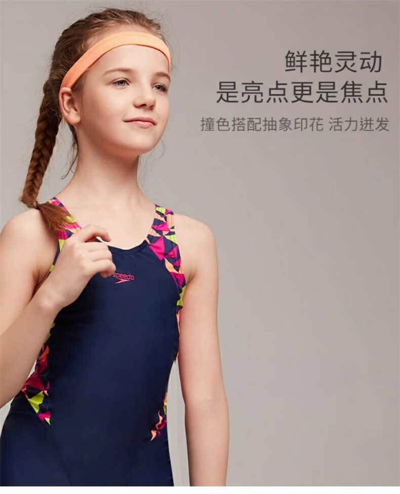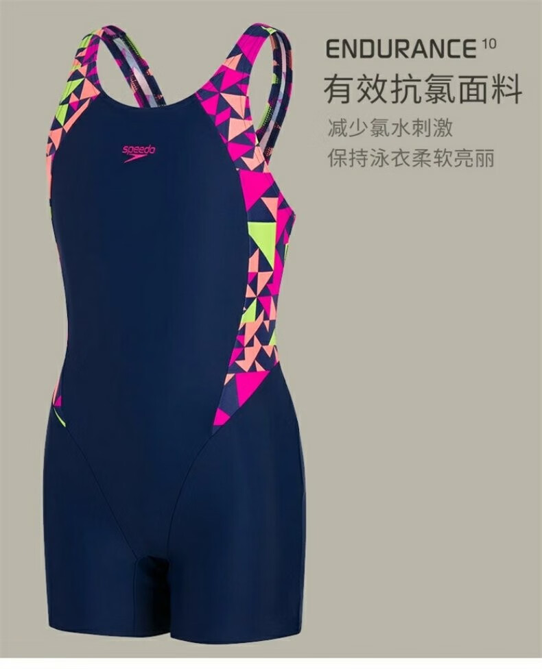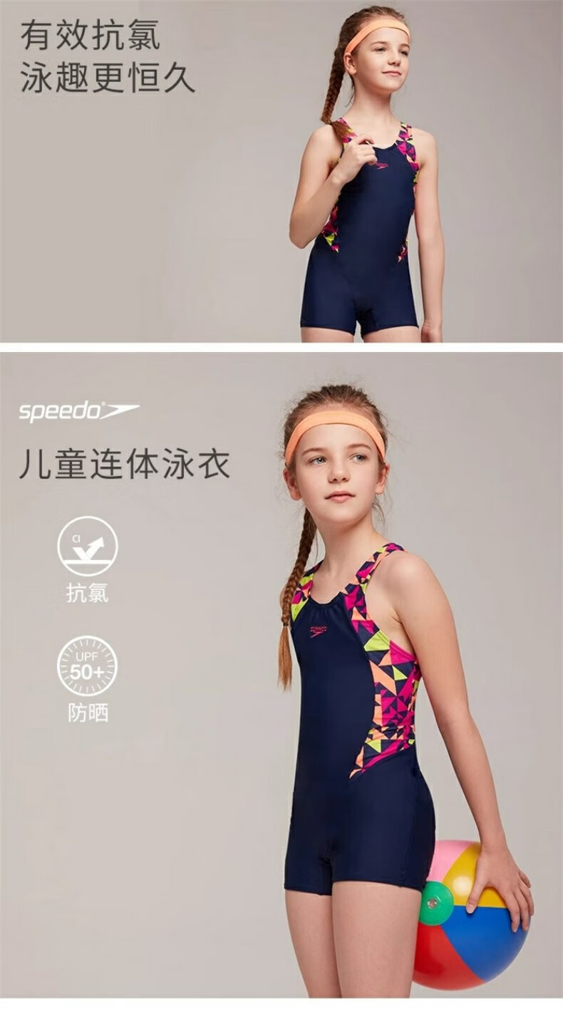 Speedo/speedo youth one-piece swimsuit training competition anti-chlorine children's boxer one-piece swimsuit anti-chlorine black rose pink/lemon yellow M (26) (recommended 120-130c24-28kg)