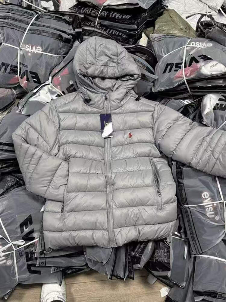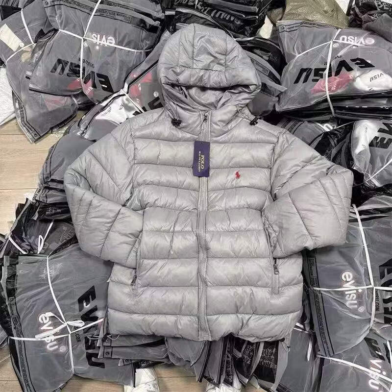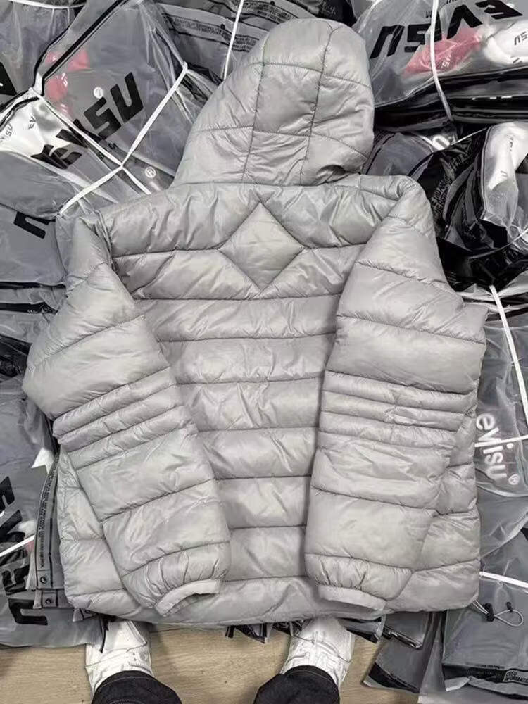 PUGESI Silver Gray Pony Embroidered Ribs Down Jacket Men's Winter Outdoor Lightweight Hooded Jacket Couple Warm Cotton Jacket Silver M