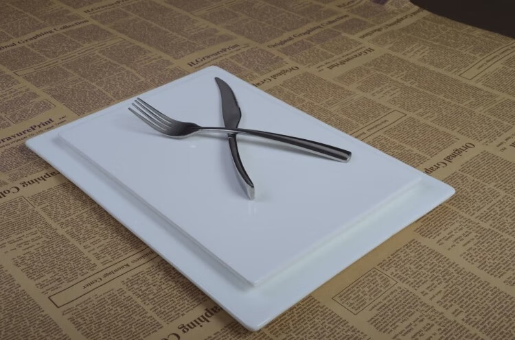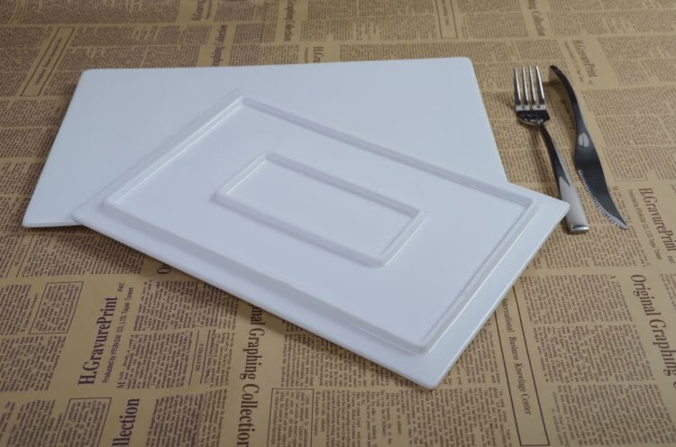 Fantasy pure white ceramic flat plate rectangular plate dessert display tray sushi plate cold dinner plate 16 inches