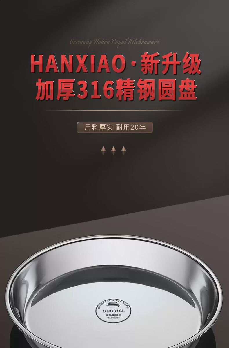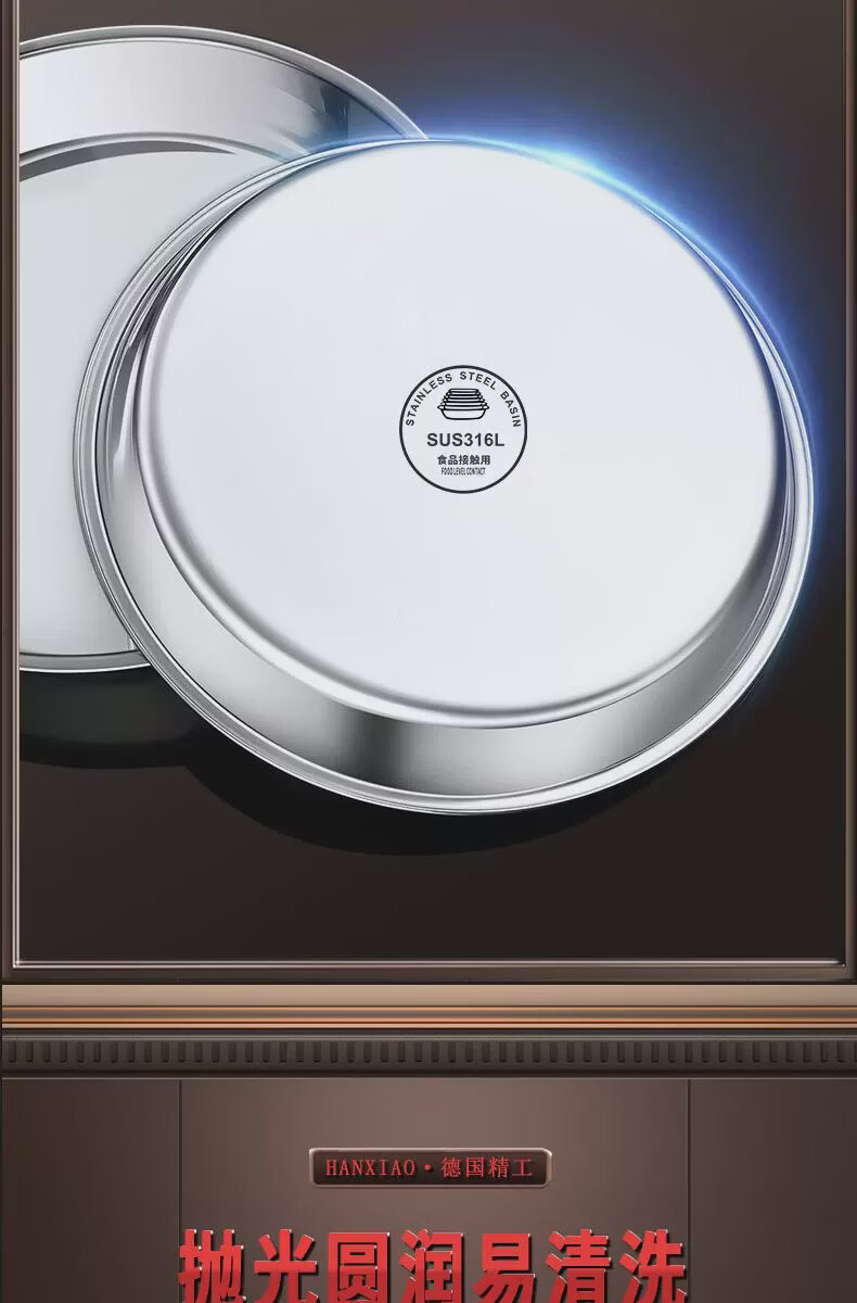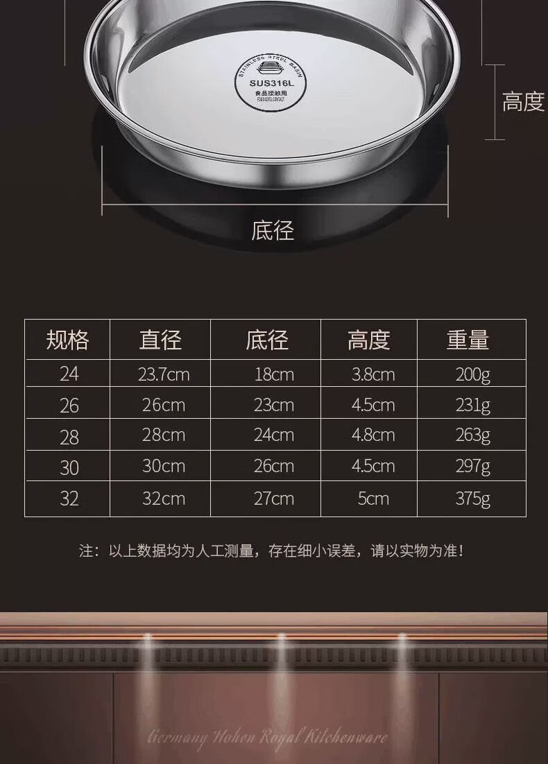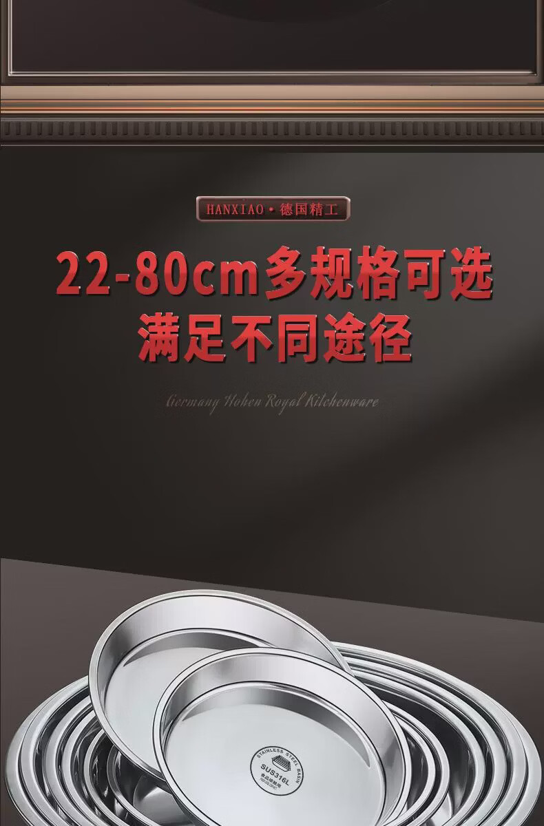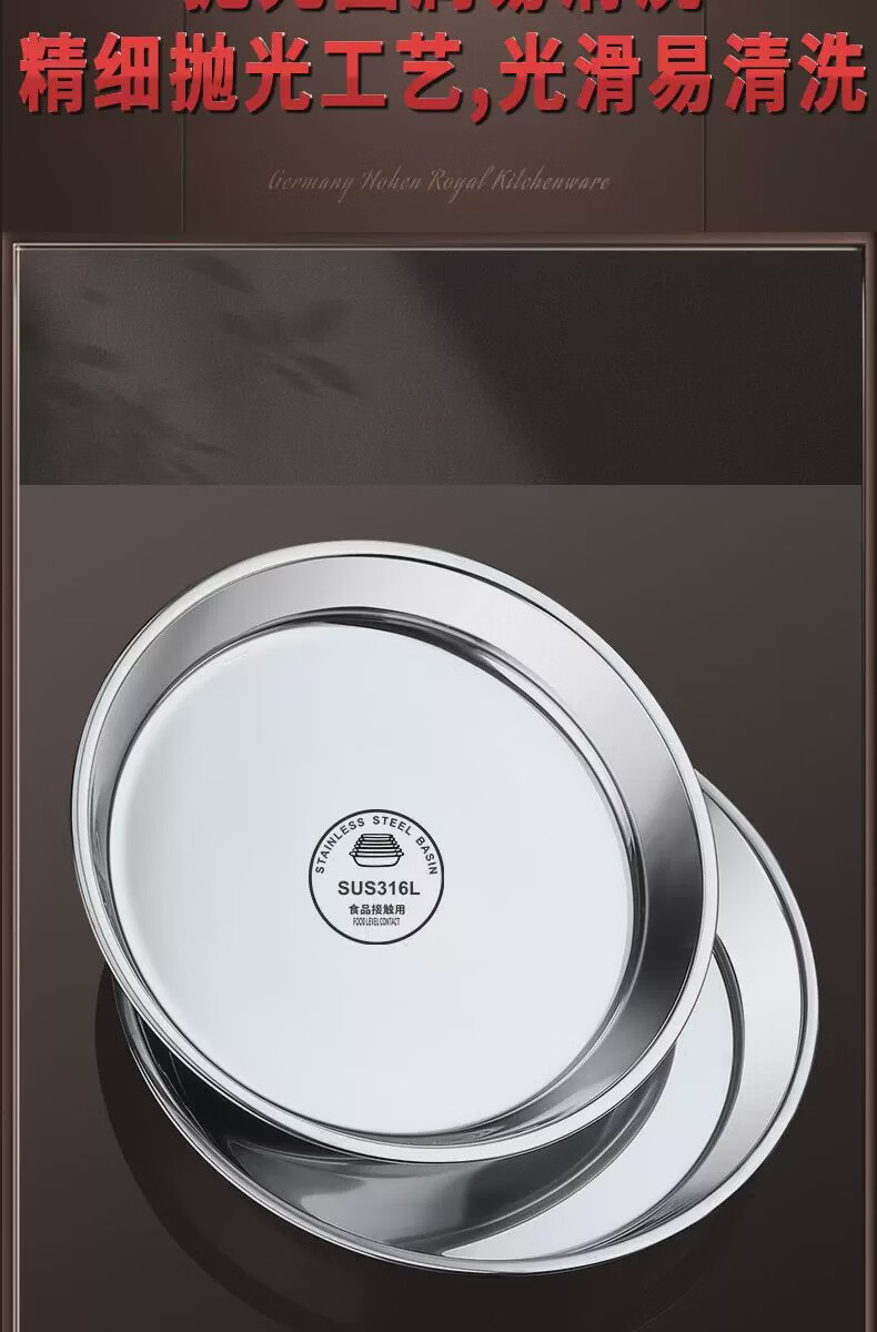 Fantasy food-grade stainless steel plate round plate household shallow plate cool skin steaming plate round tray dish plate thickened 316 stainless steel round plate 30cm
